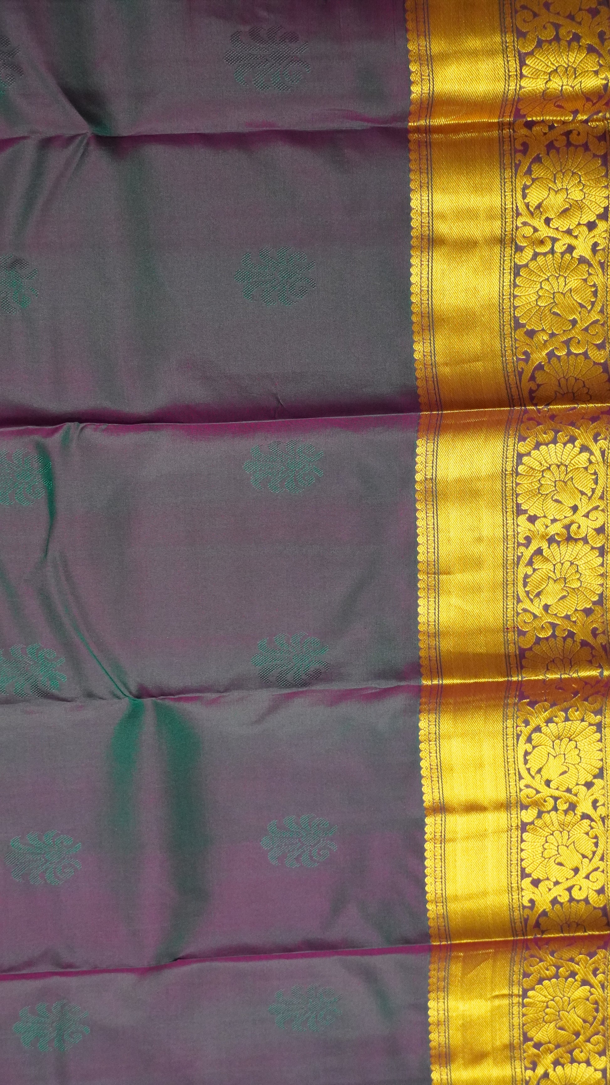 Pure Kanjivaram Silk Saree - Rani Pink-Peacock Blue