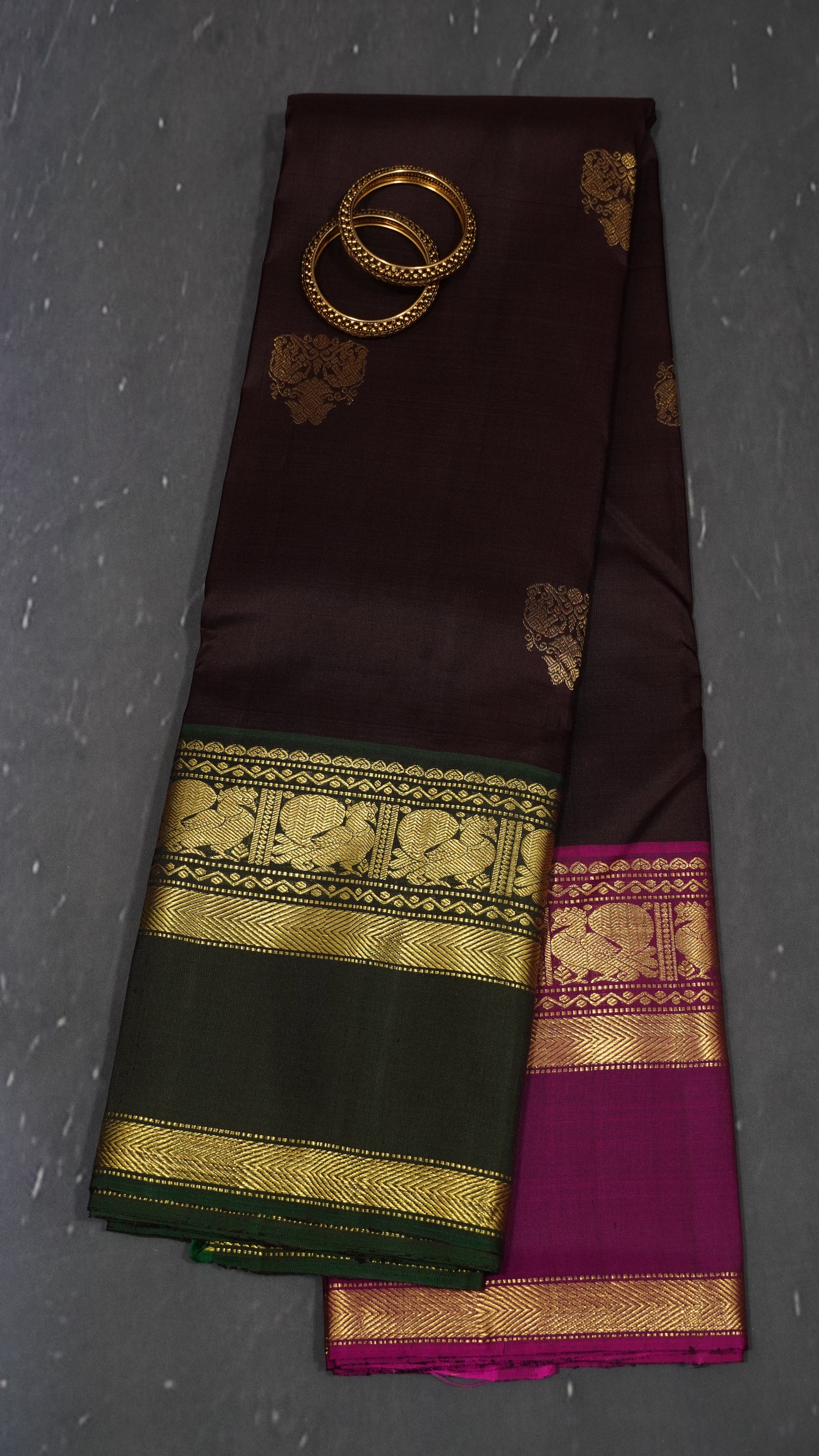 Pure Kanjivaram Silk Saree - Rettapet Brown-Pink