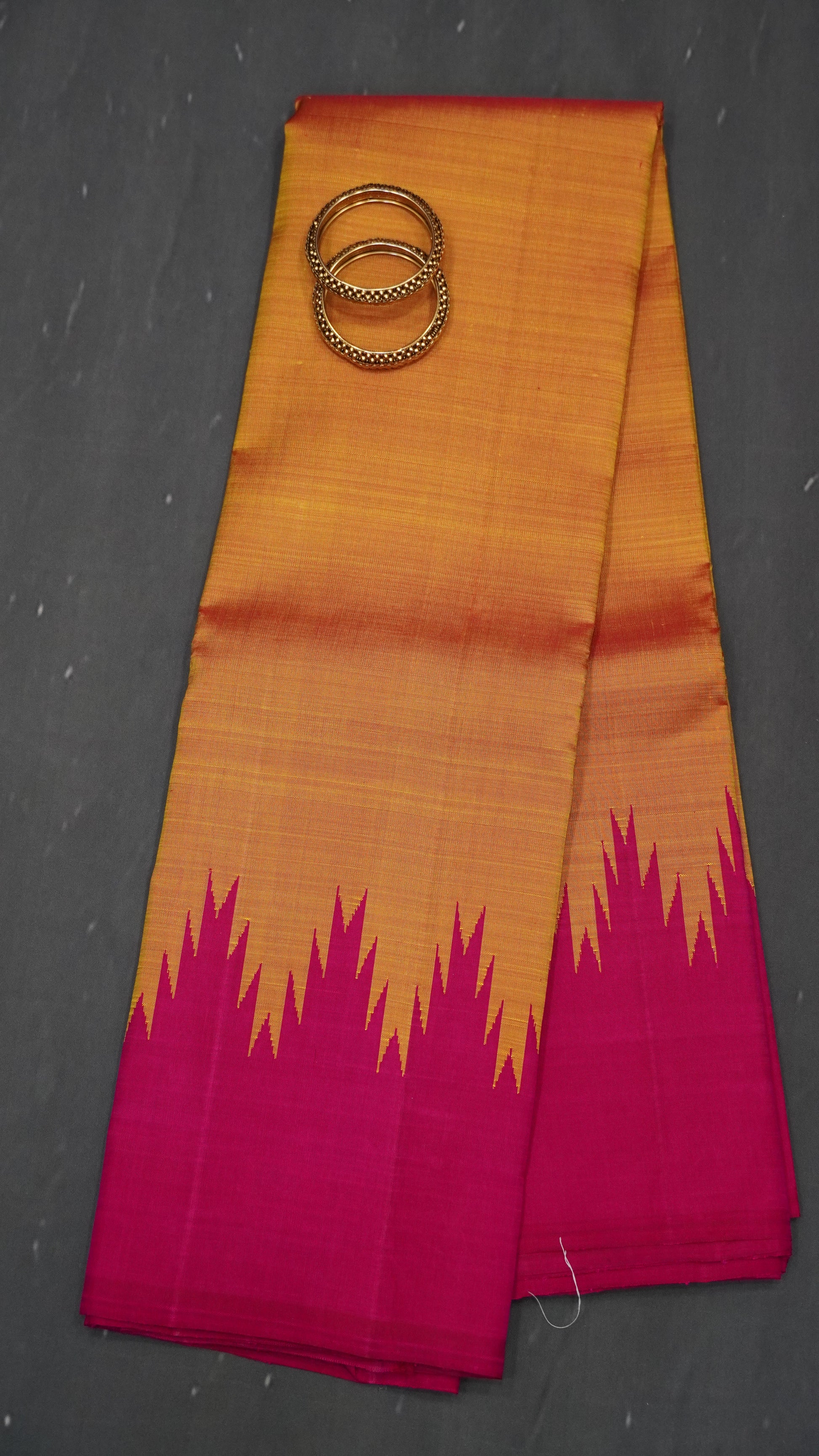 Pure Kanjivaram Silk Saree -Temple Tower -Golden Yellow