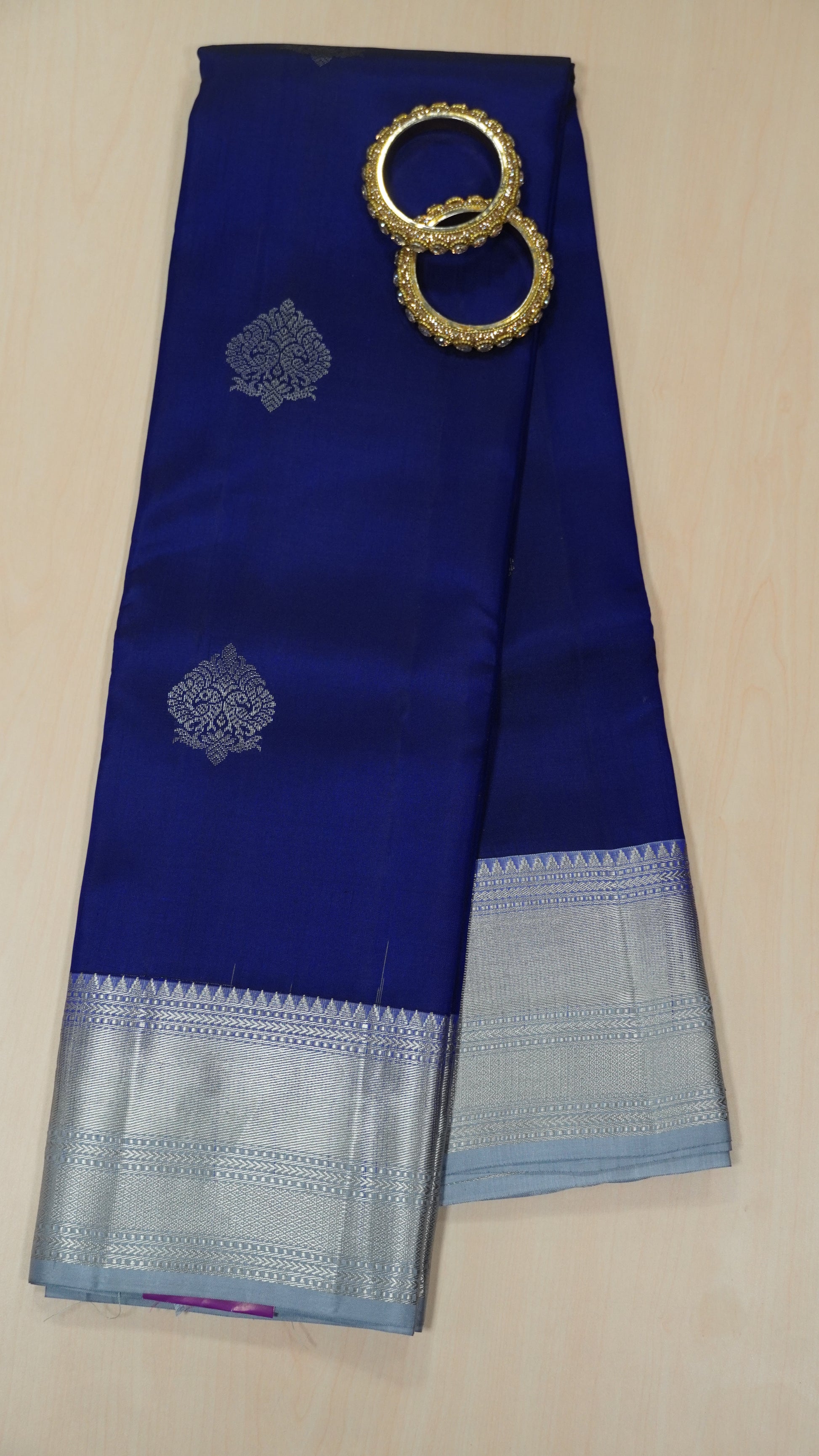 Pure Kanjivaram Silk Saree - Silver Ink Blue