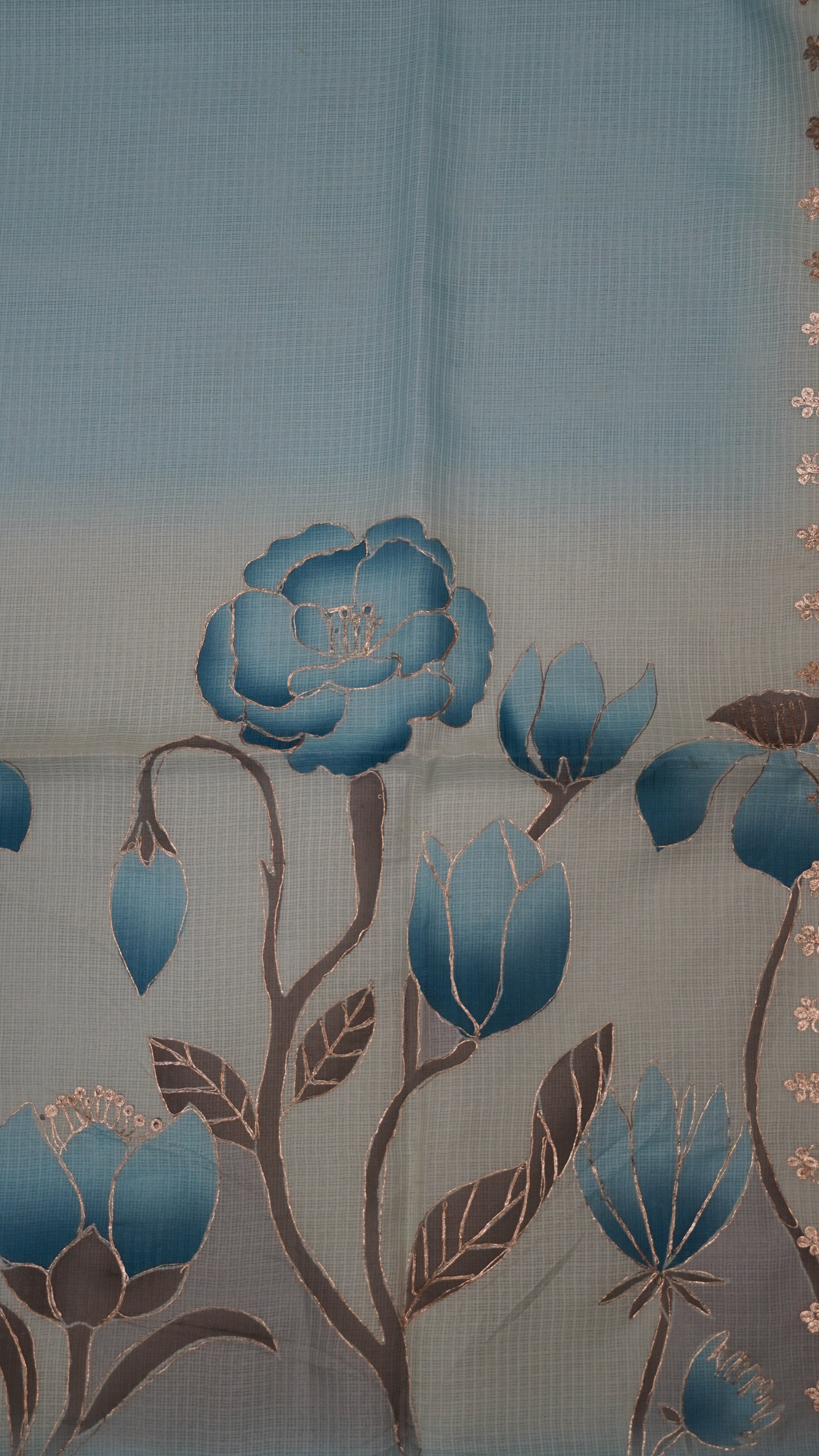 Pure Kota Saree-Dual Tone Kutch Work-Blue