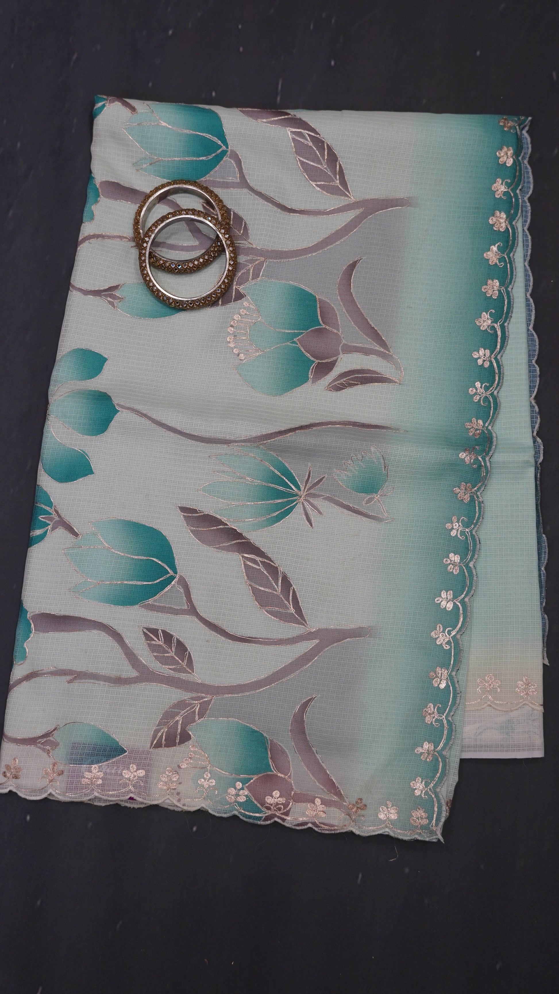 Pure Kota Saree-Dual Tone Kutch Work-Green