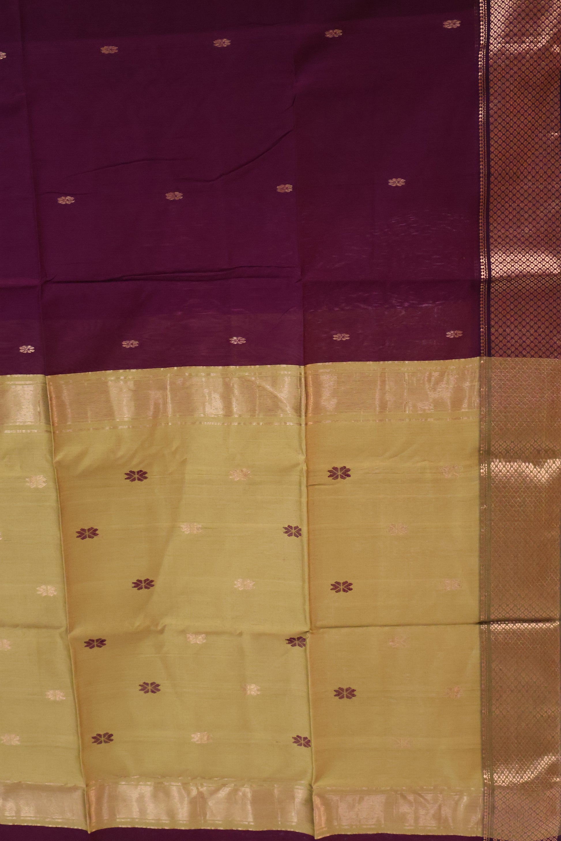 Pure Maheswari Silk Cotton saree-Wine Flower Border