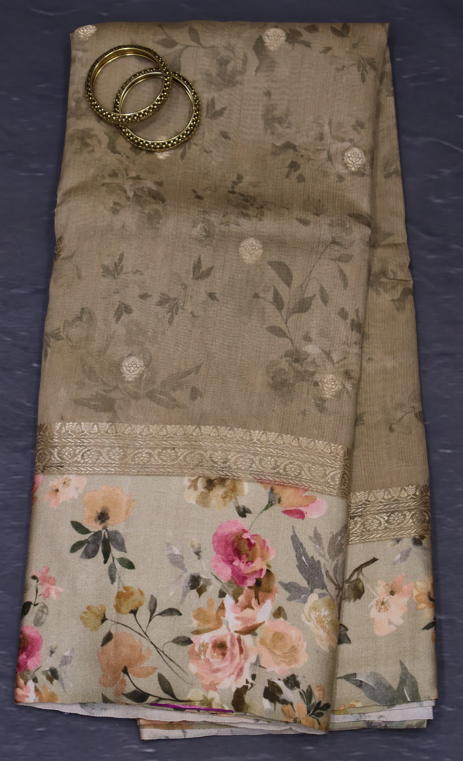 Pure Matka Tussar Saree-Dark Beige Satin Border