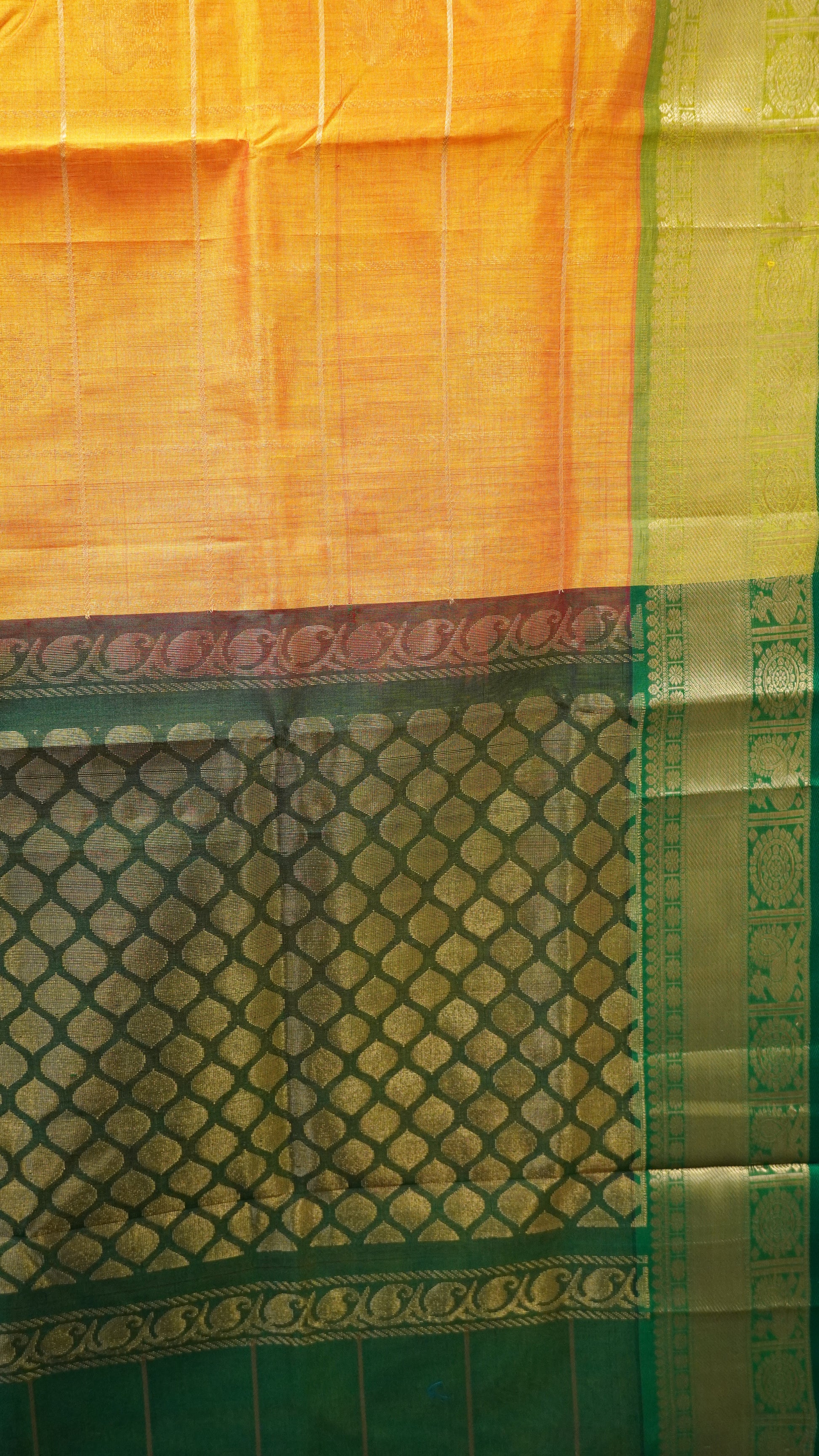 Pure Silk Cotton Saree-Mango Yellow -Green Mayil Chakram