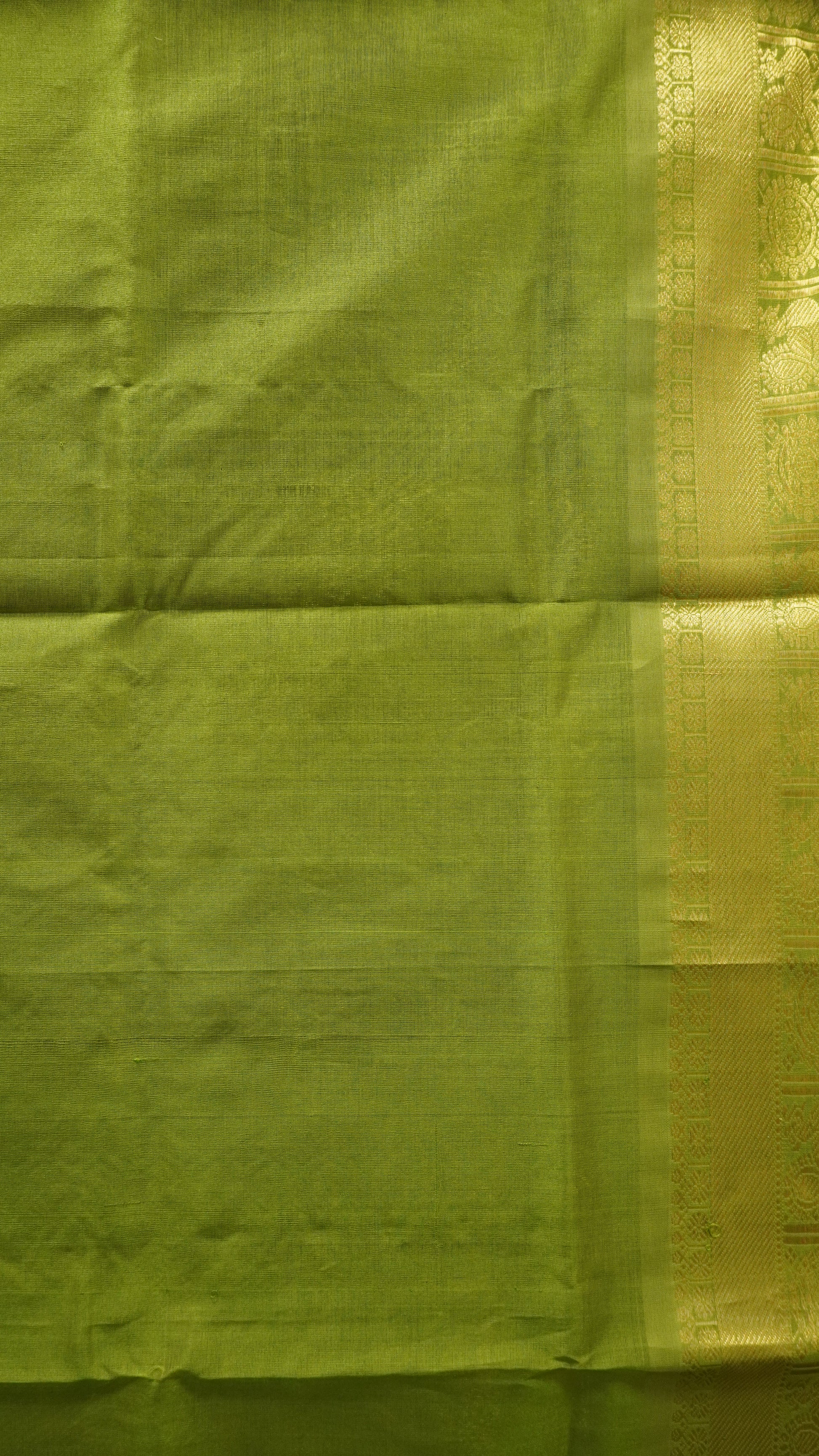 Pure Silk Cotton Saree-Peacock Blue -Olive Green Mayil Chakram