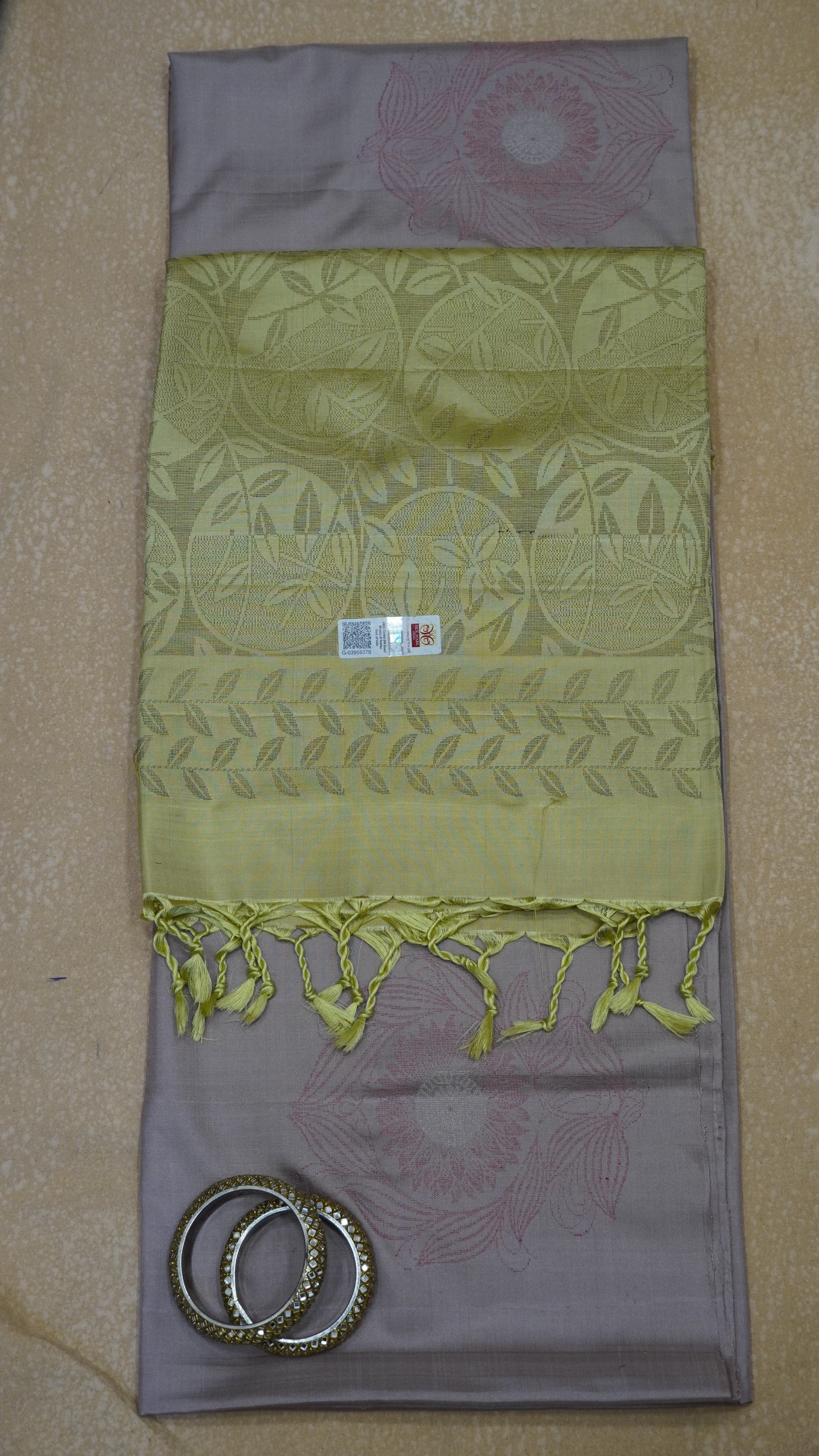 Pure Soft Silk Saree - Baby Brown-Lime Green