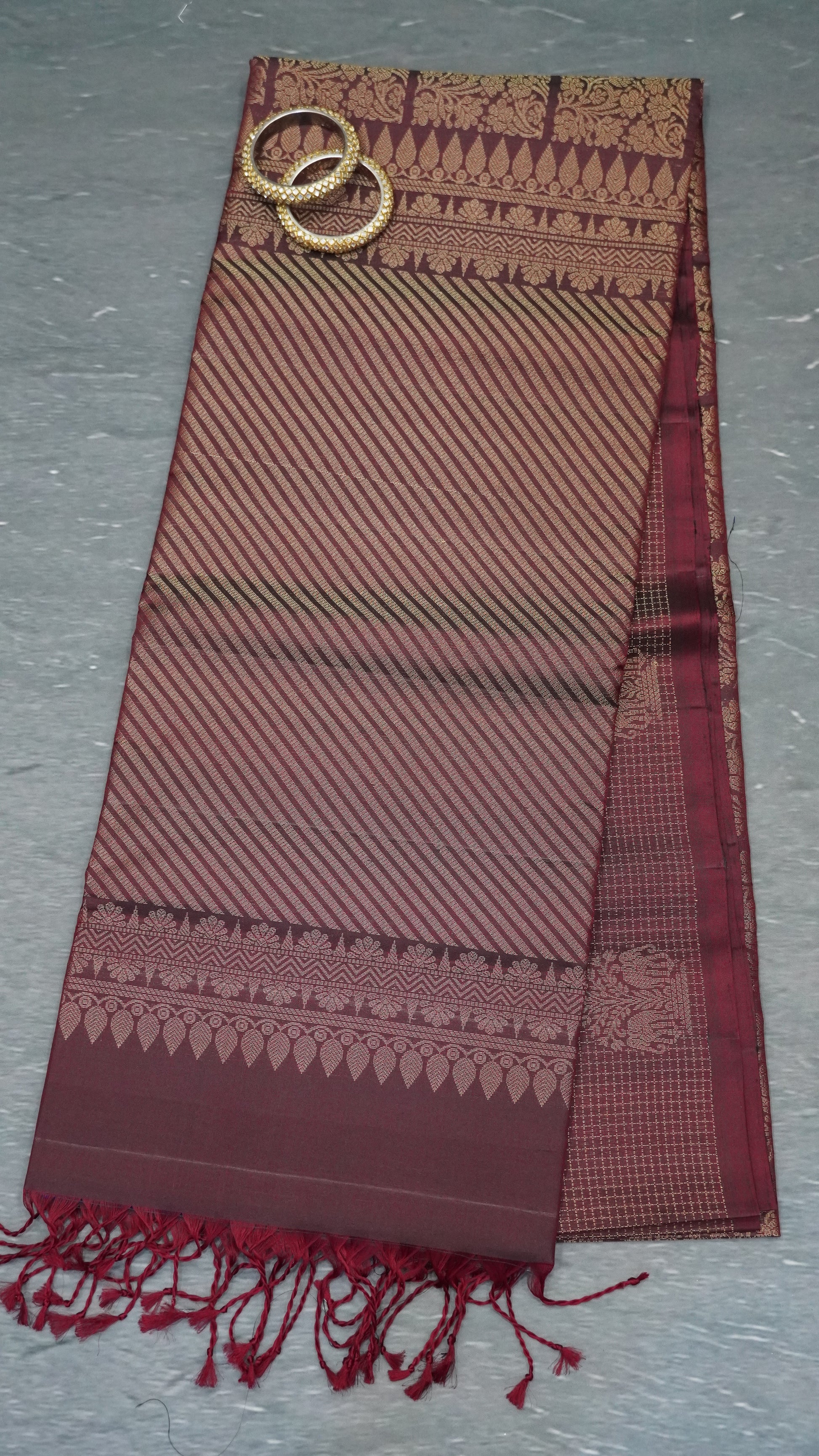 Pure Soft Silk Saree -Brown Zari lines