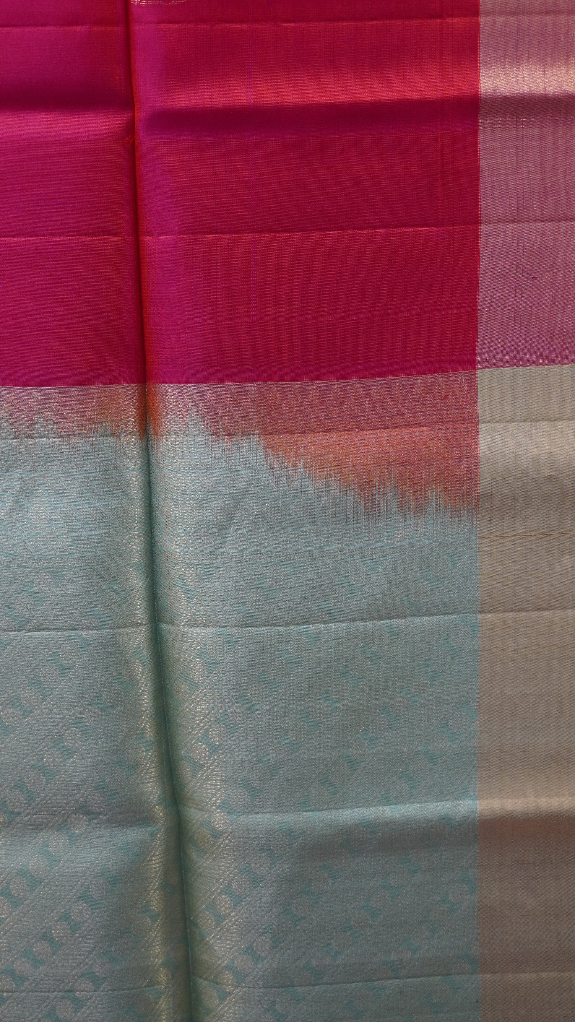 Pure Soft Silk Saree -Redish Pink-Pista Green