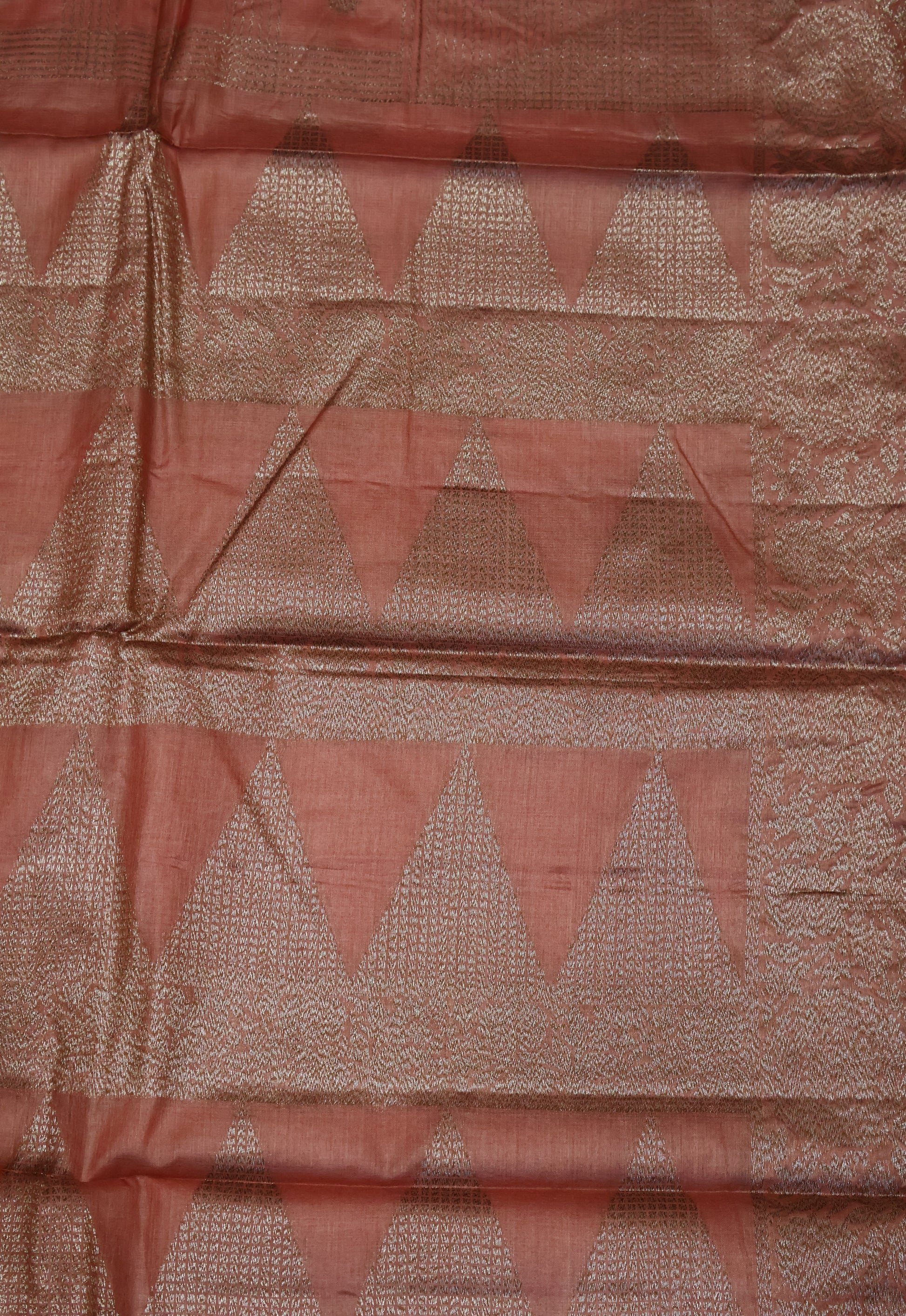 Pure Tussar Saree -Pale Orange Checks