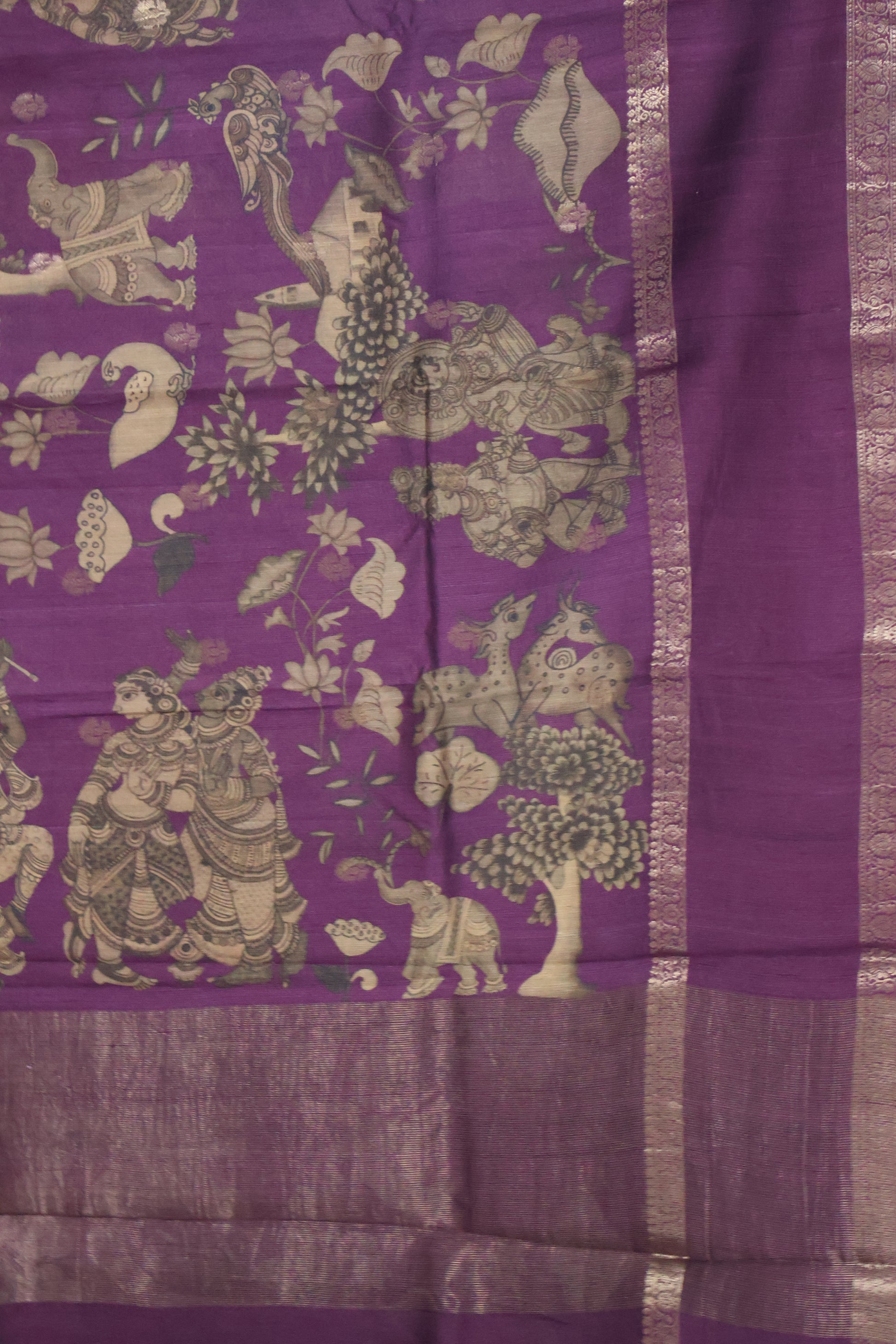 Pure Tussar Saree -Wine Elephant Print