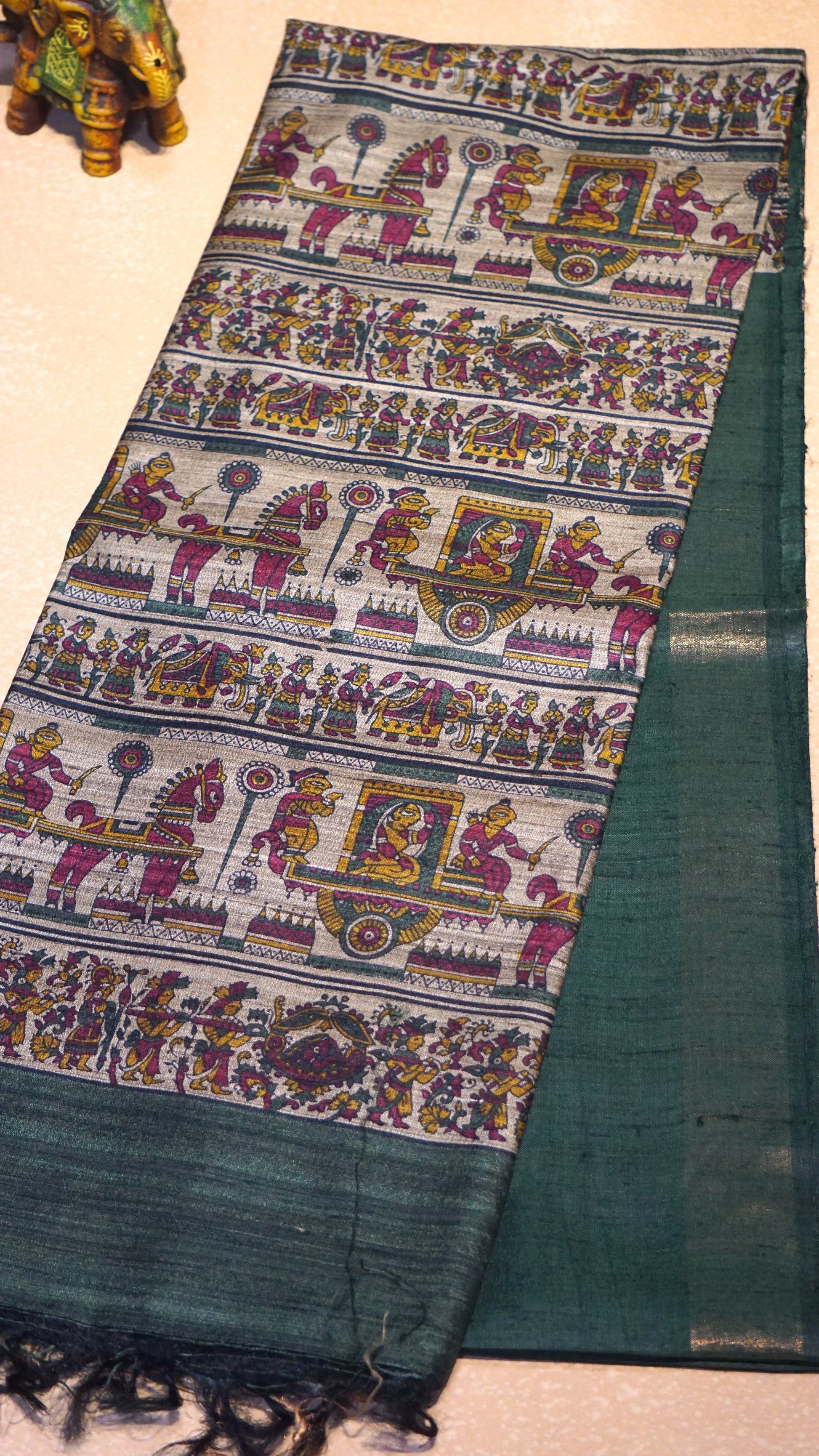 Pure Tussar Saree - Bottle Green