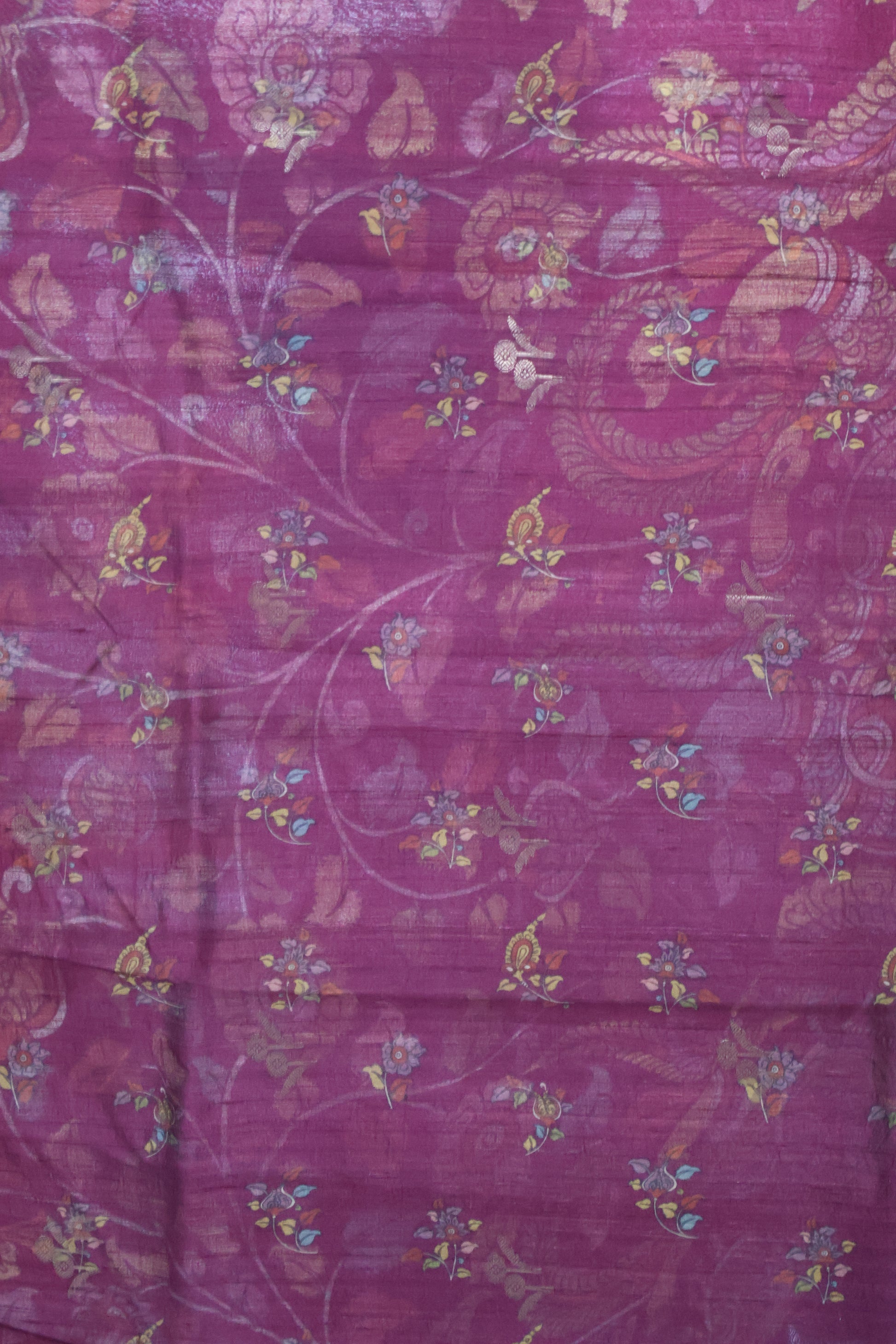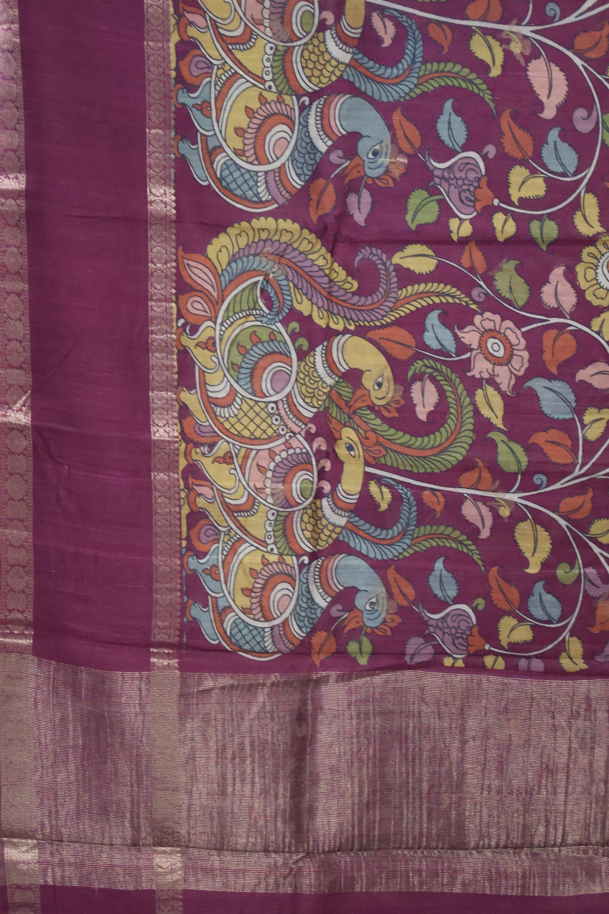 Pure Tussar Saree -Magenta Kalamkari Border