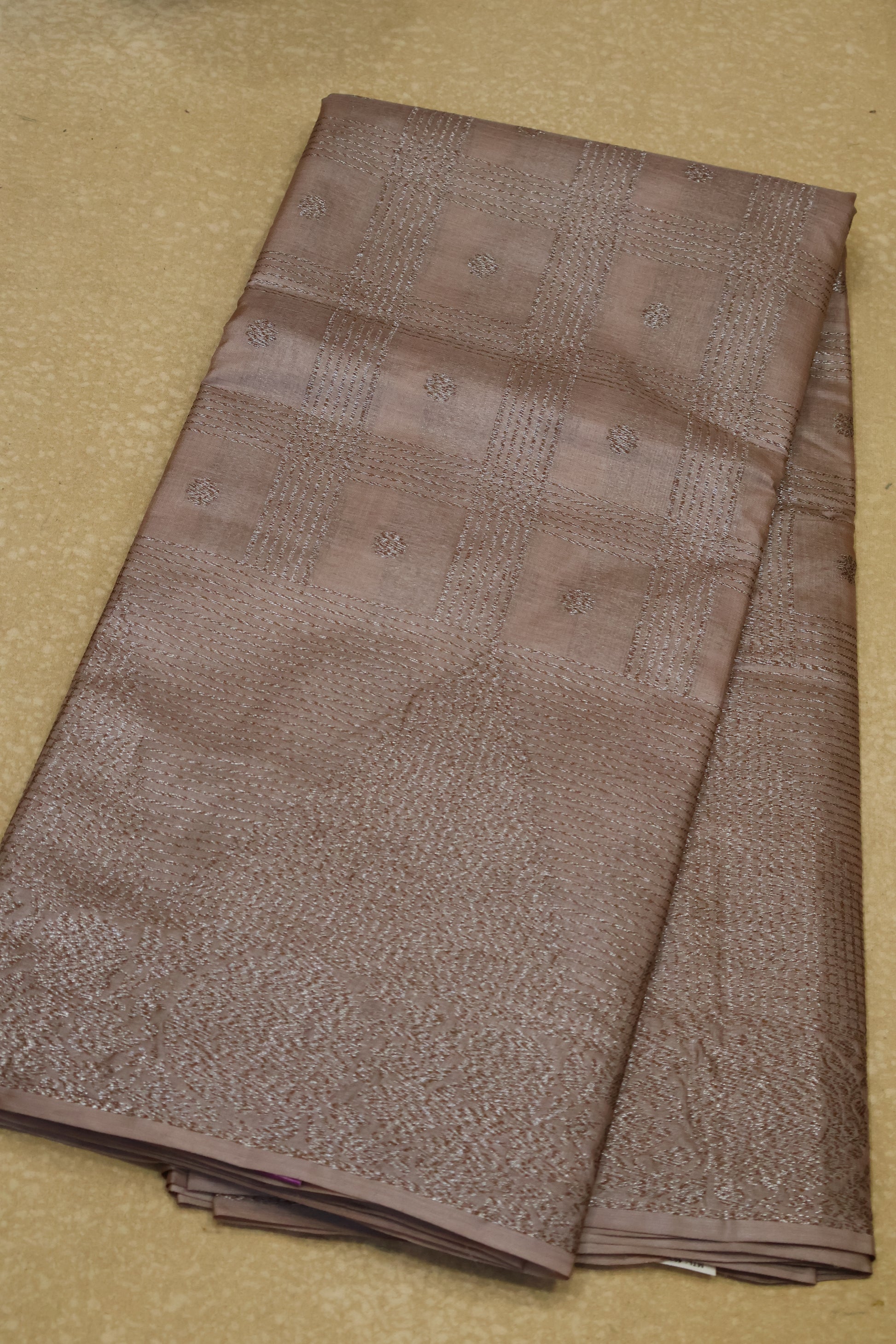 Pure Tussar Saree -Baby Brown Checks