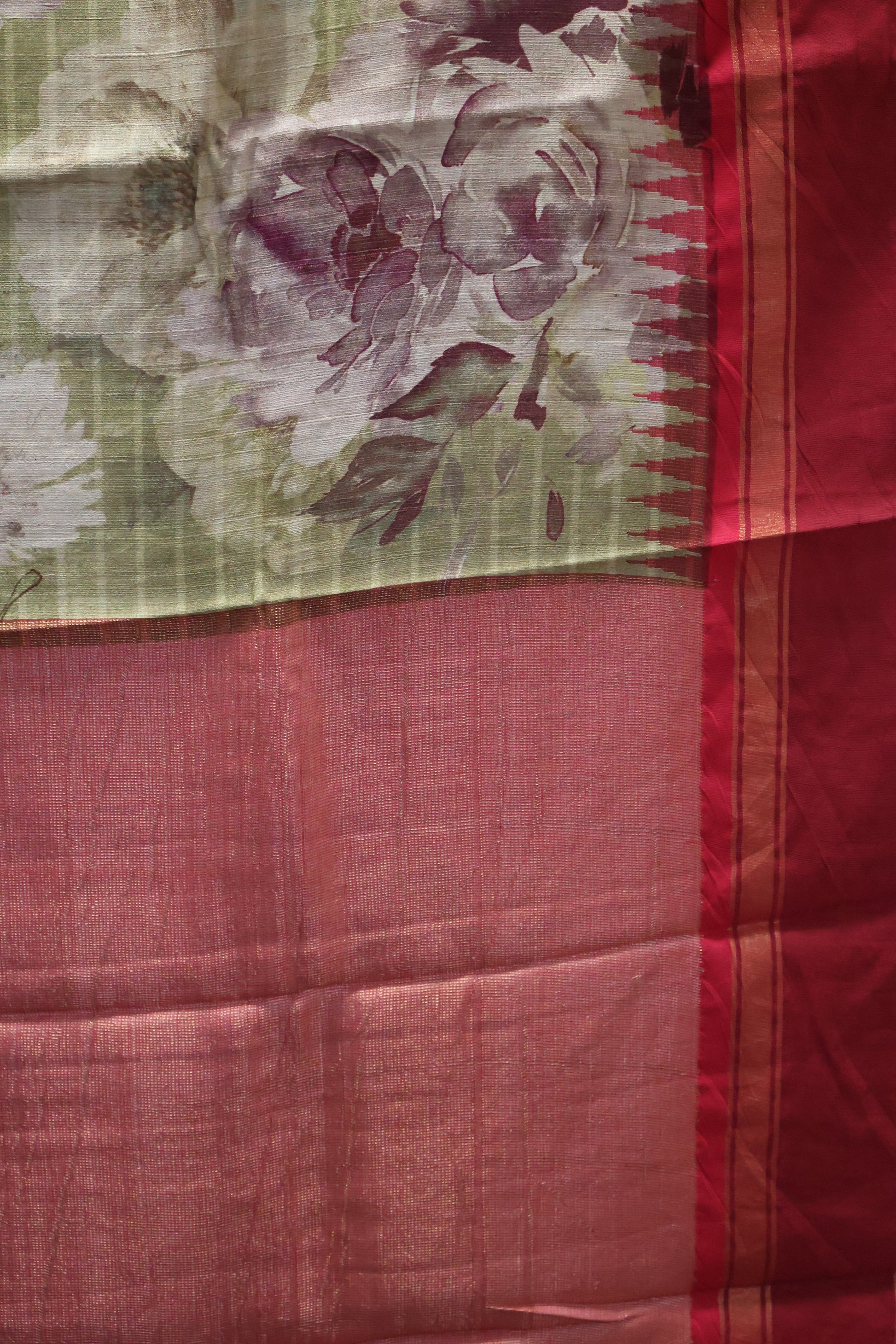 Pure Tussar Saree - Sage Green-Maroon