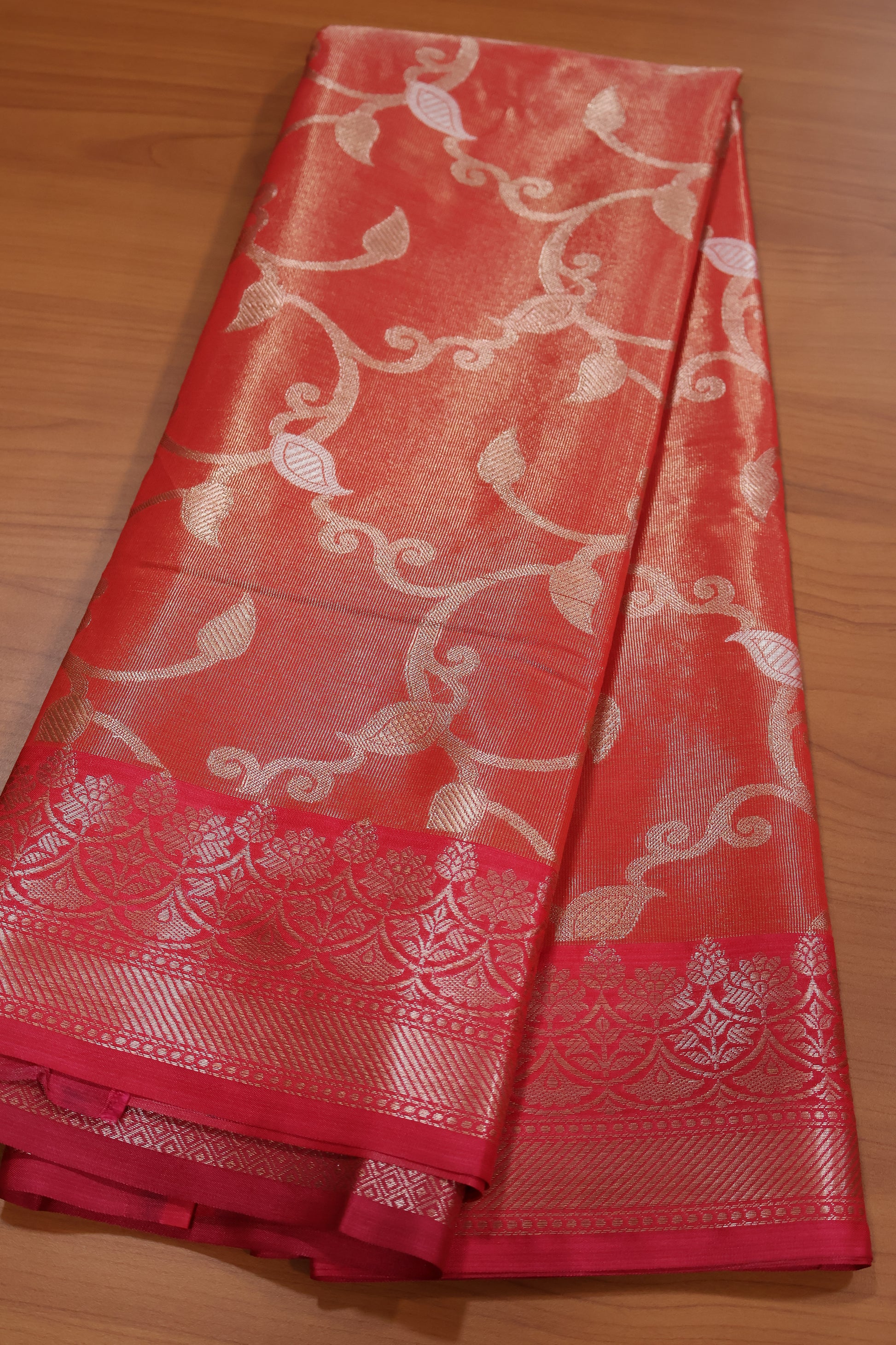 Semi Banarasi Tissue Silk Saree-Orange Vineyard