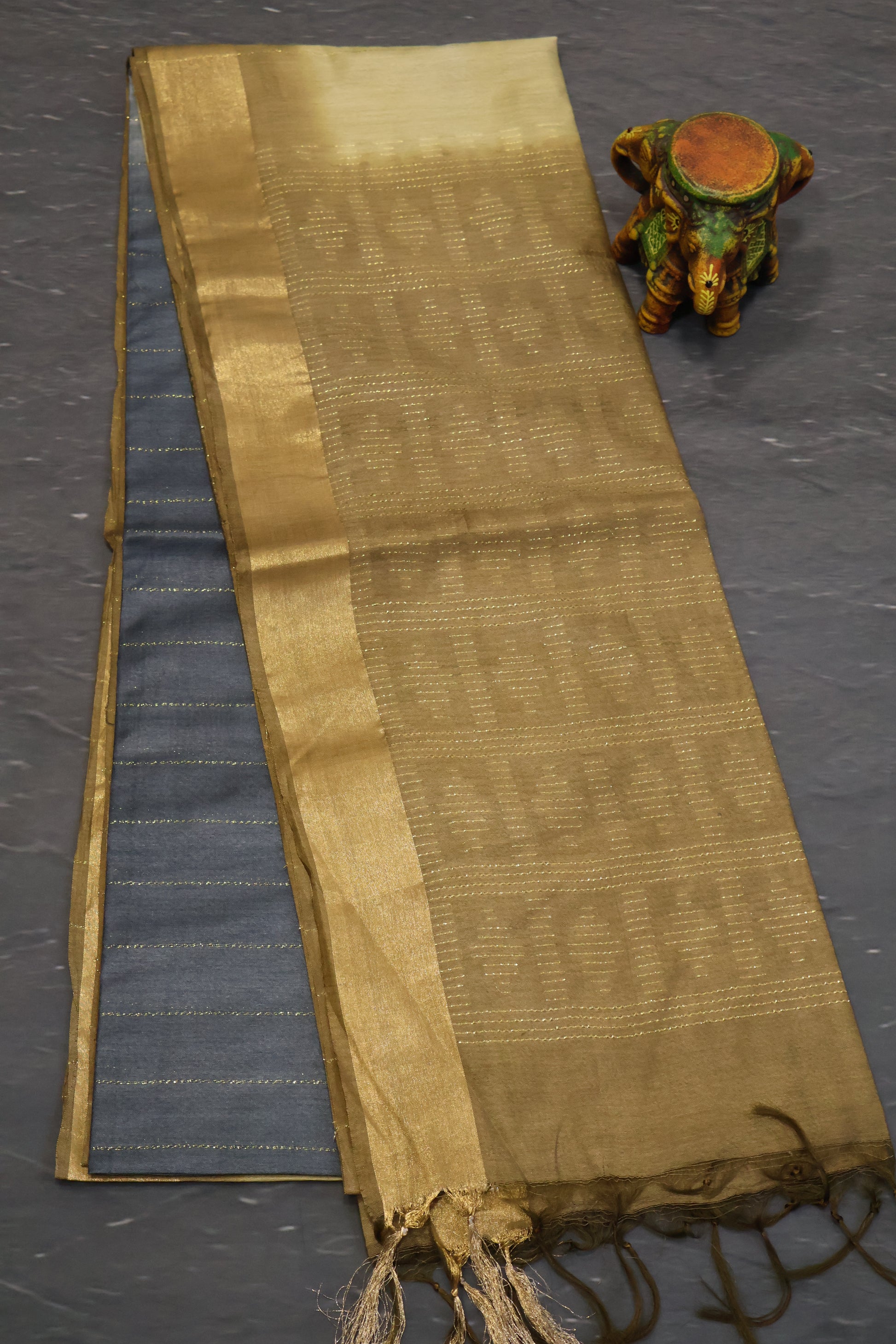 Semi Bhagalpur Tussar Saree-Metalic Blue