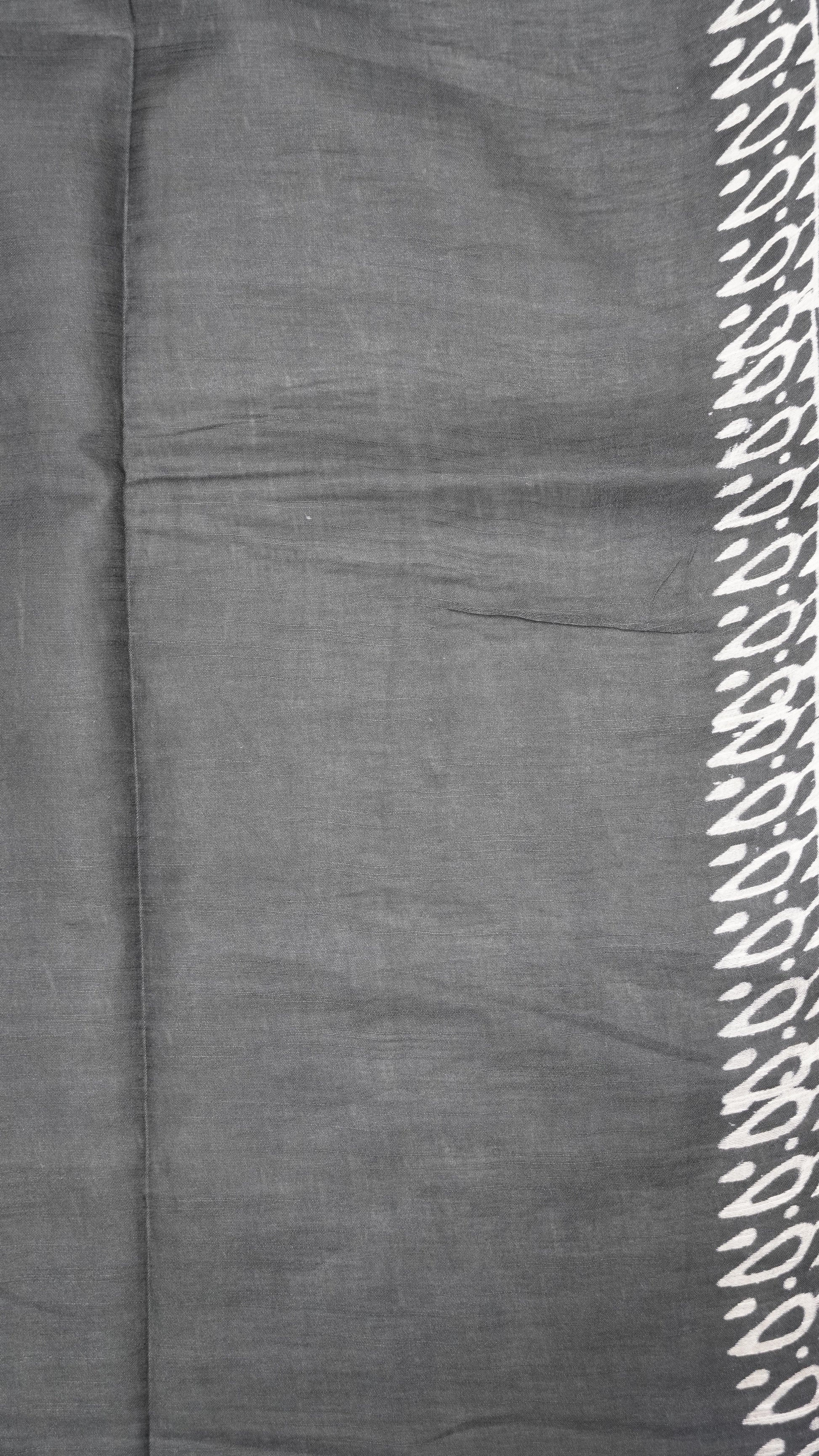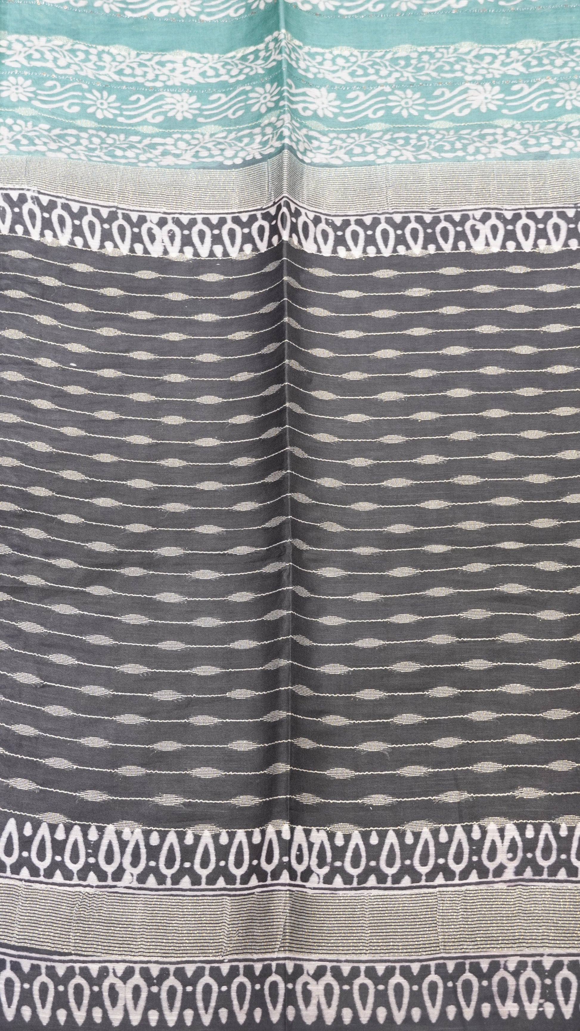 Semi Bhagalpur Tussar Saree-Sea Green Block Print -