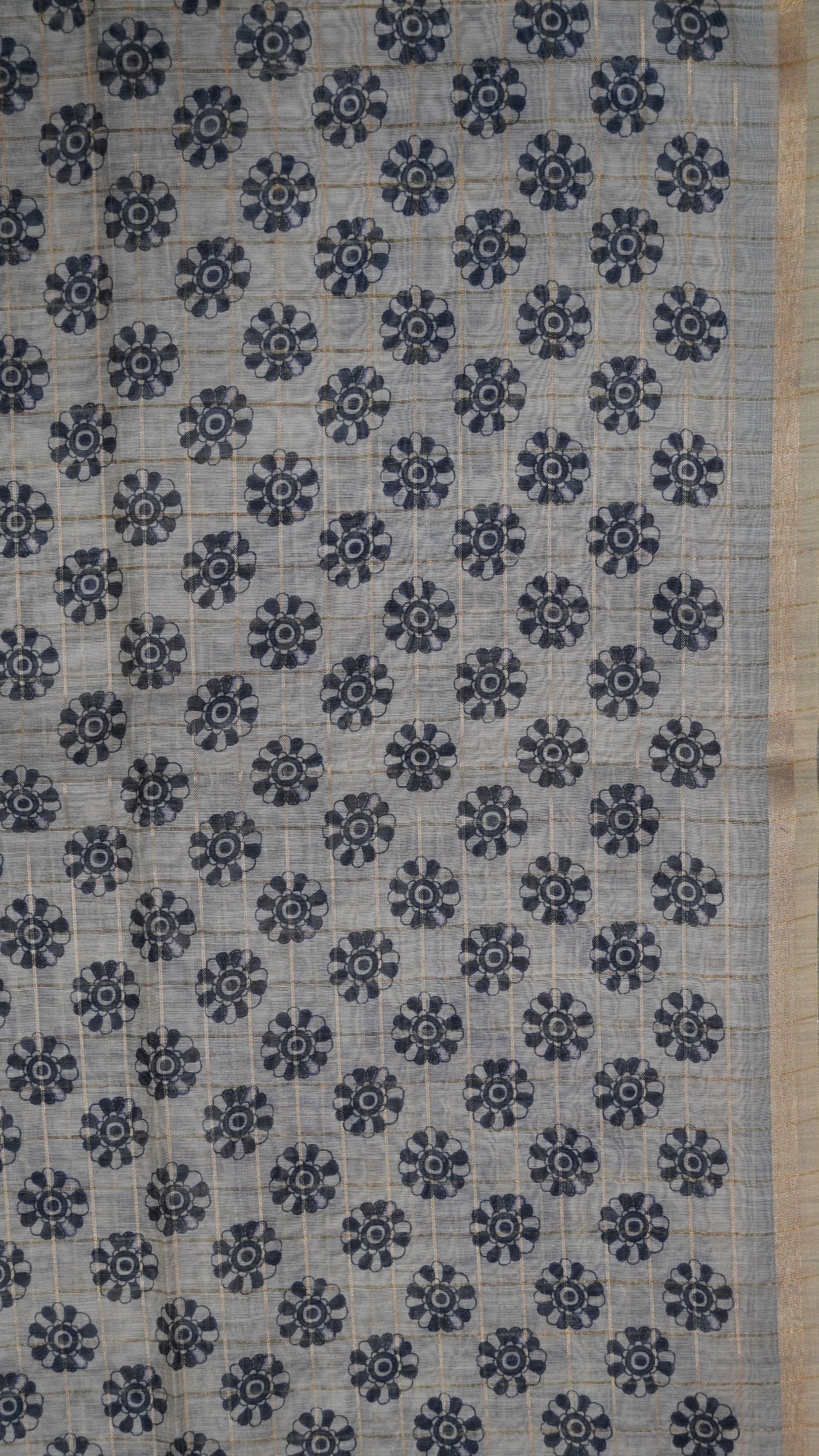 Semi Chanderi Saree - Body Checks Blue