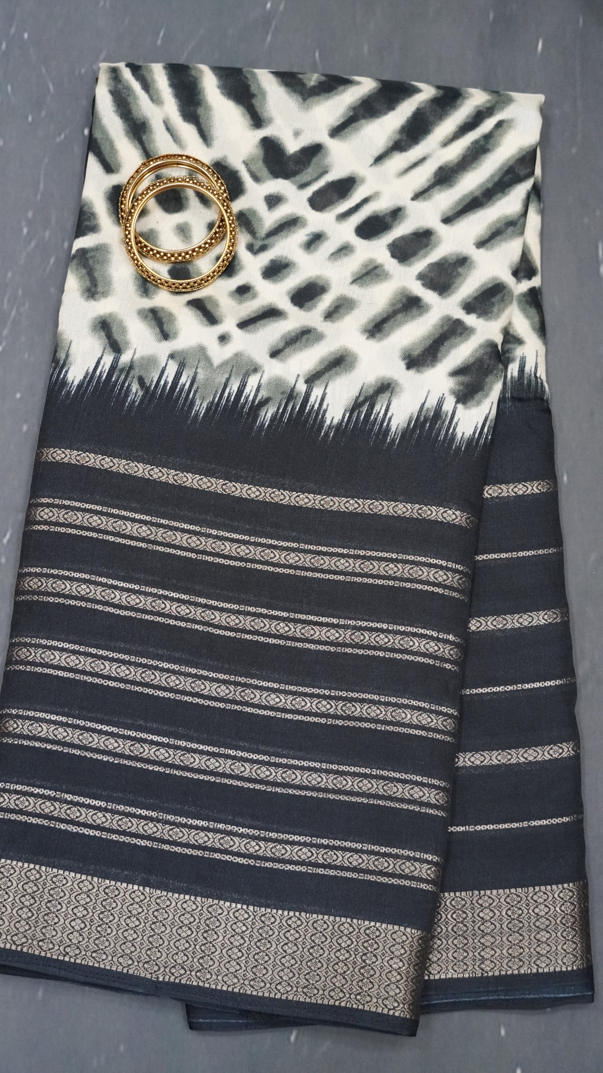 Semi Chiffon Saree- Tie Dye Off White-Black