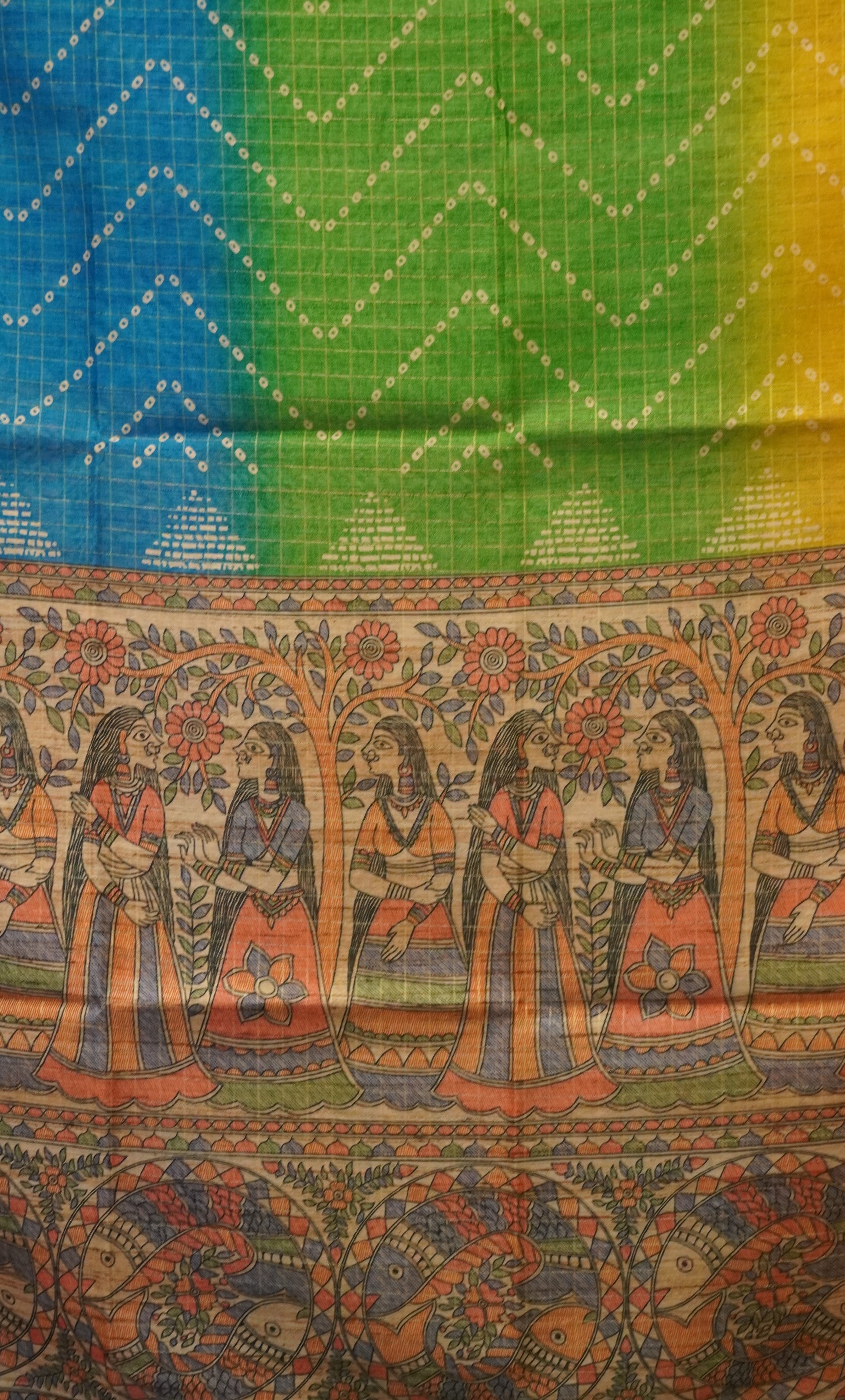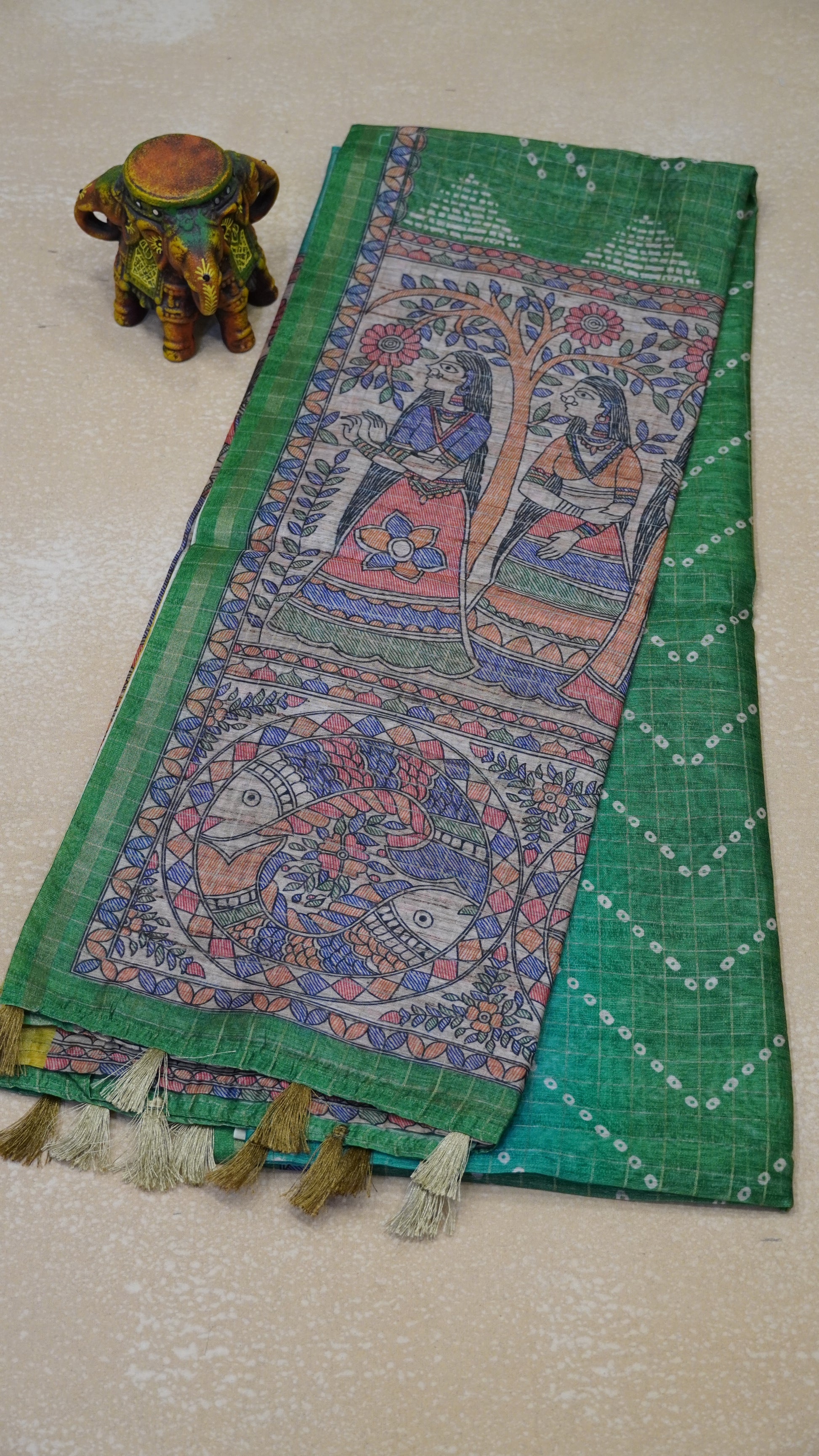 Semi Chanderi Saree Zig Zag Bandhini Print - Green
