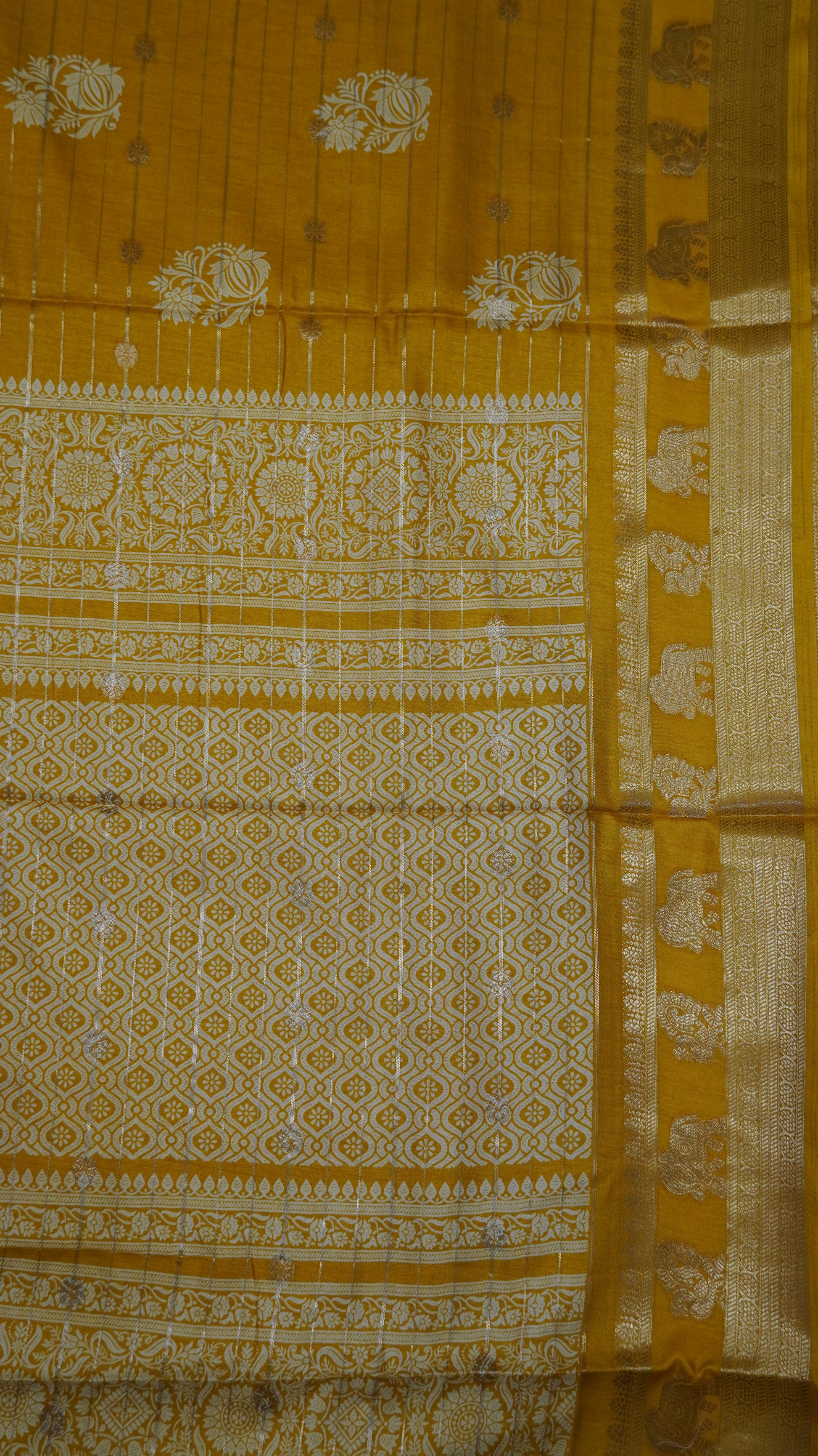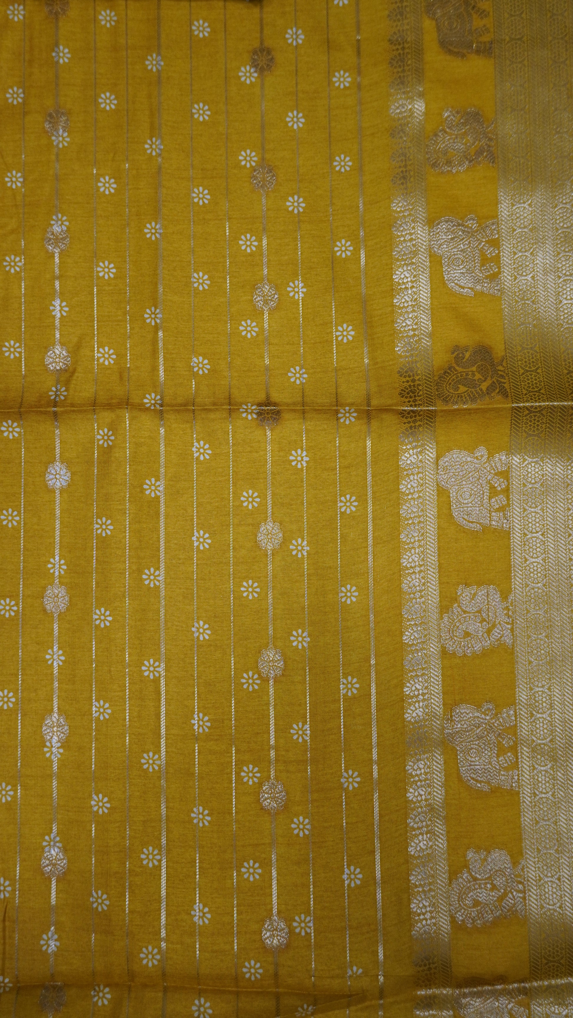 Semi Dola Silk Saree- Lotus Zari Lines-Mustard