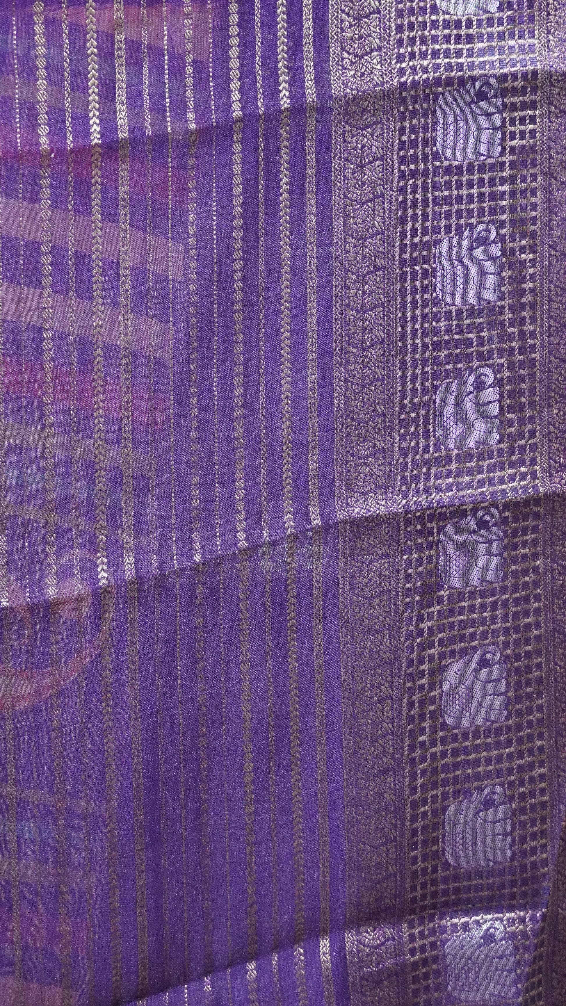 Semi Dola Silk Saree-Peach Elephant Checks