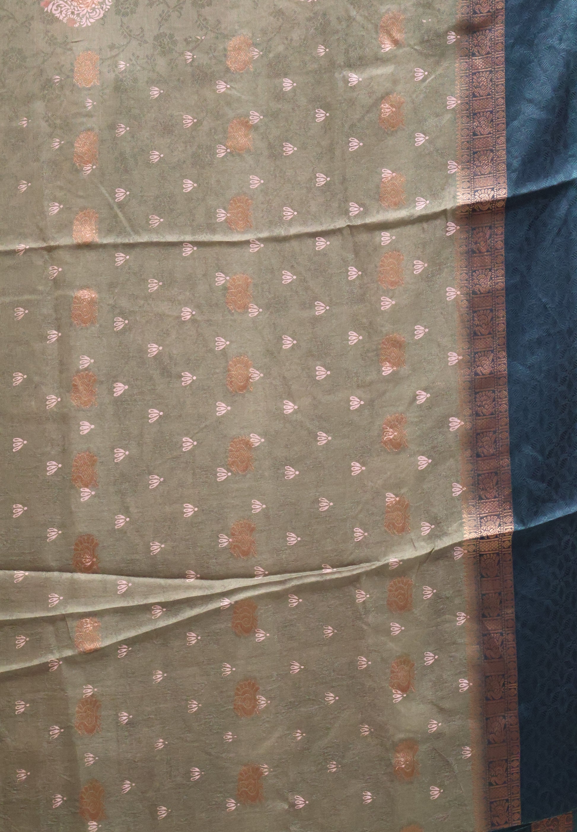 Semi Dola Silk Saree-Green Print Dark Double Border