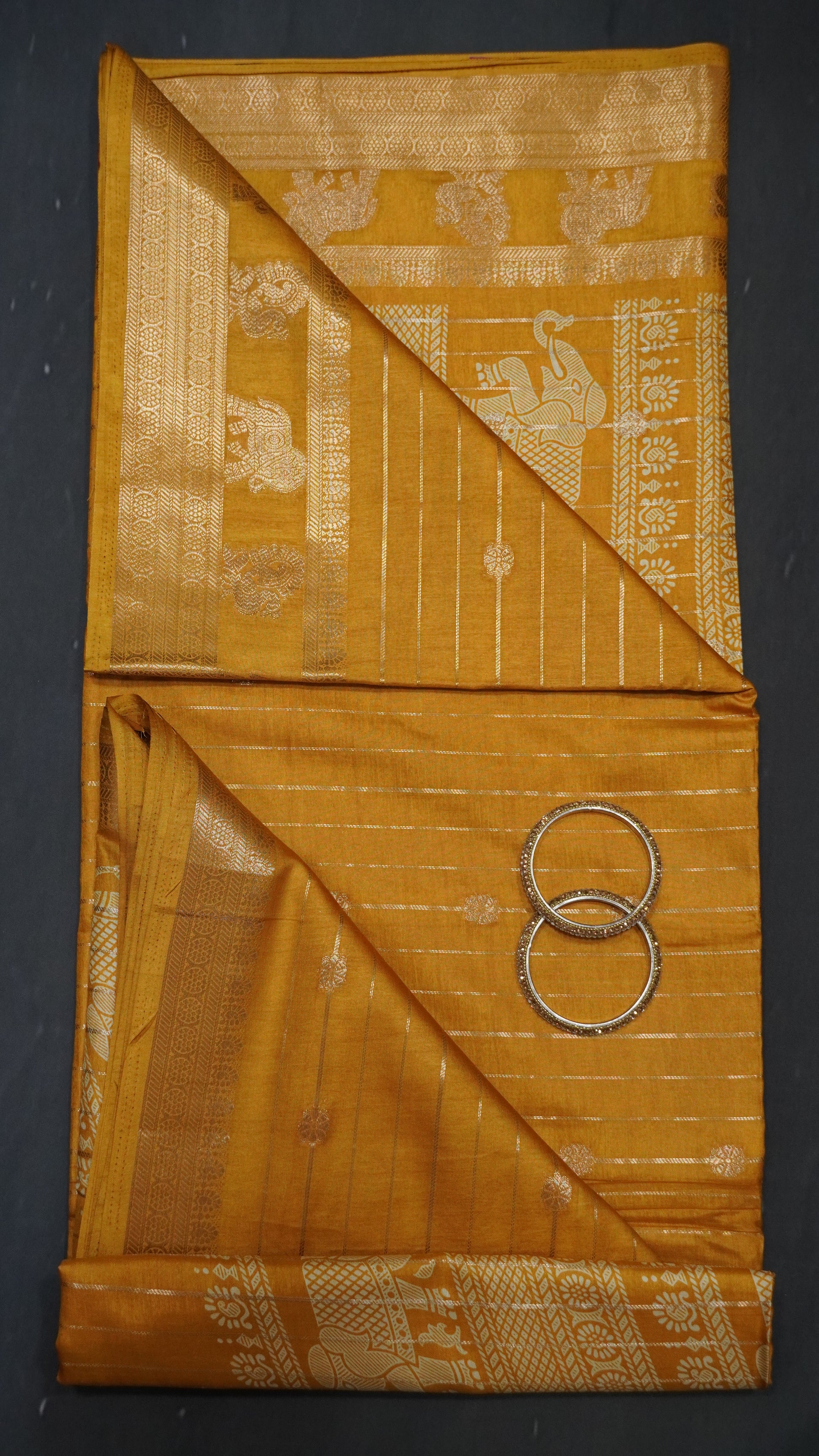 Semi Dola Silk Saree-Zari Lines-Mustard