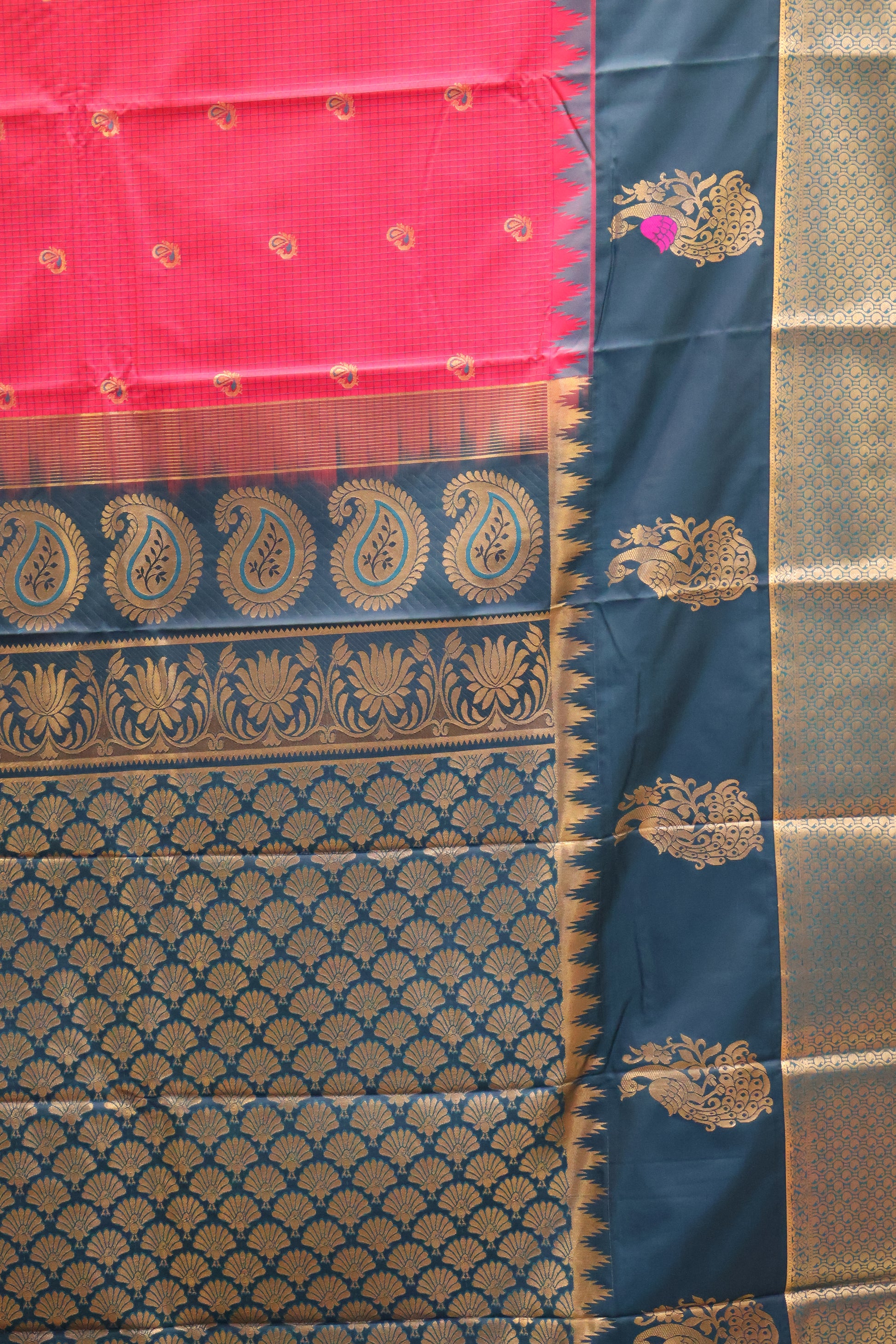 Semi Gadwal Silk Saree-Dark Pink Peacock