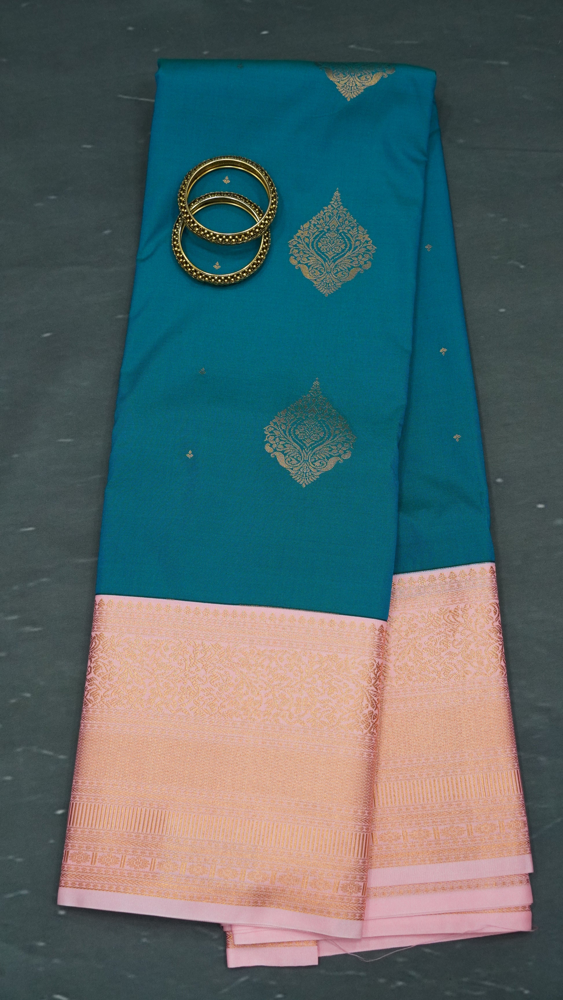Semi Kanjivaram Silk Saree - Light Peacock Blue