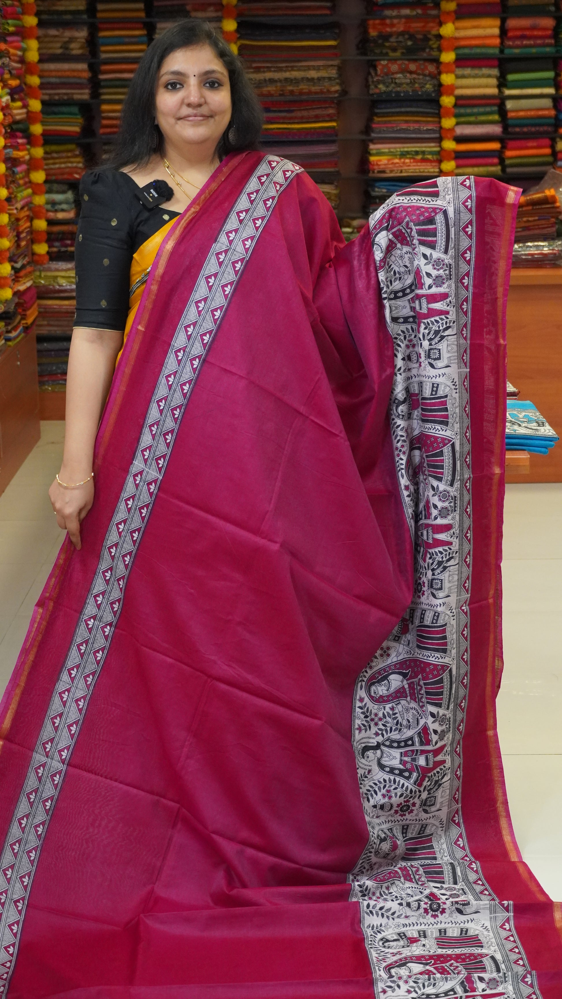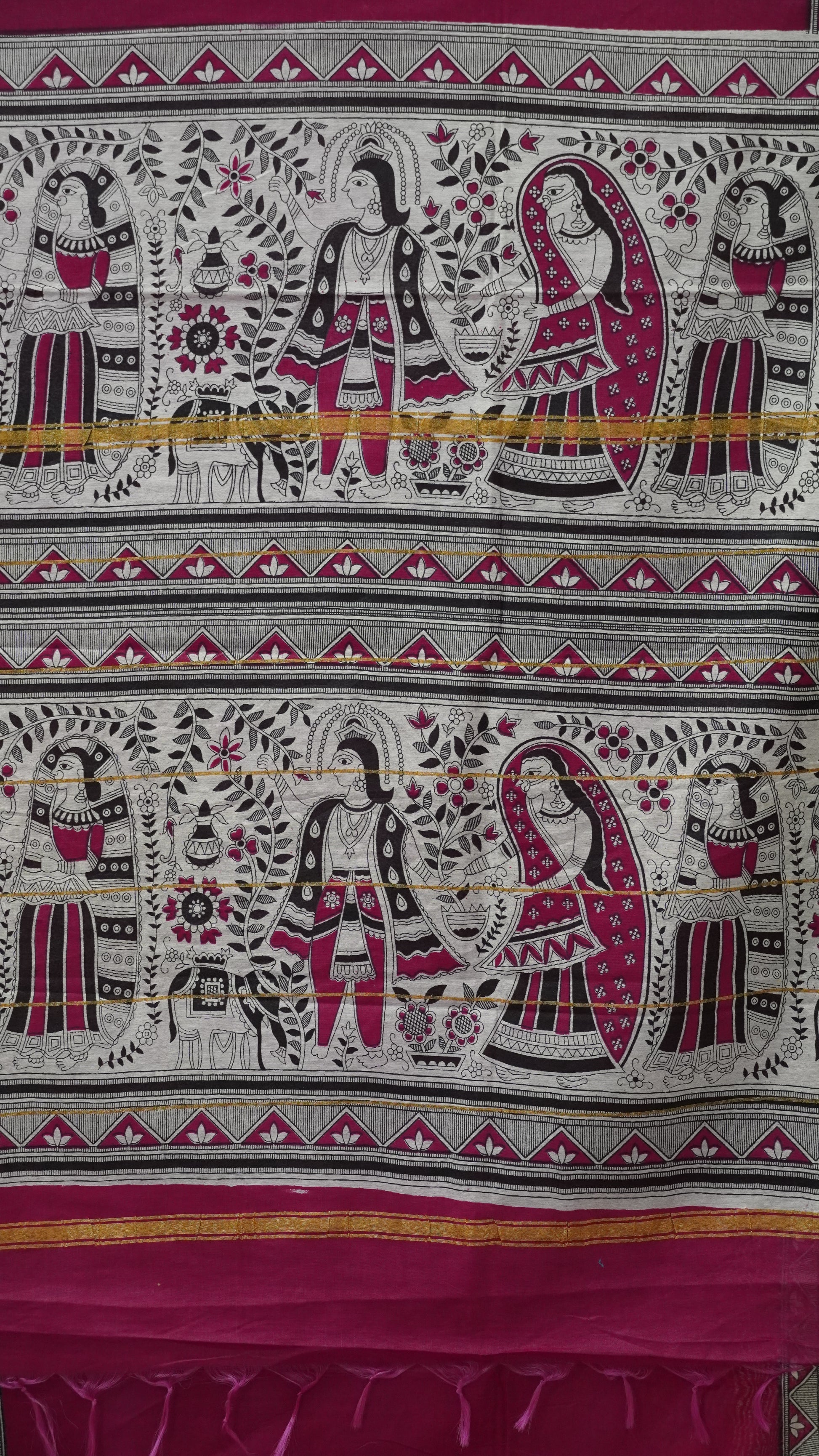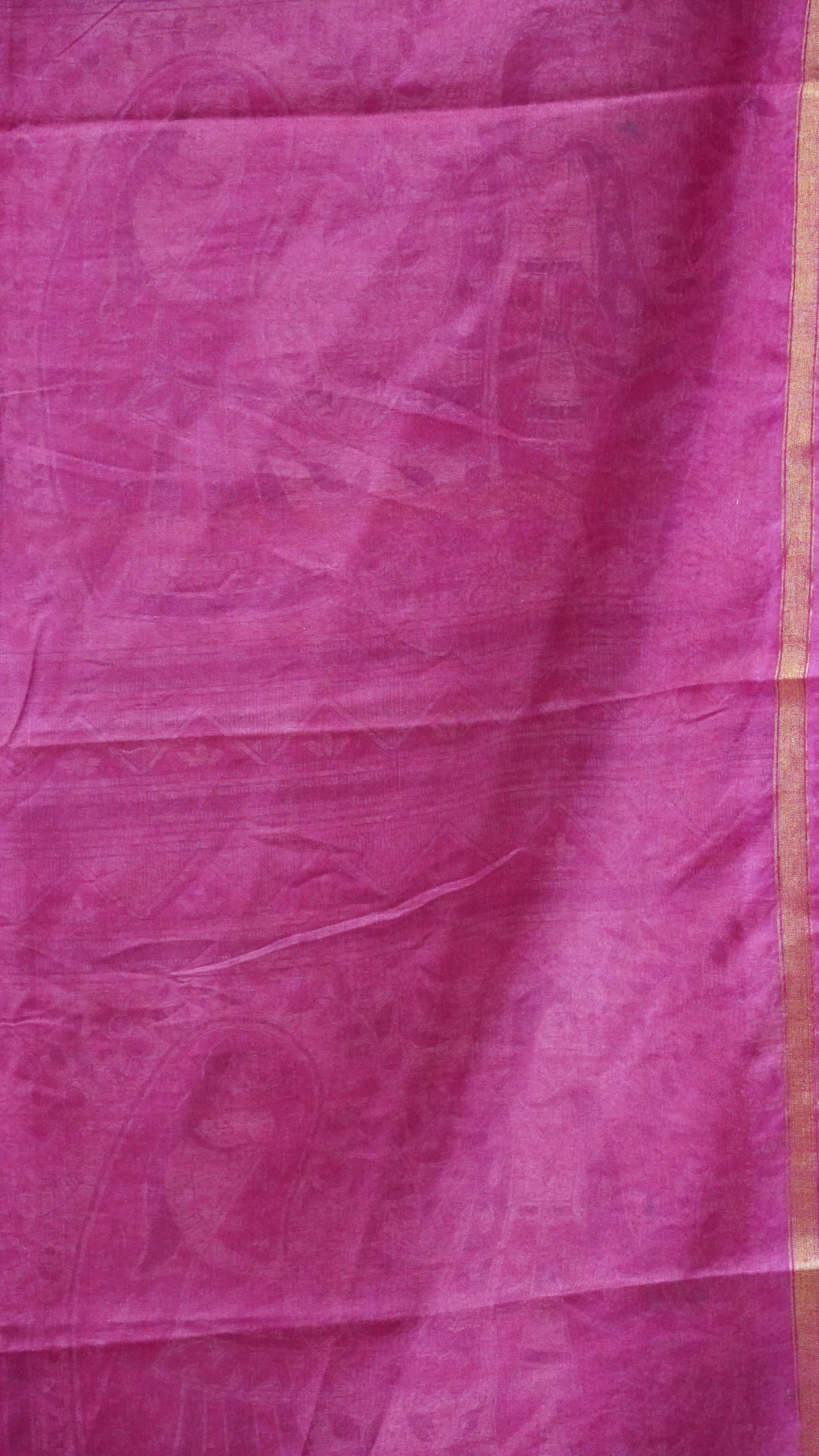 Semi Linen Lavender Saree With Madhubani Print Pink