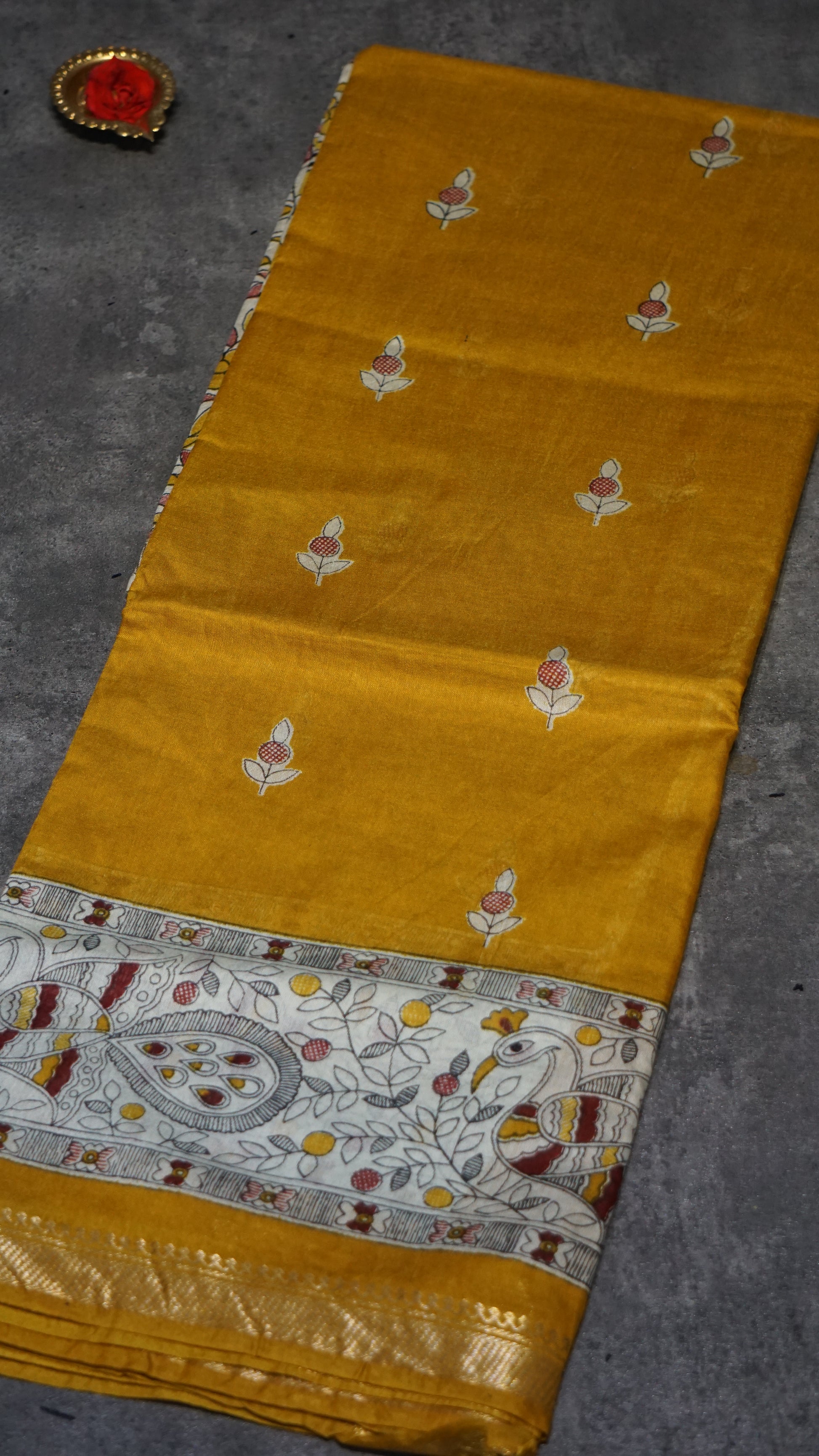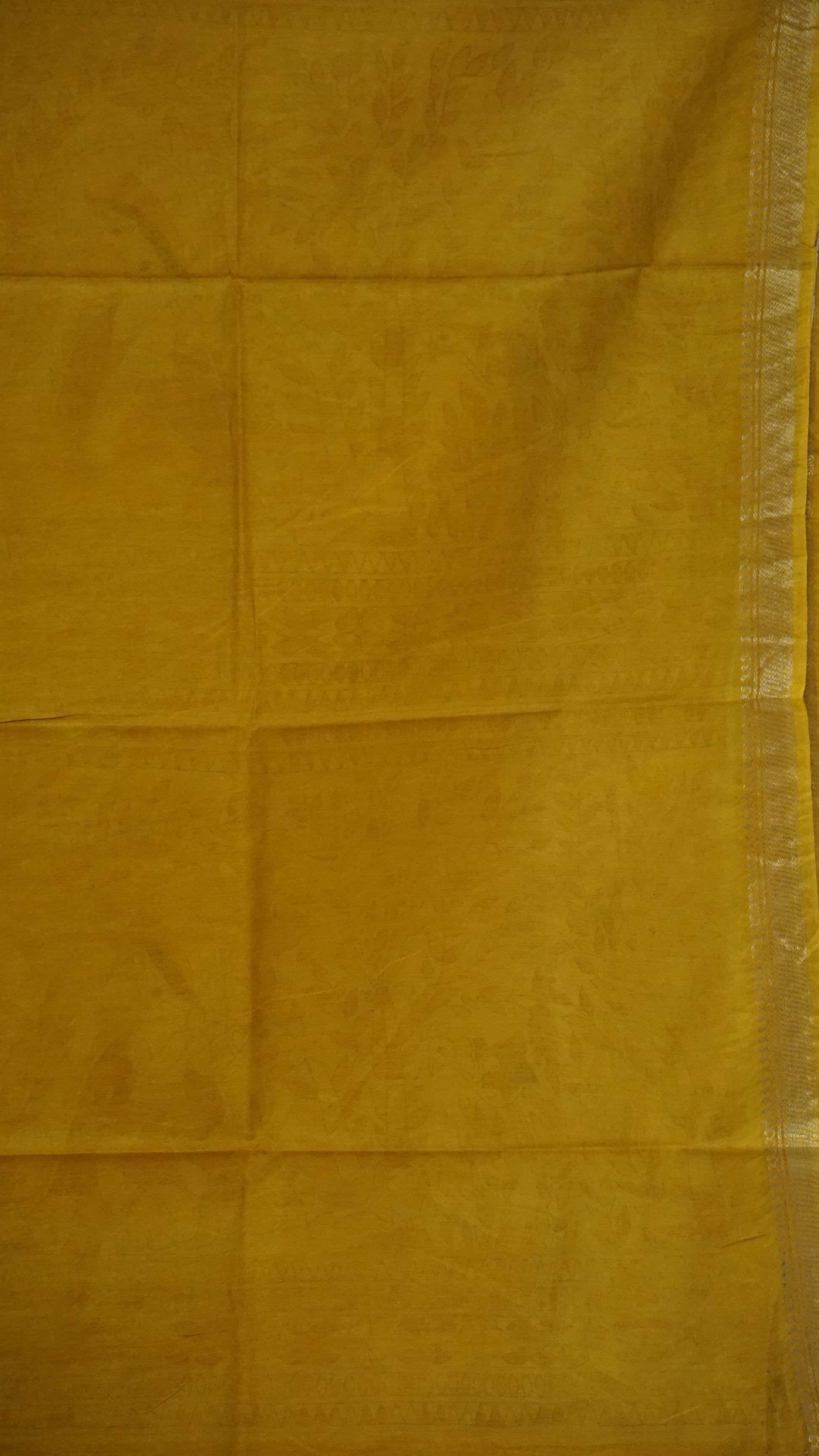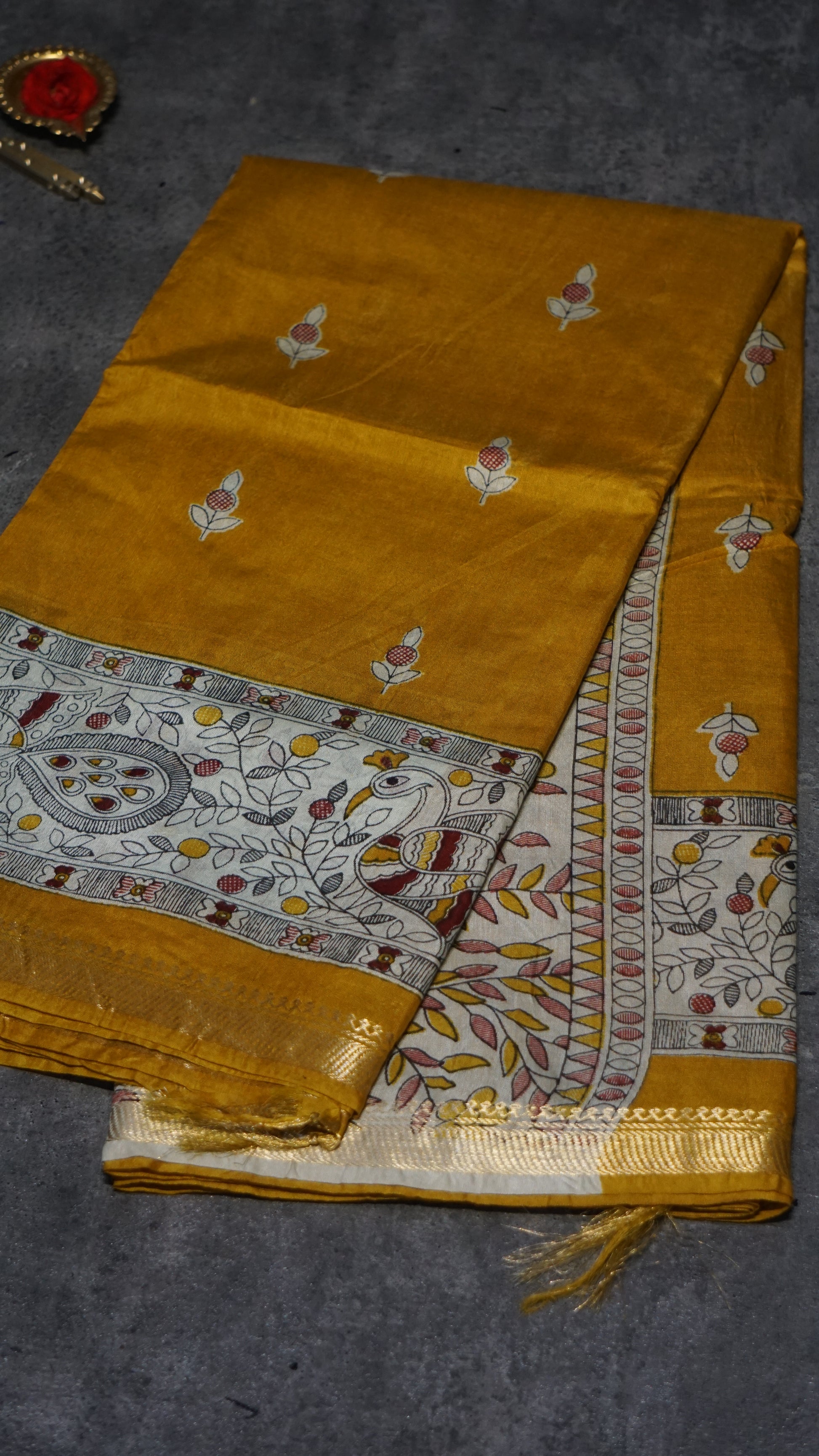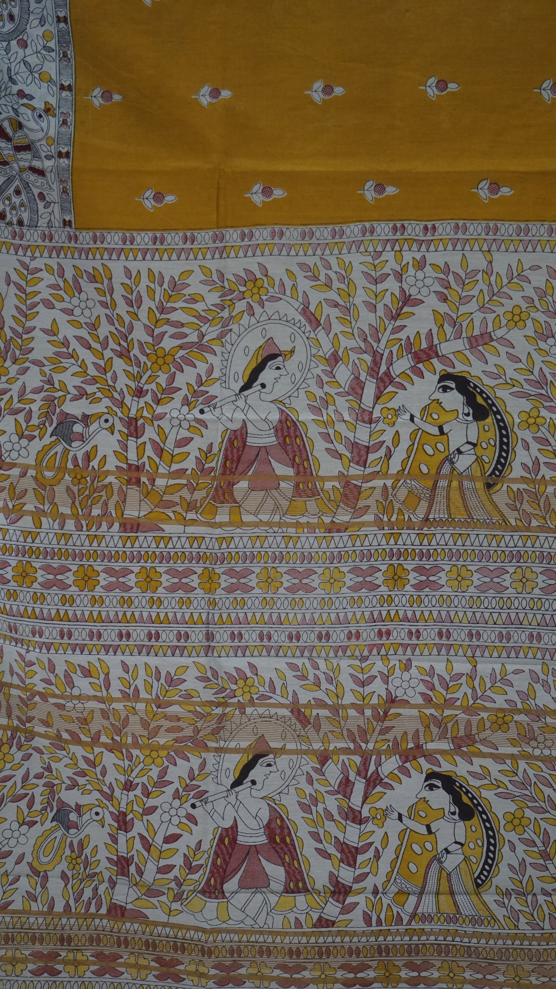Semi Linen Mustard Yellow Saree With Madhubani Print