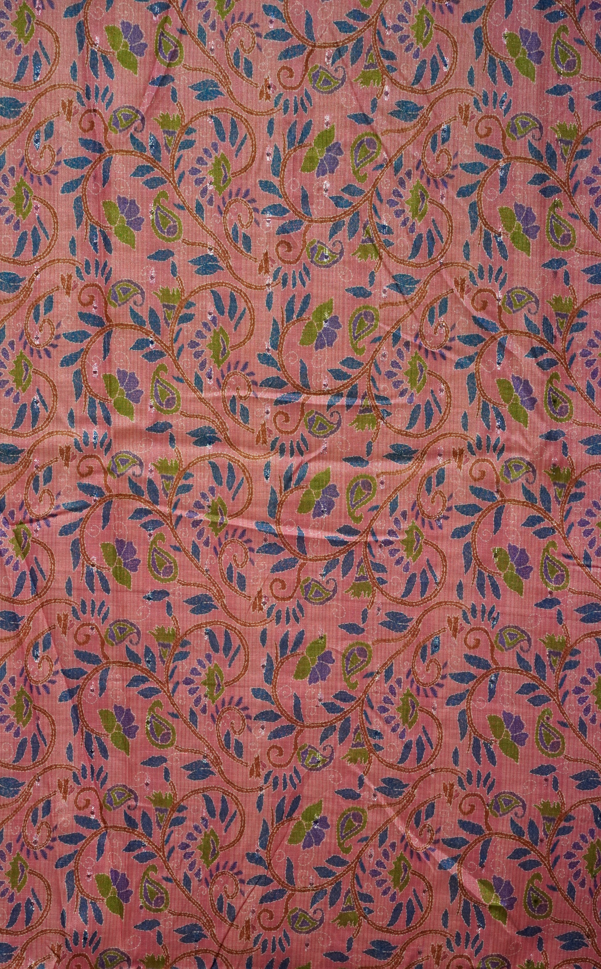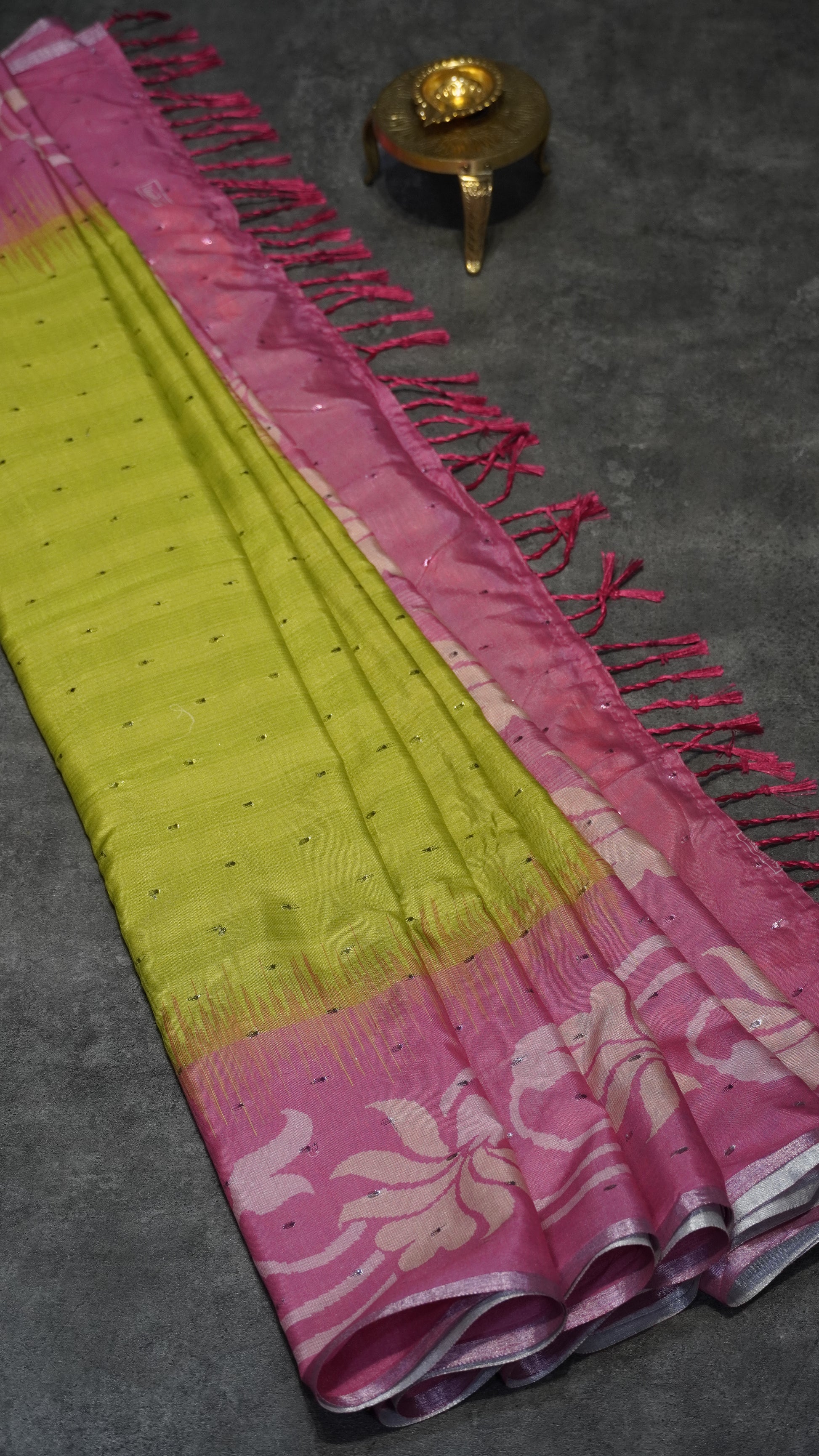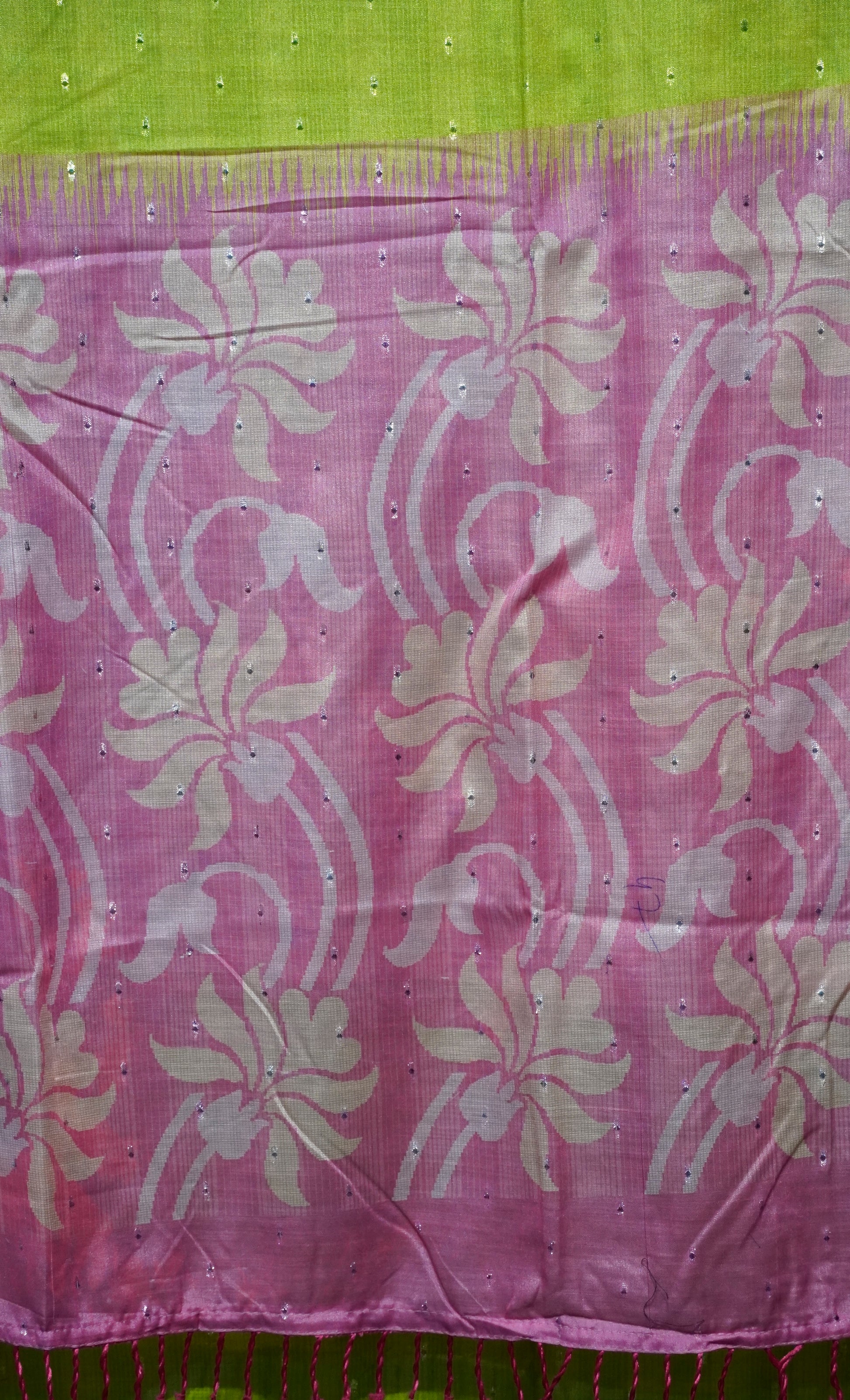 Semi Linen Parrot Green With Pink With Small Zari Border