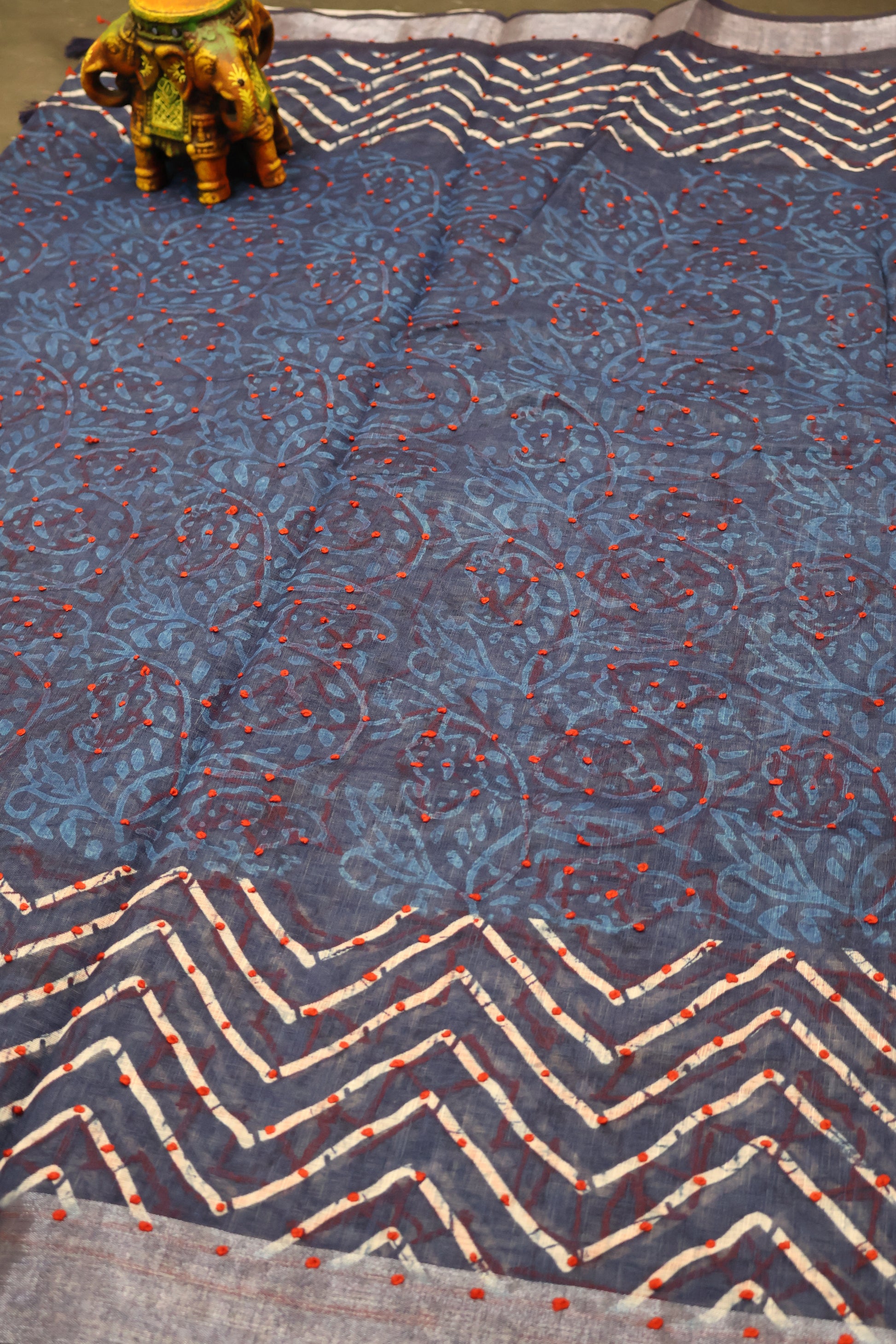 Indigo Linen - Blue Knot Red Kantha Work