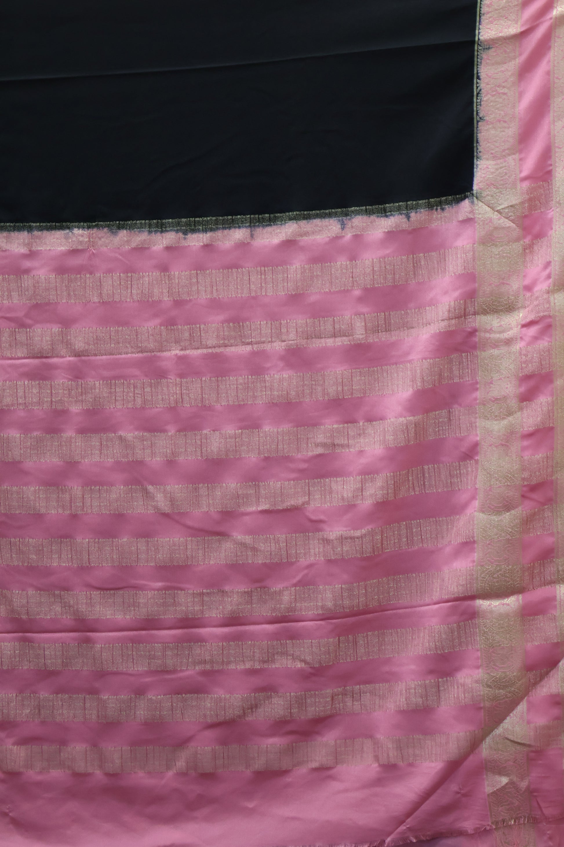 Semi Mysore Silk Saree-Black Pink Double Pattern