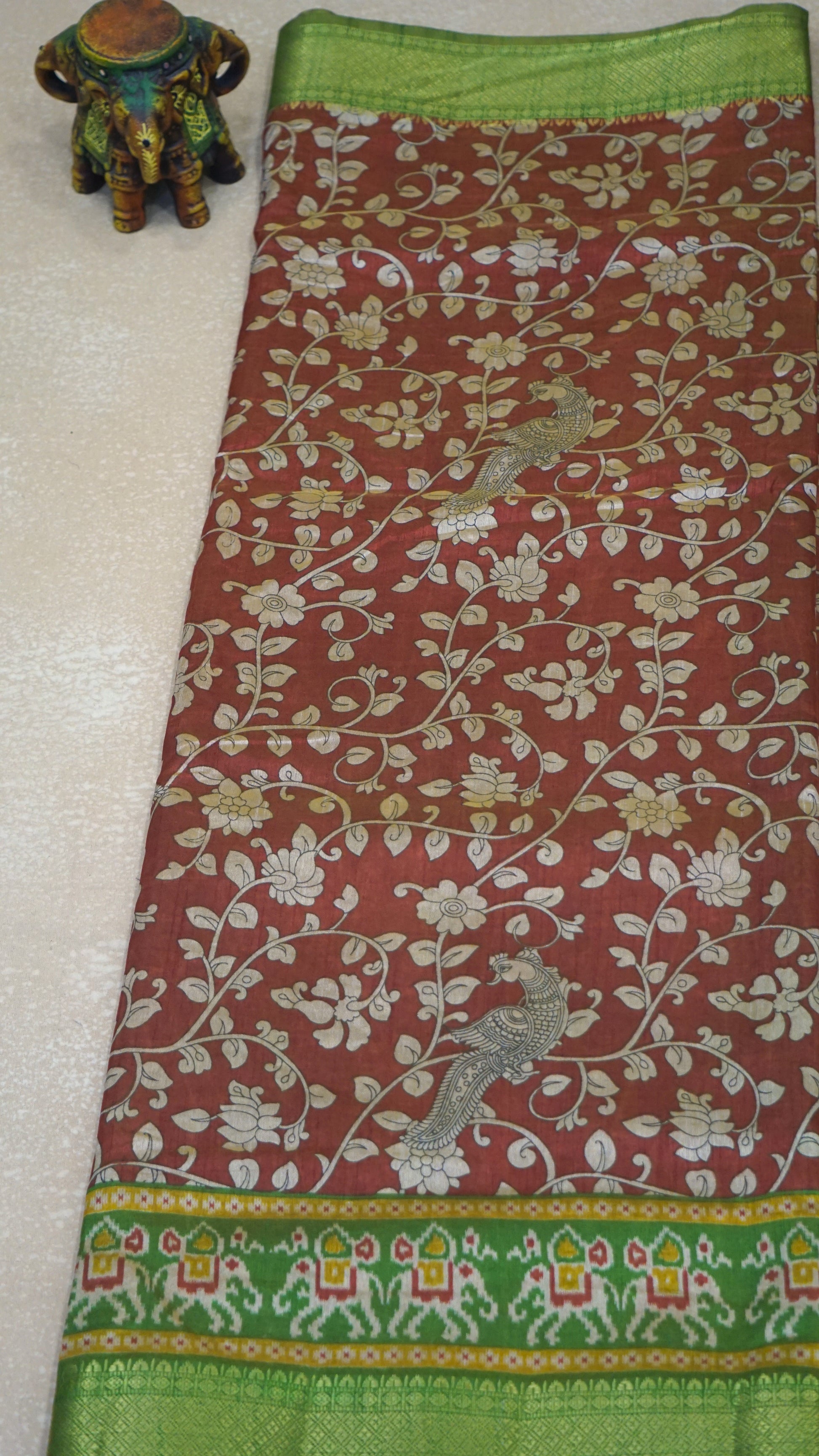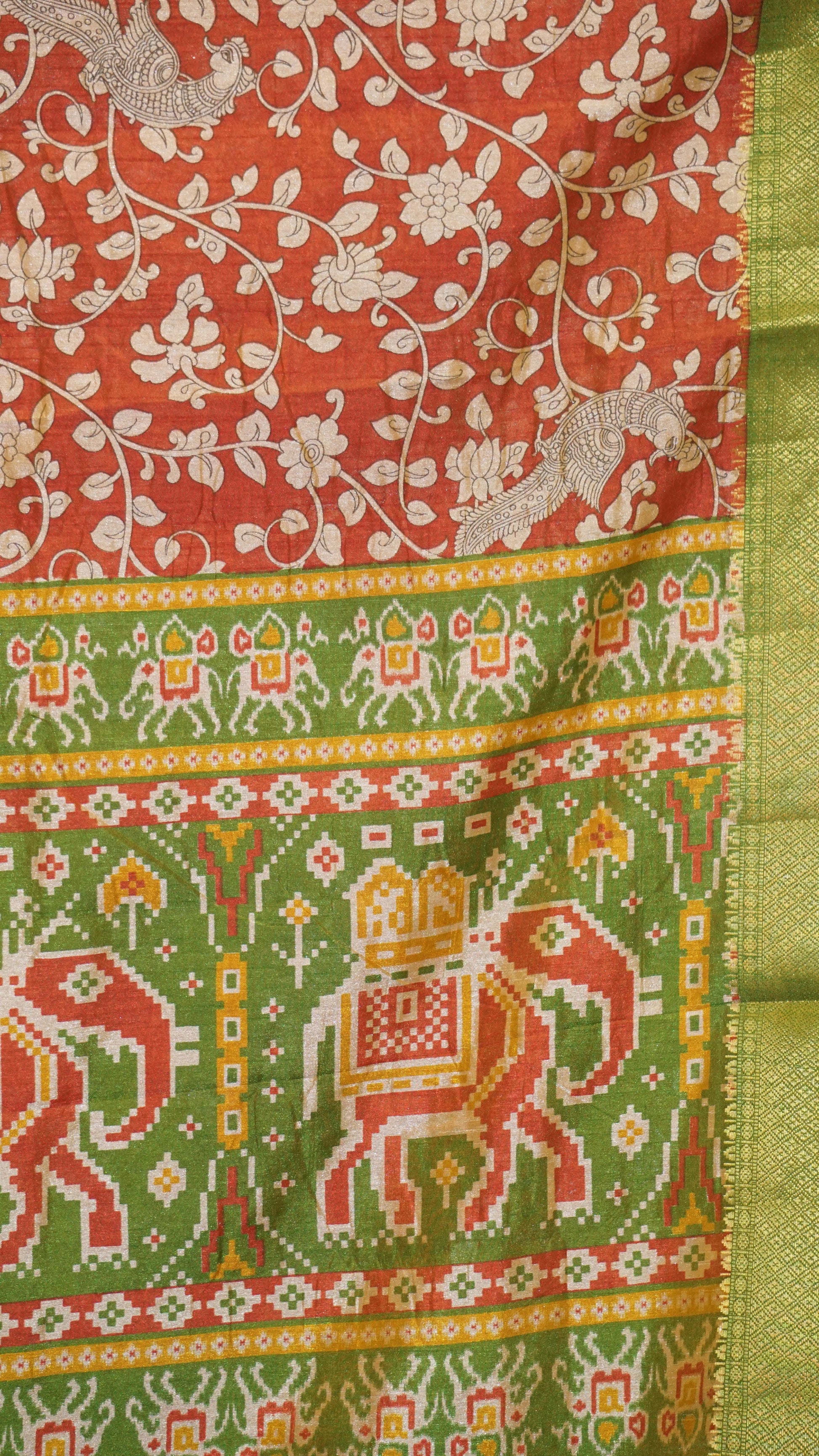Semi Pattola Saree Kalamkari Print - Rust Orange