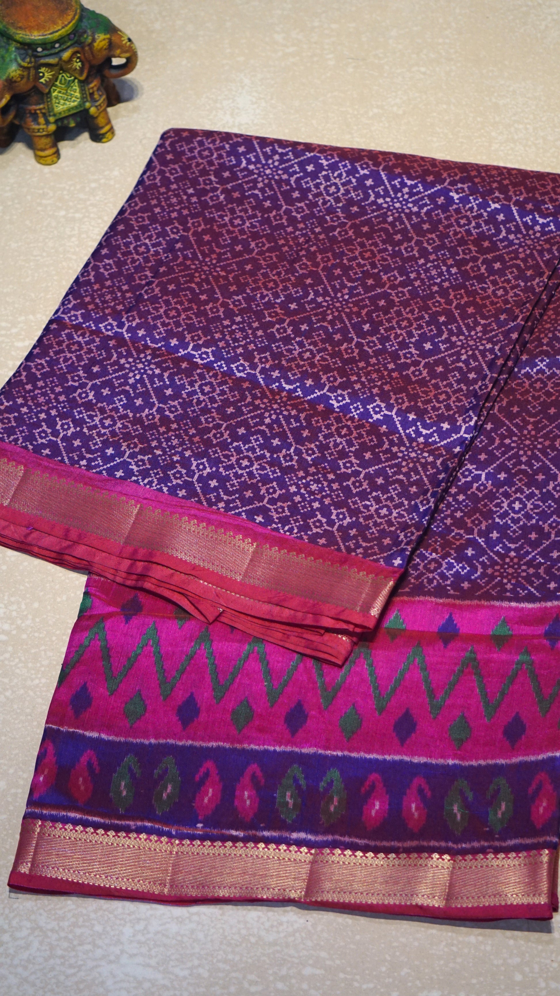 Semi Pattola Saree Pochampally Print - Purple