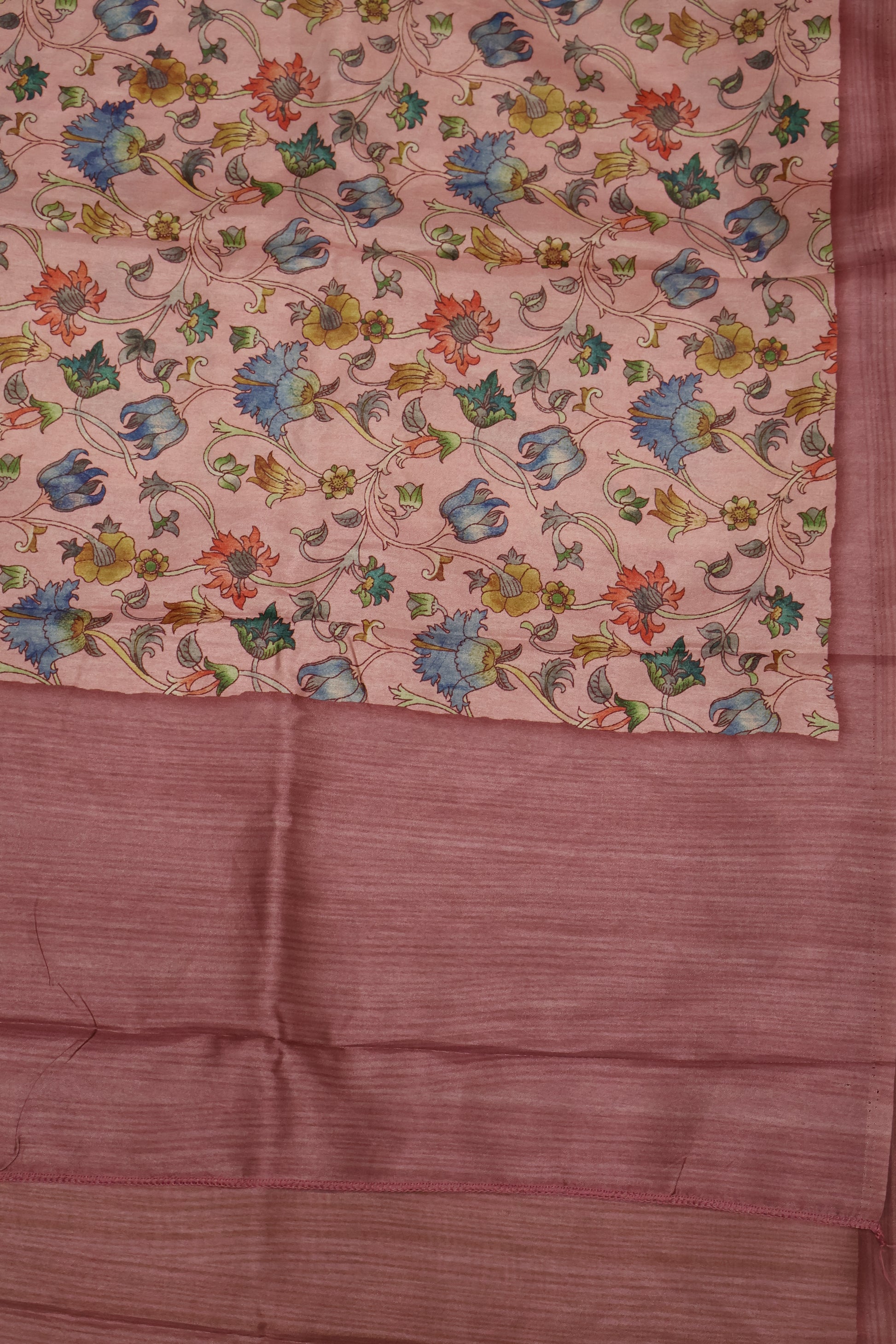 Semi Printed Silk Saree -Dusky Rose Kalamkari Body