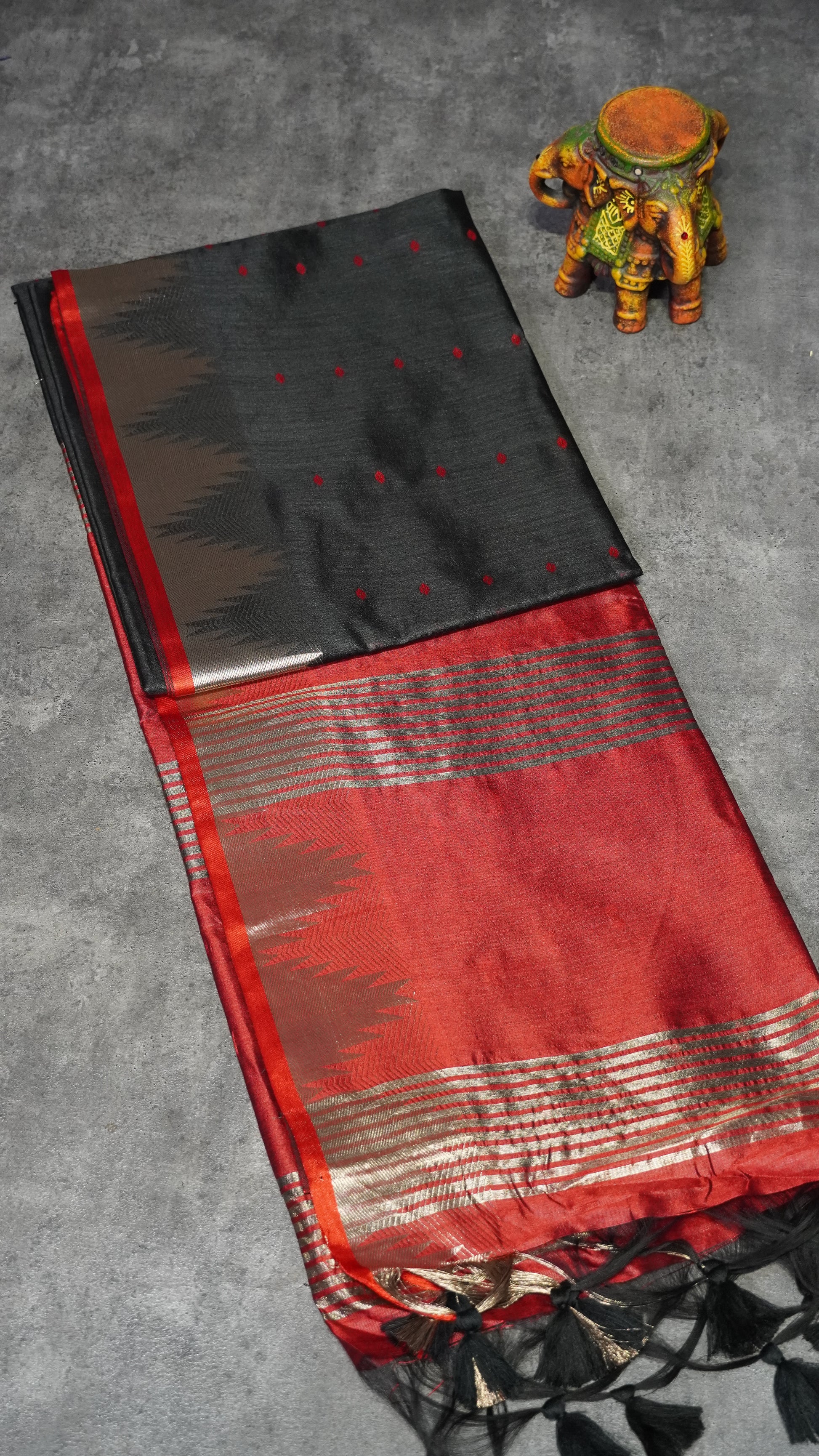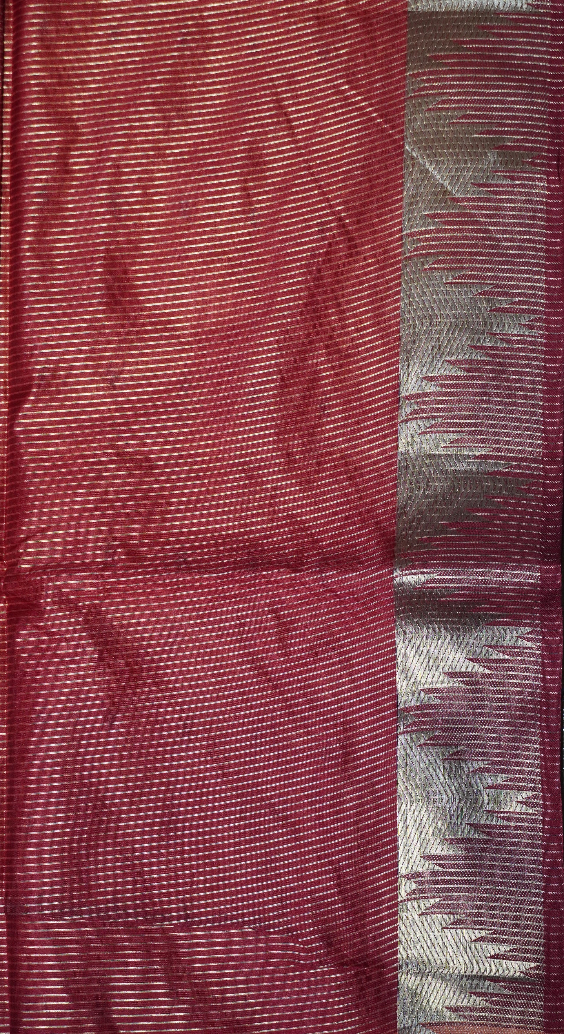 Semi Raw Silk Temple Border Black to Maroon