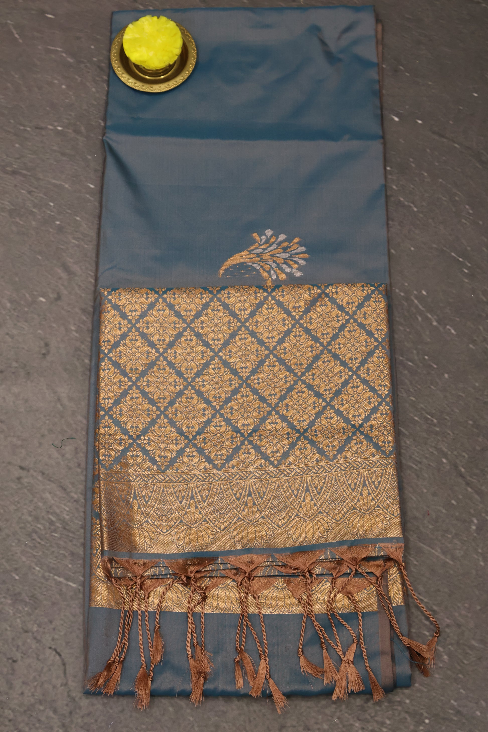 Semi Soft Silk Saree-Floral Pattern-Peacock Blue