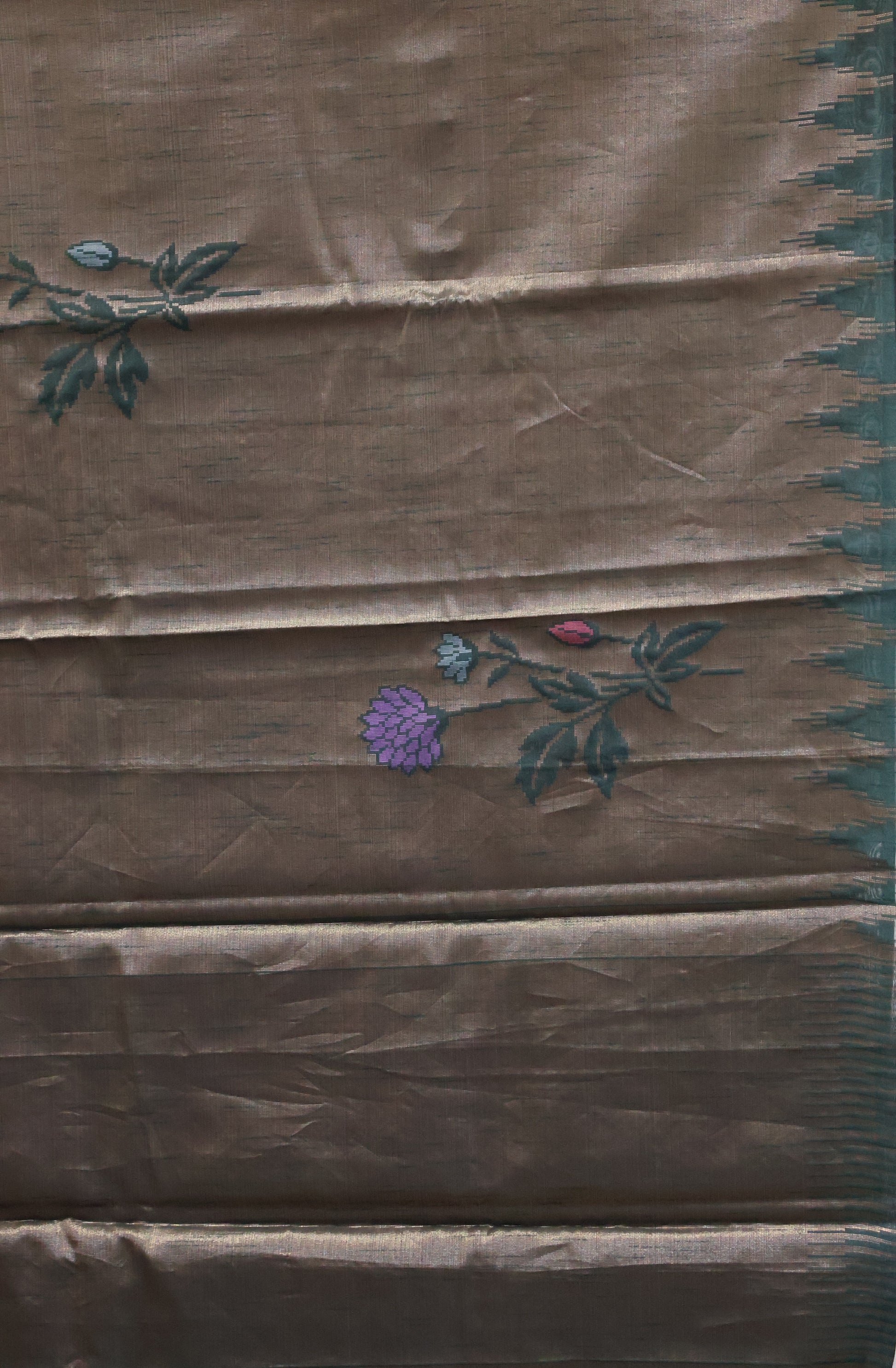 Tissue Silk Saree-Bottle Green Large Tower Border