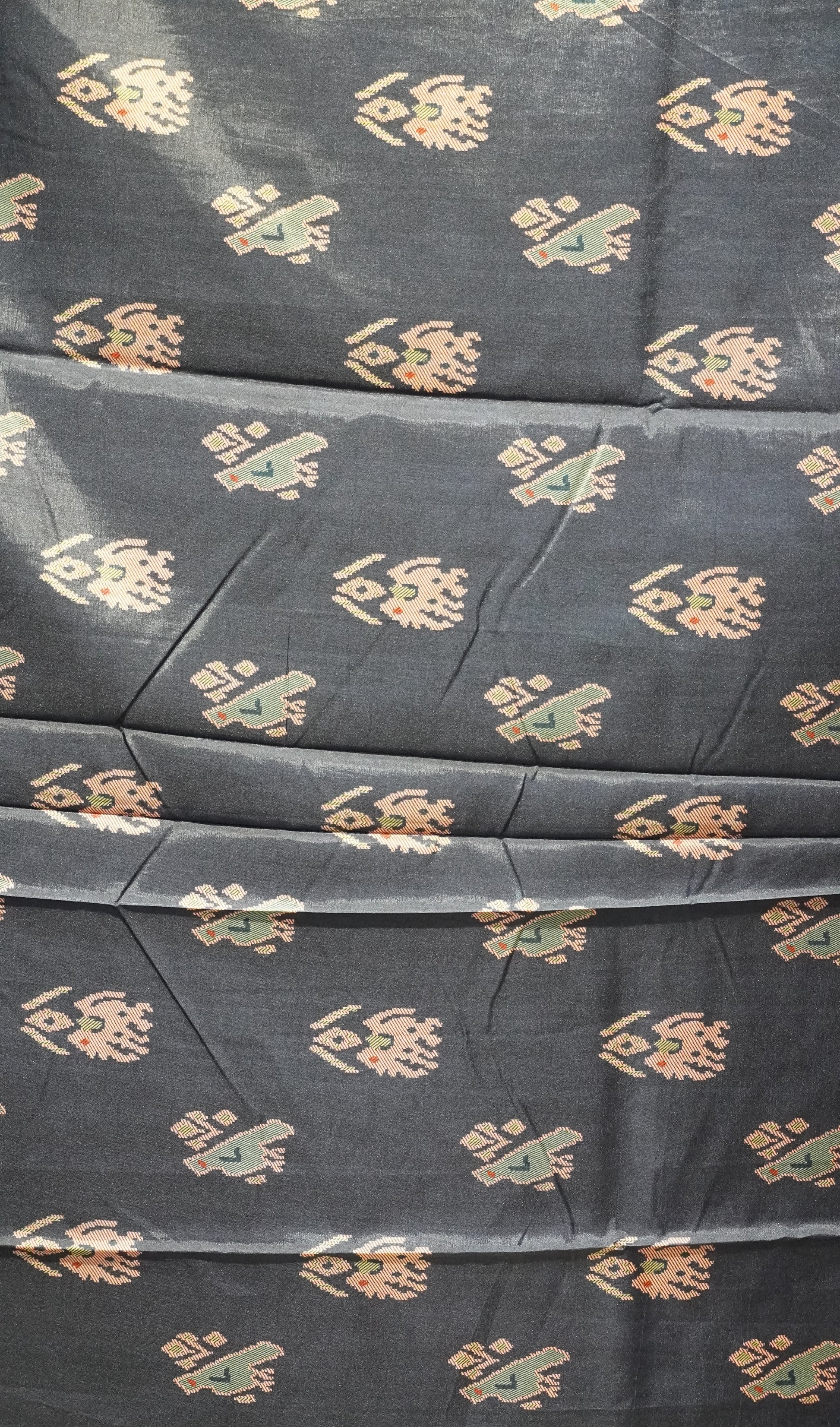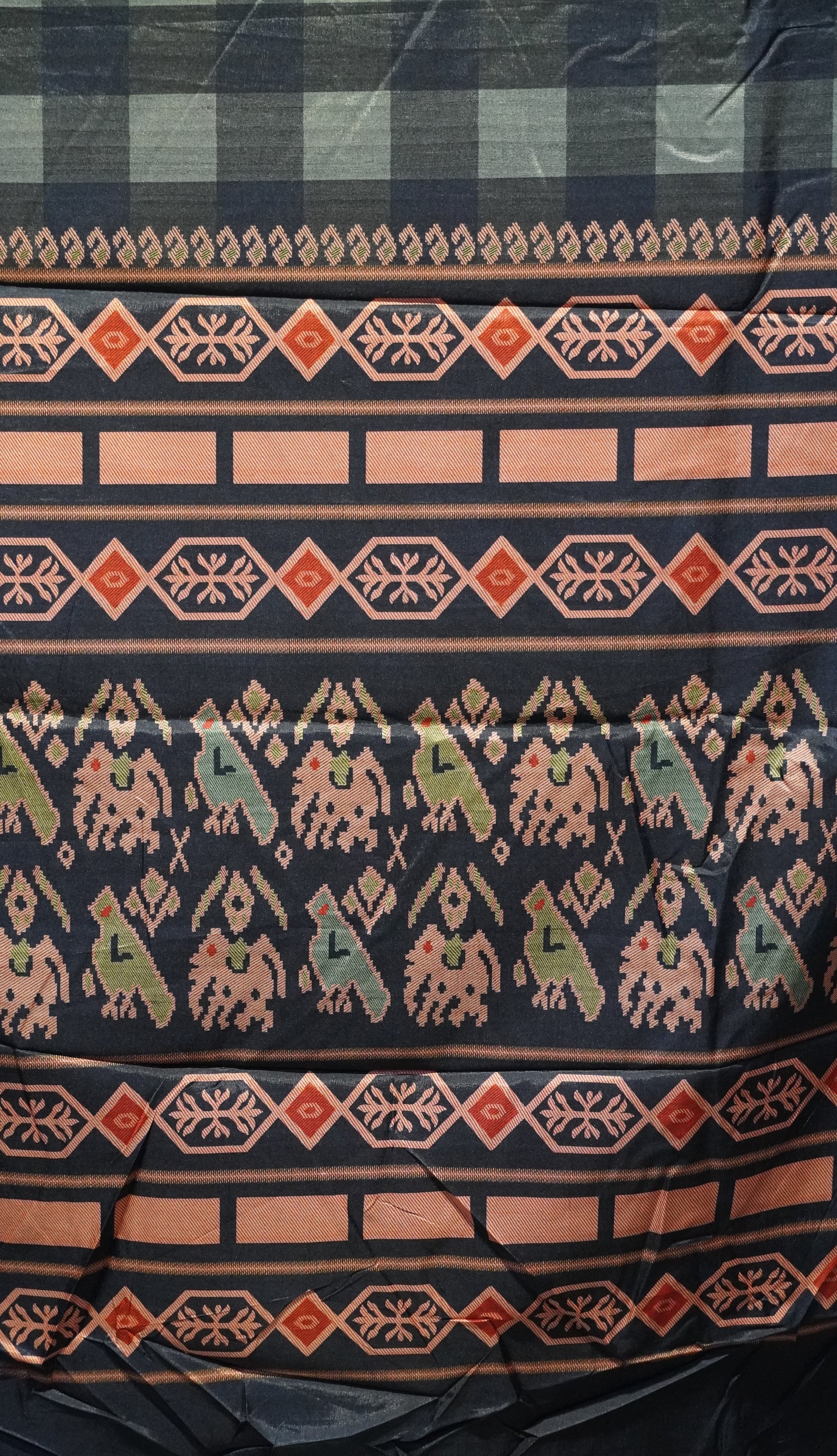 Semi Tussar Saree Checkered Pattern Black to Grey