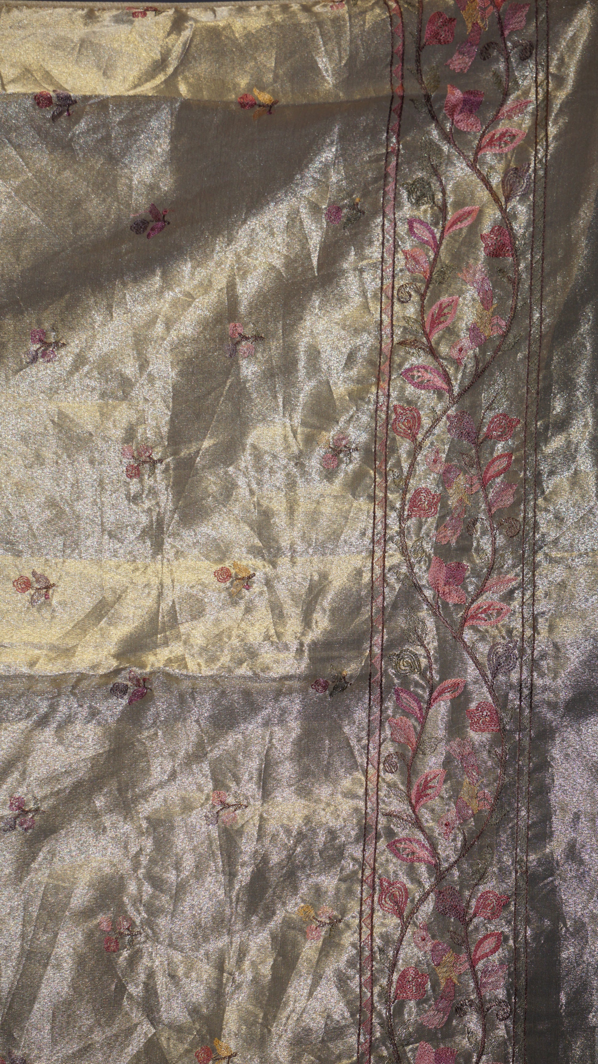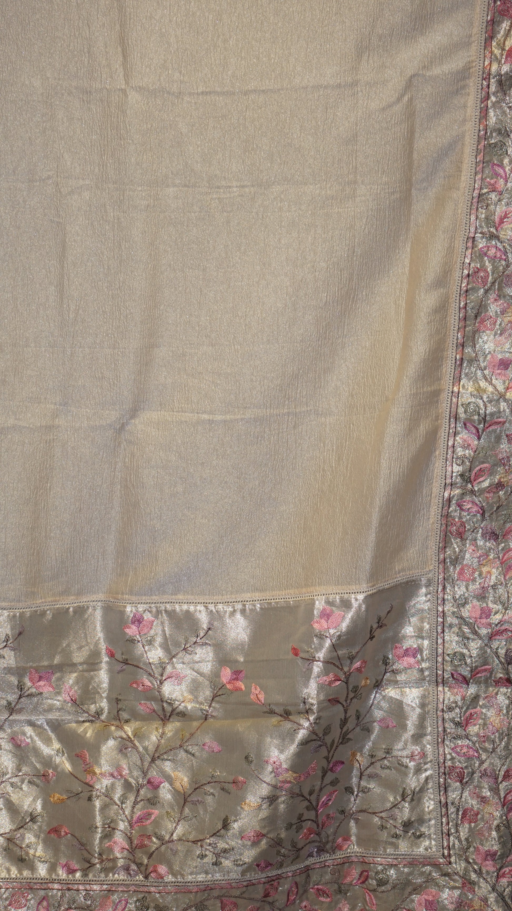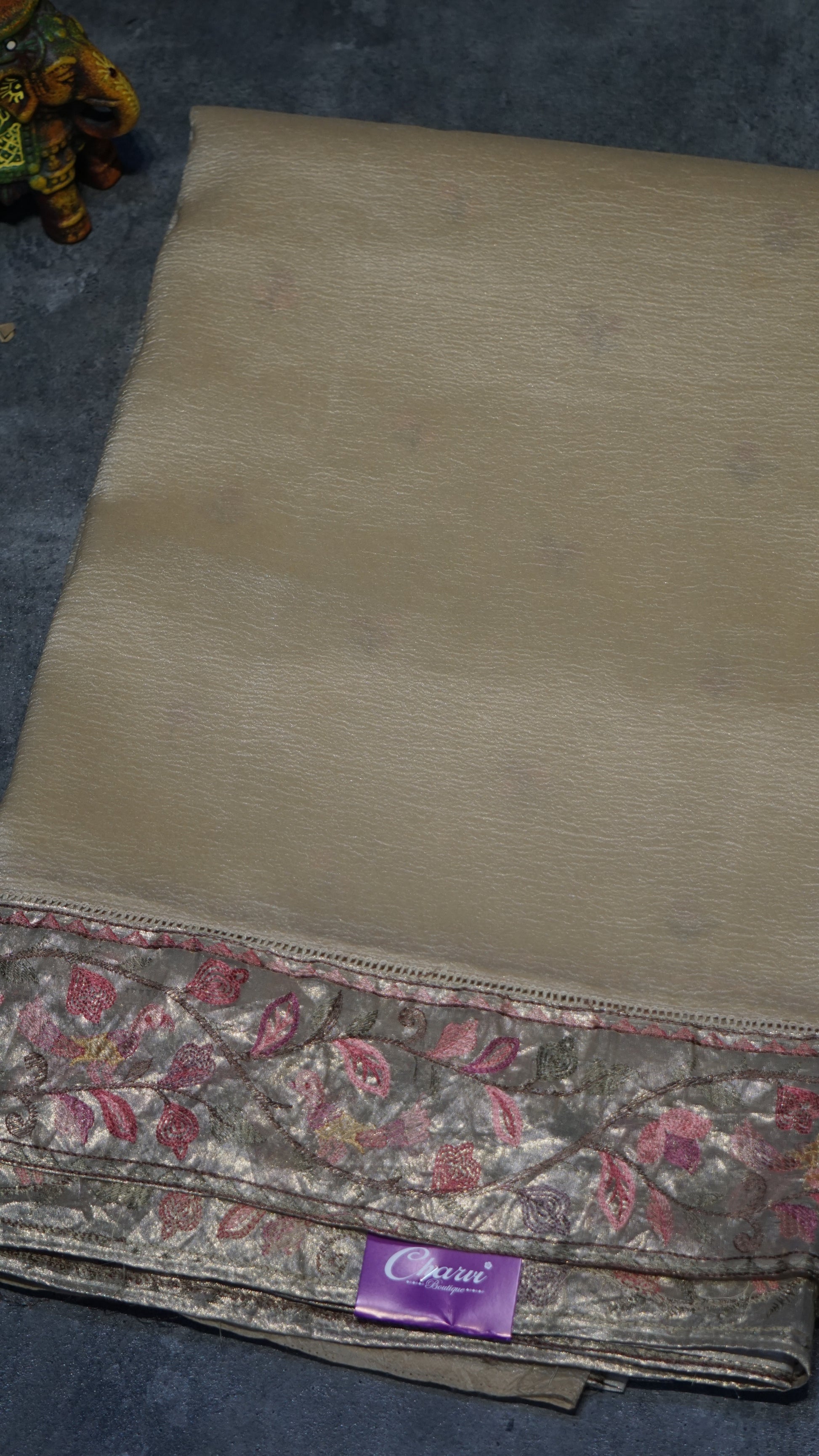 Semi Tussar Saree Crushed With Tissue Border Cream