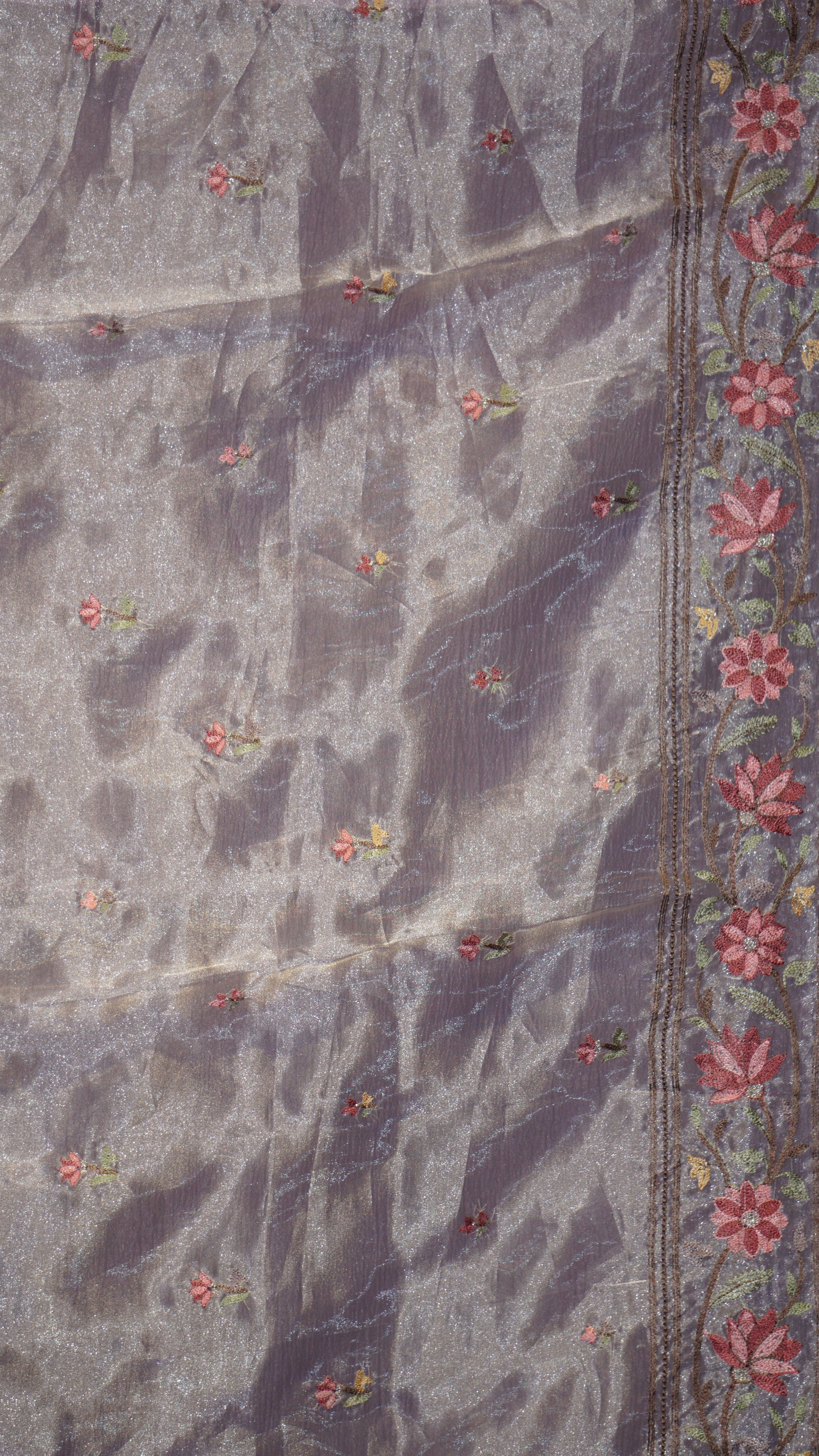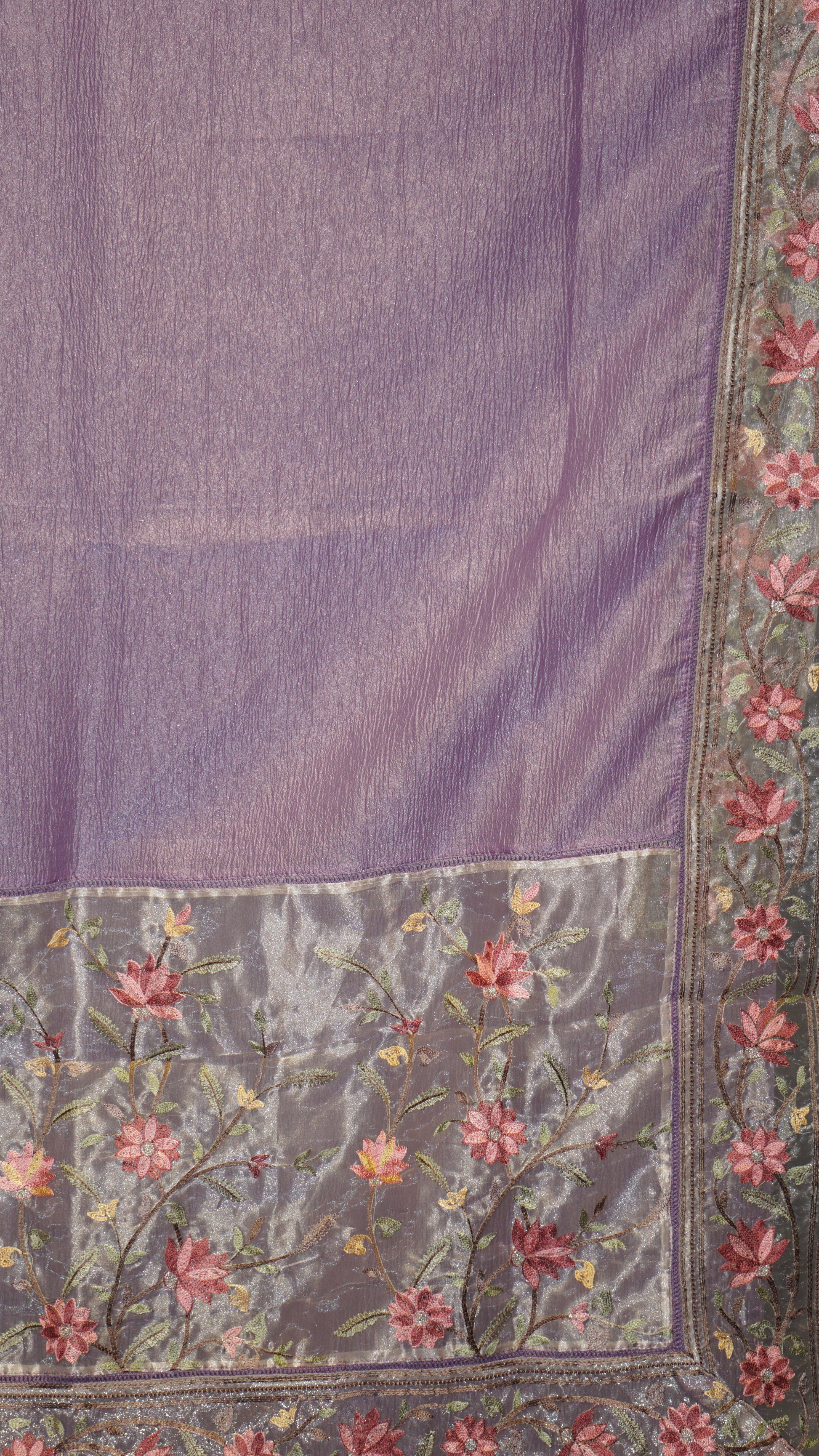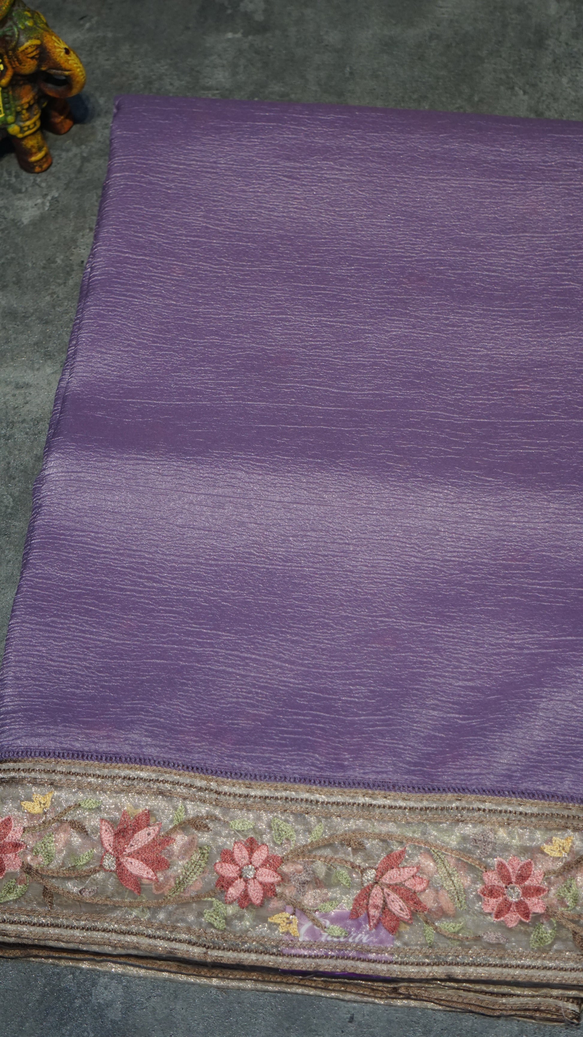 Semi Tussar Saree Crushed With Tissue Border Lavender