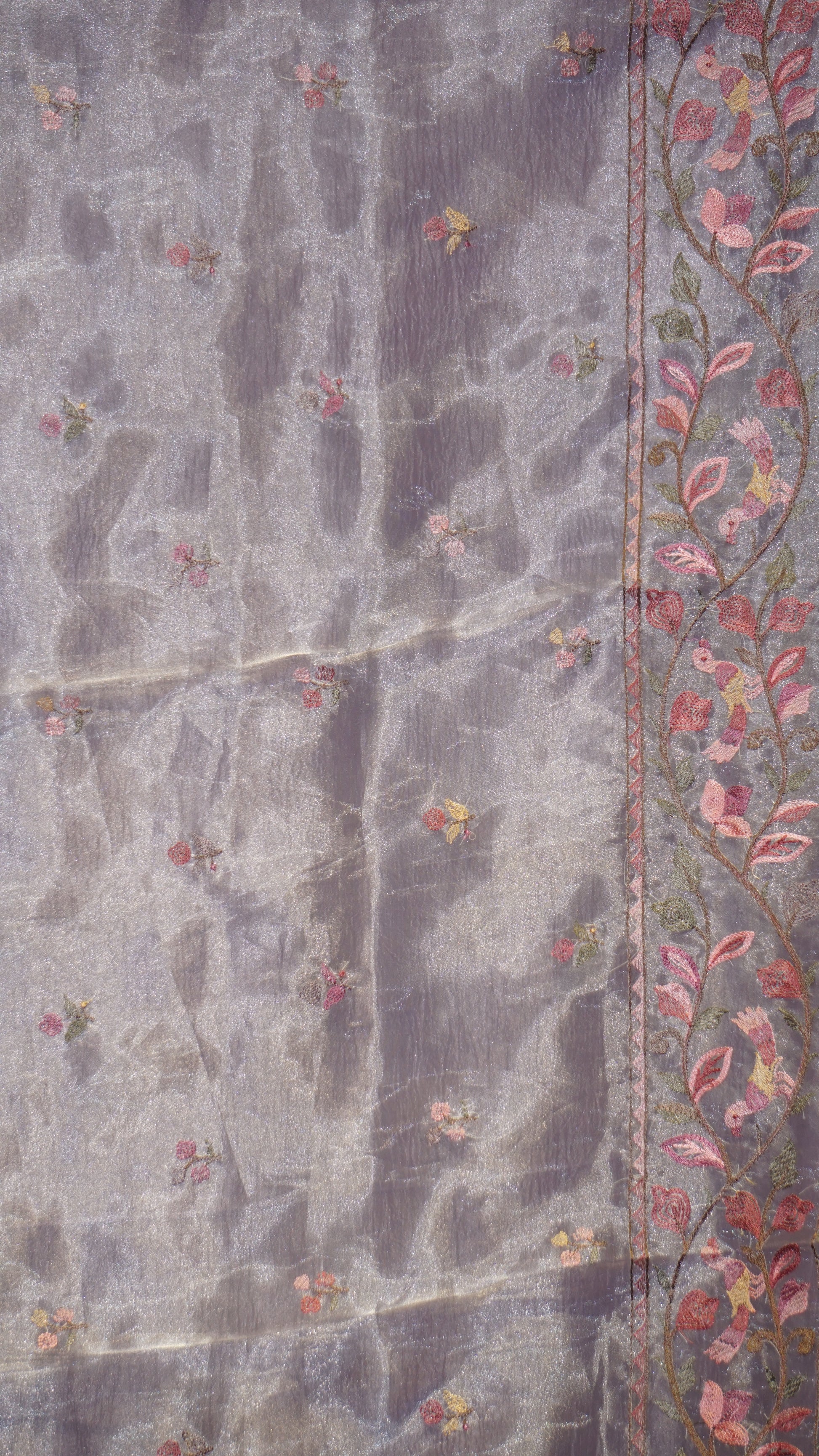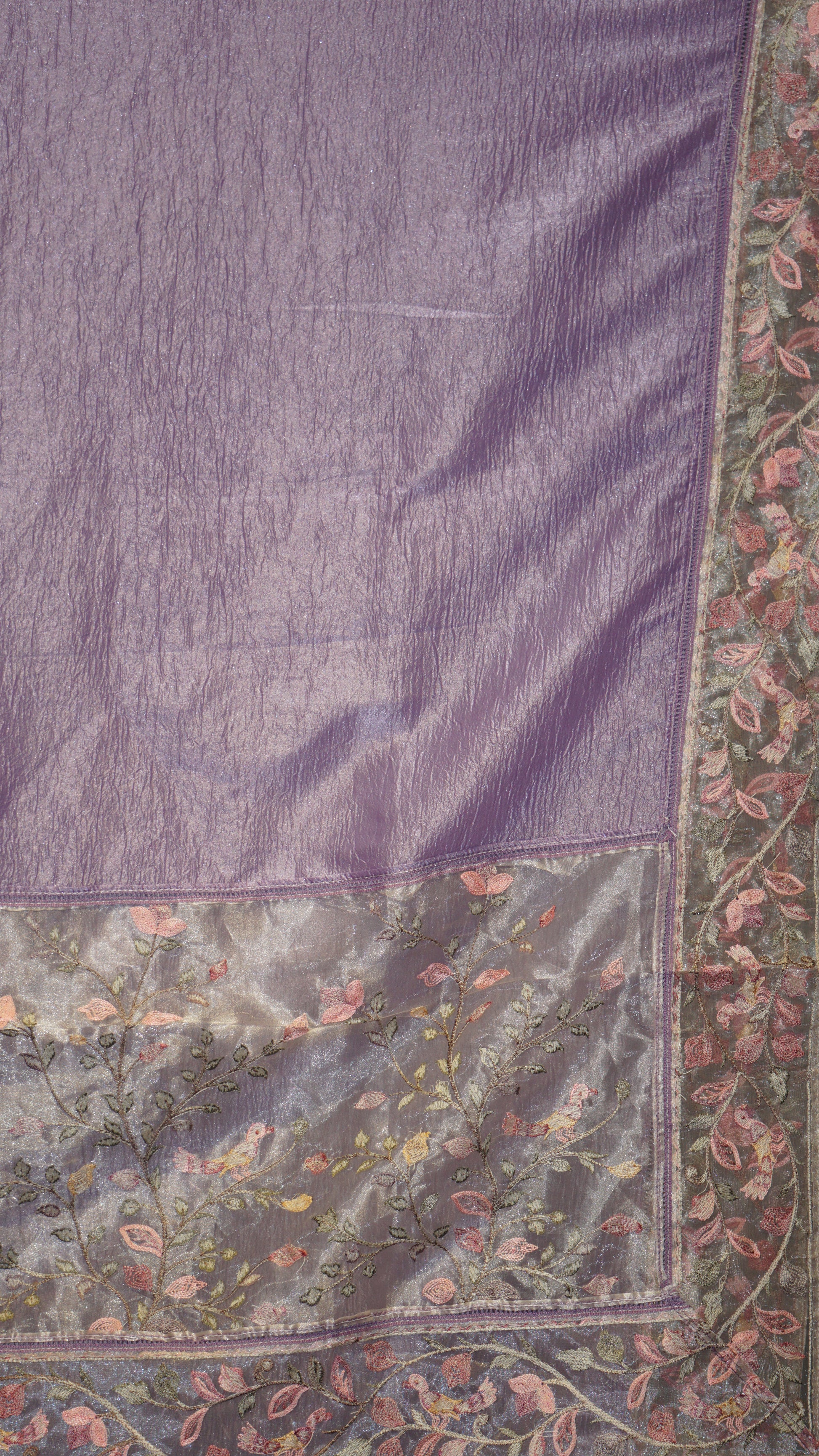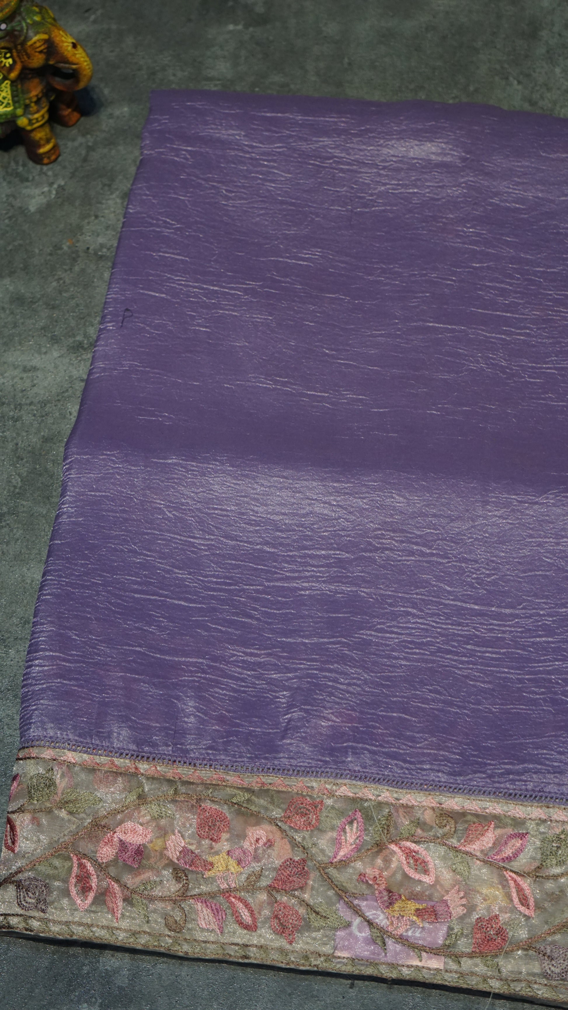 Semi Tussar Saree Crushed With Tissue Border Lavender