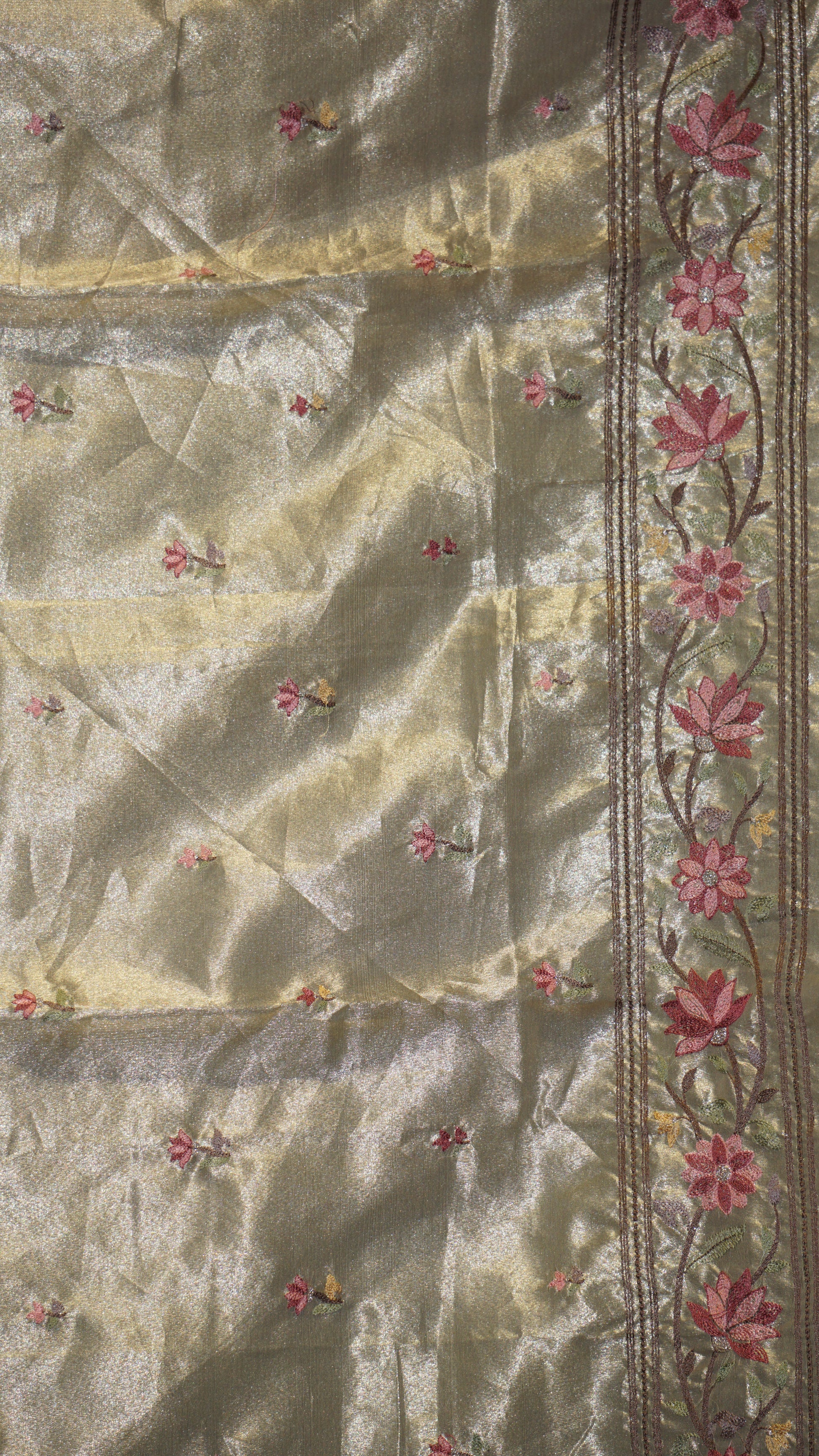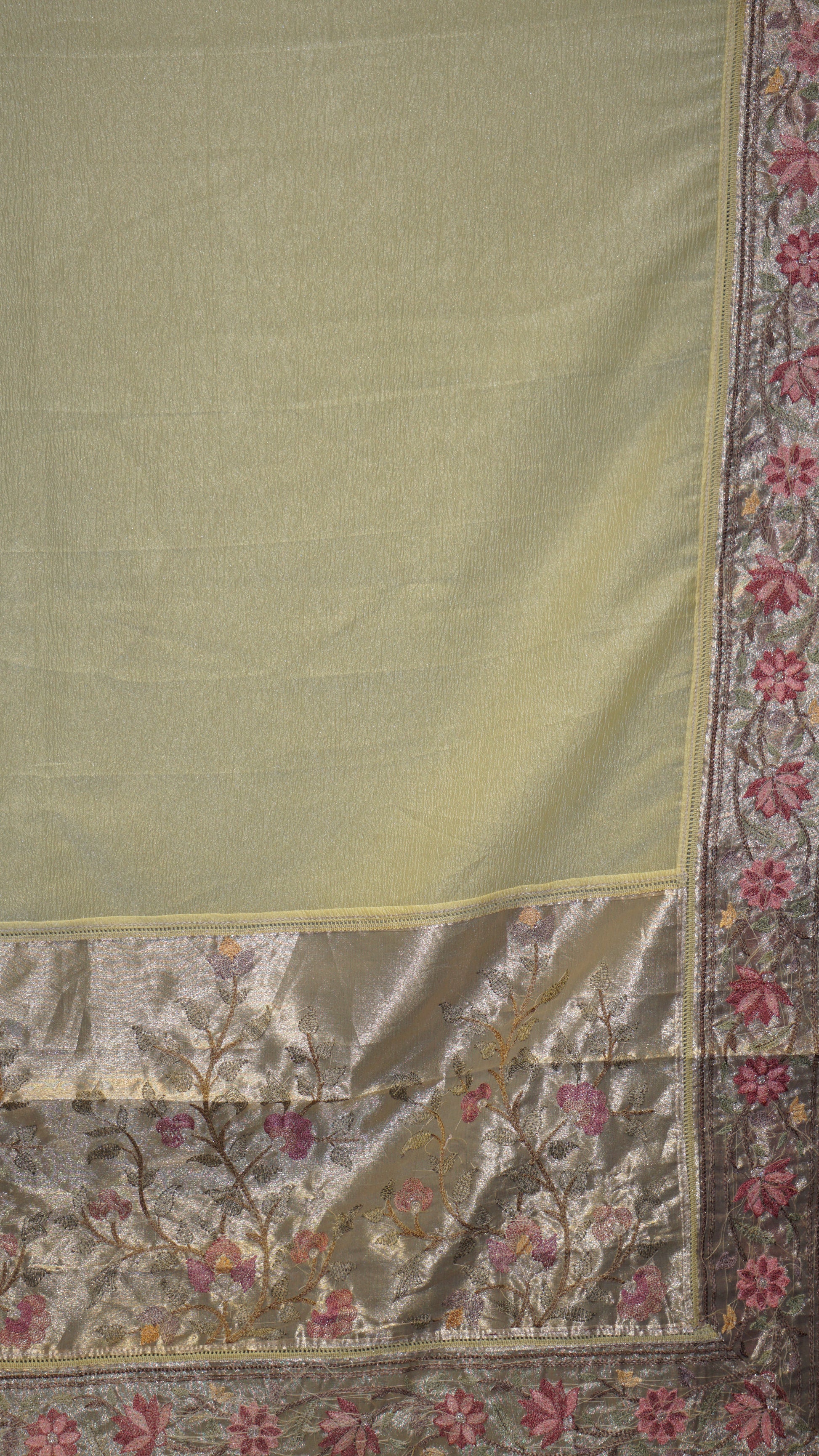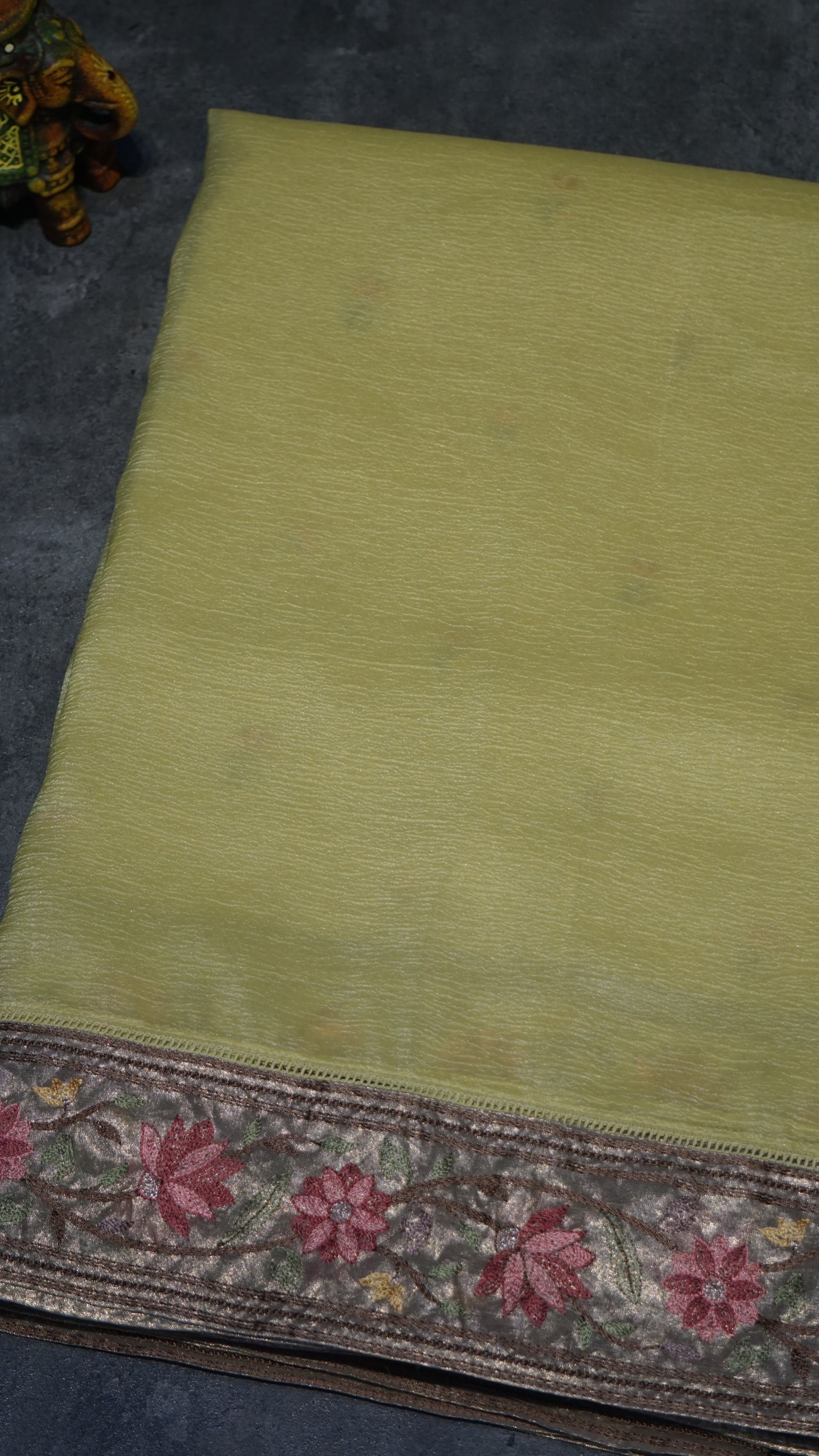 Semi Tussar Saree Crushed With Tissue Border Lime Yellow