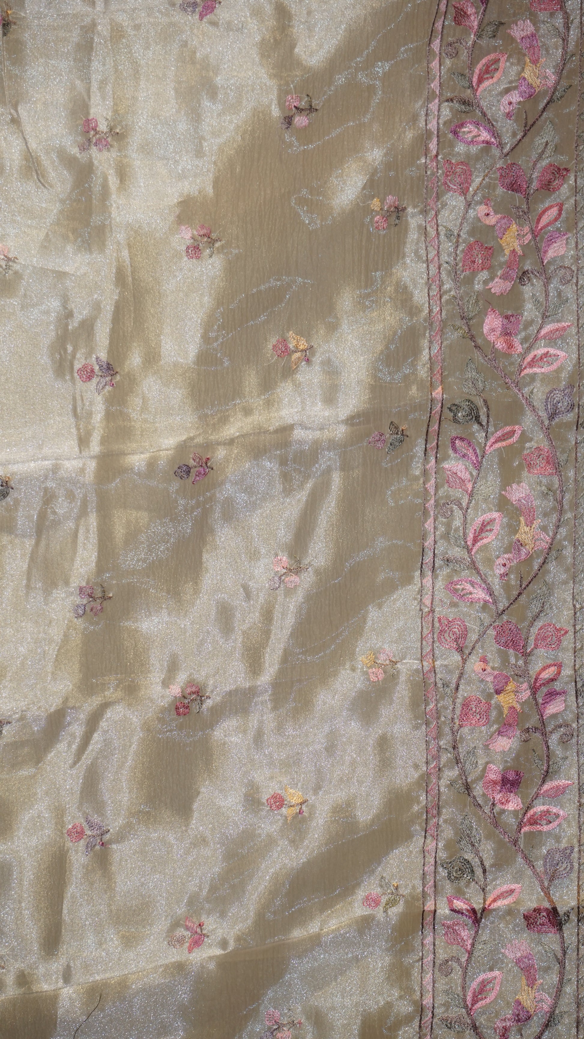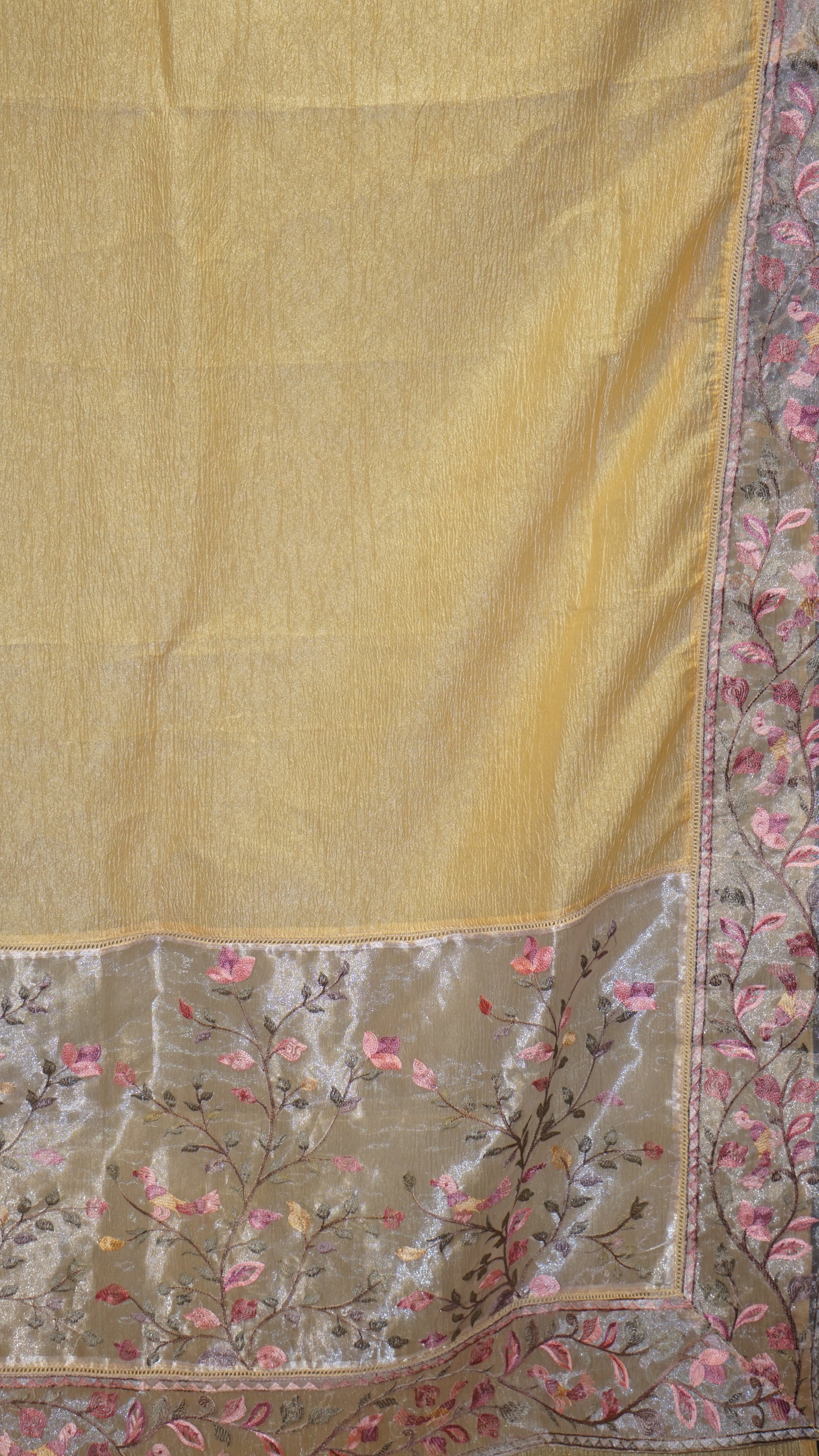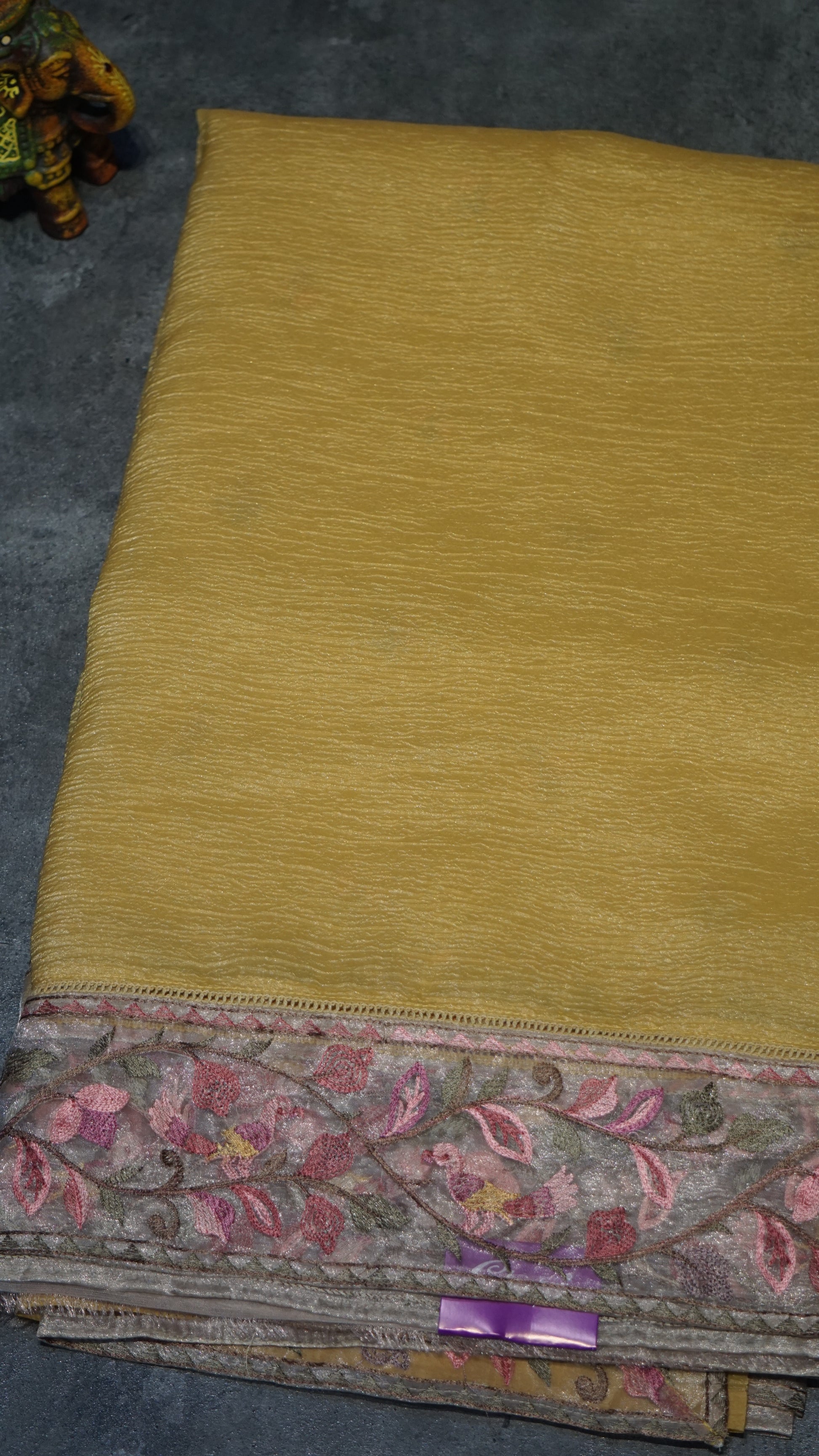 Semi Tussar Saree Crushed With Tissue Border Yellow