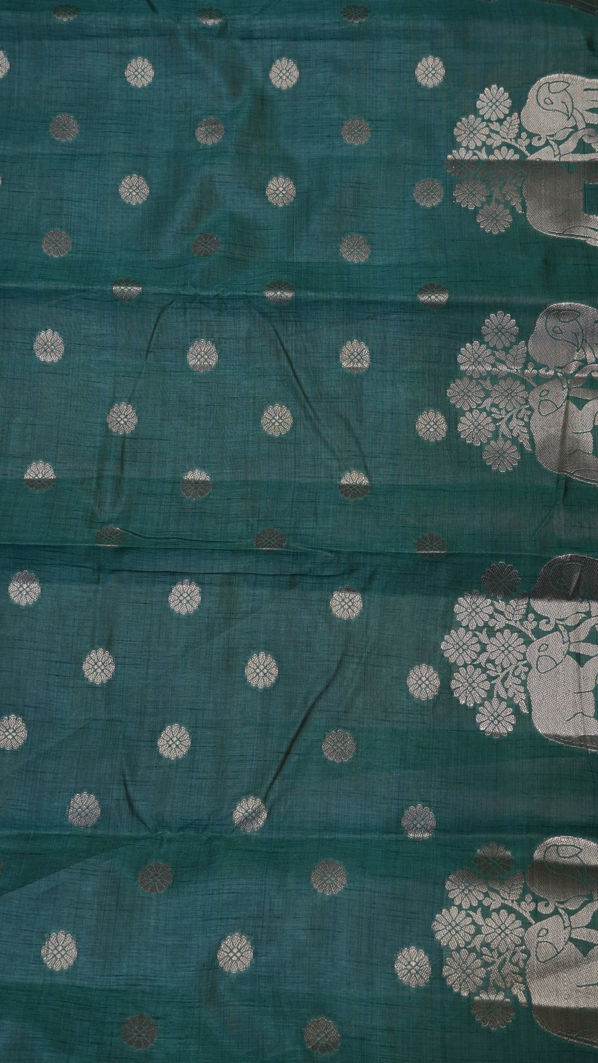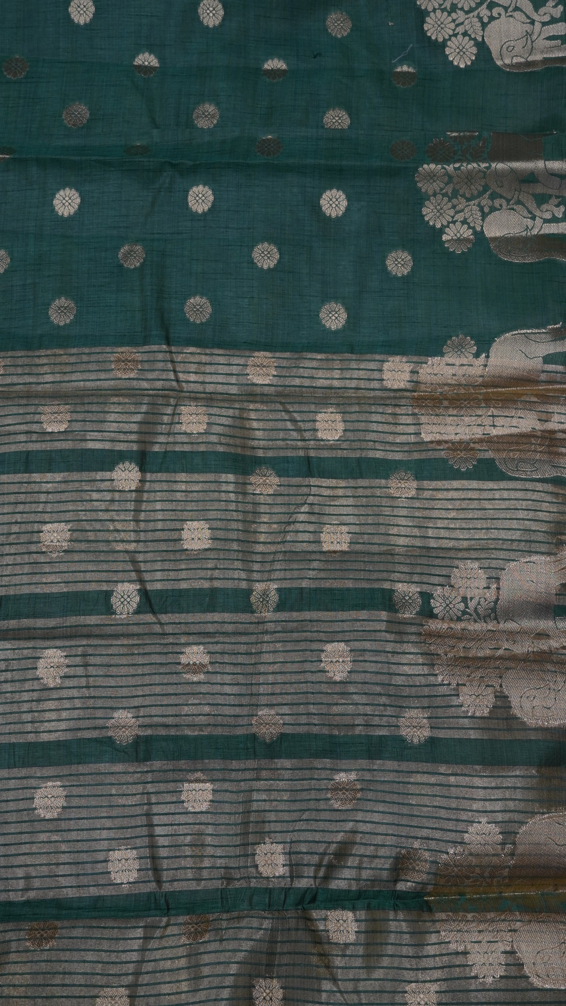 Semi Tussar Saree - Elephant Butta- Metallic Green