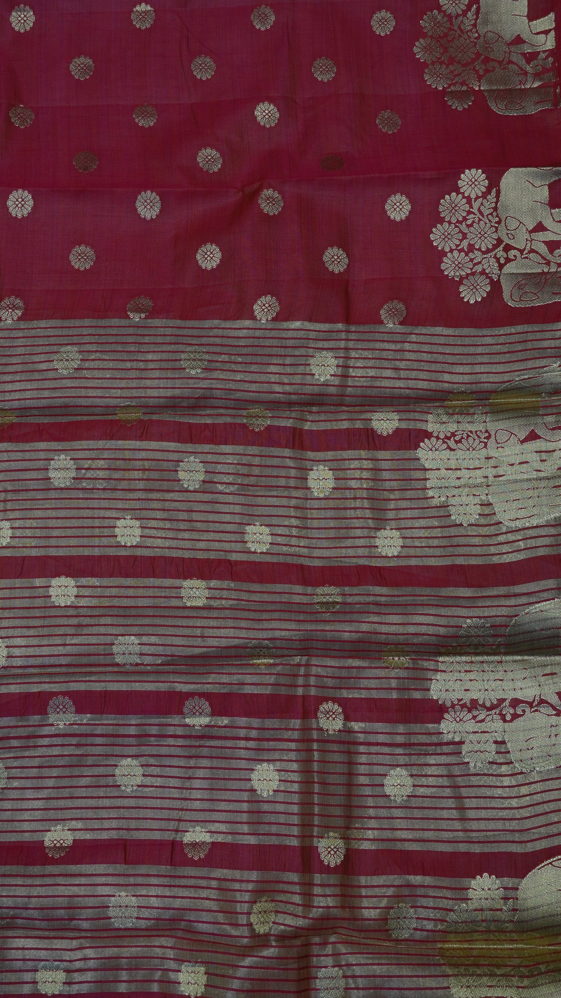 Semi Tussar Saree - Elephant Butta- Reddish Pink
